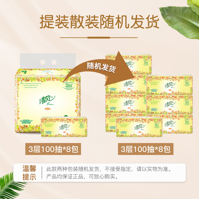 清风抽纸欧院系列3层100抽餐巾纸卫生纸家用抽取纸巾批发代发