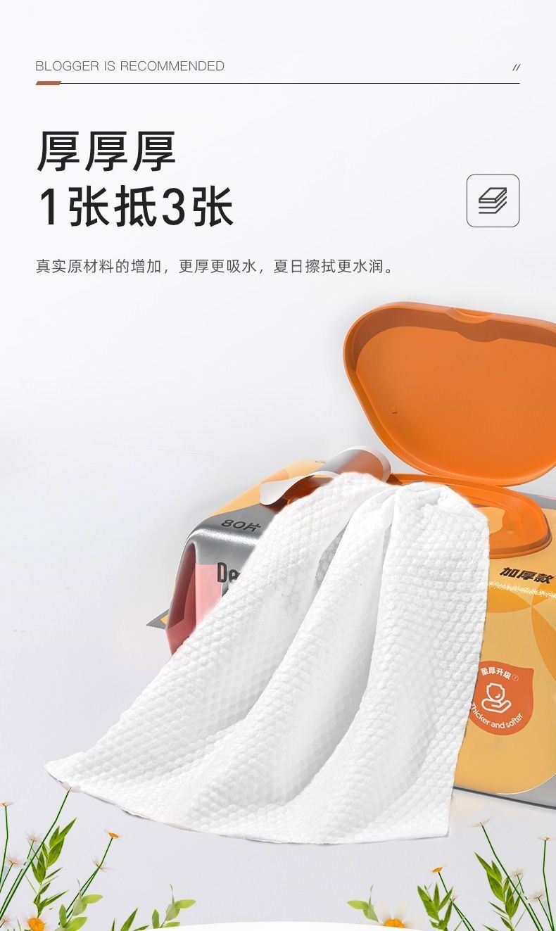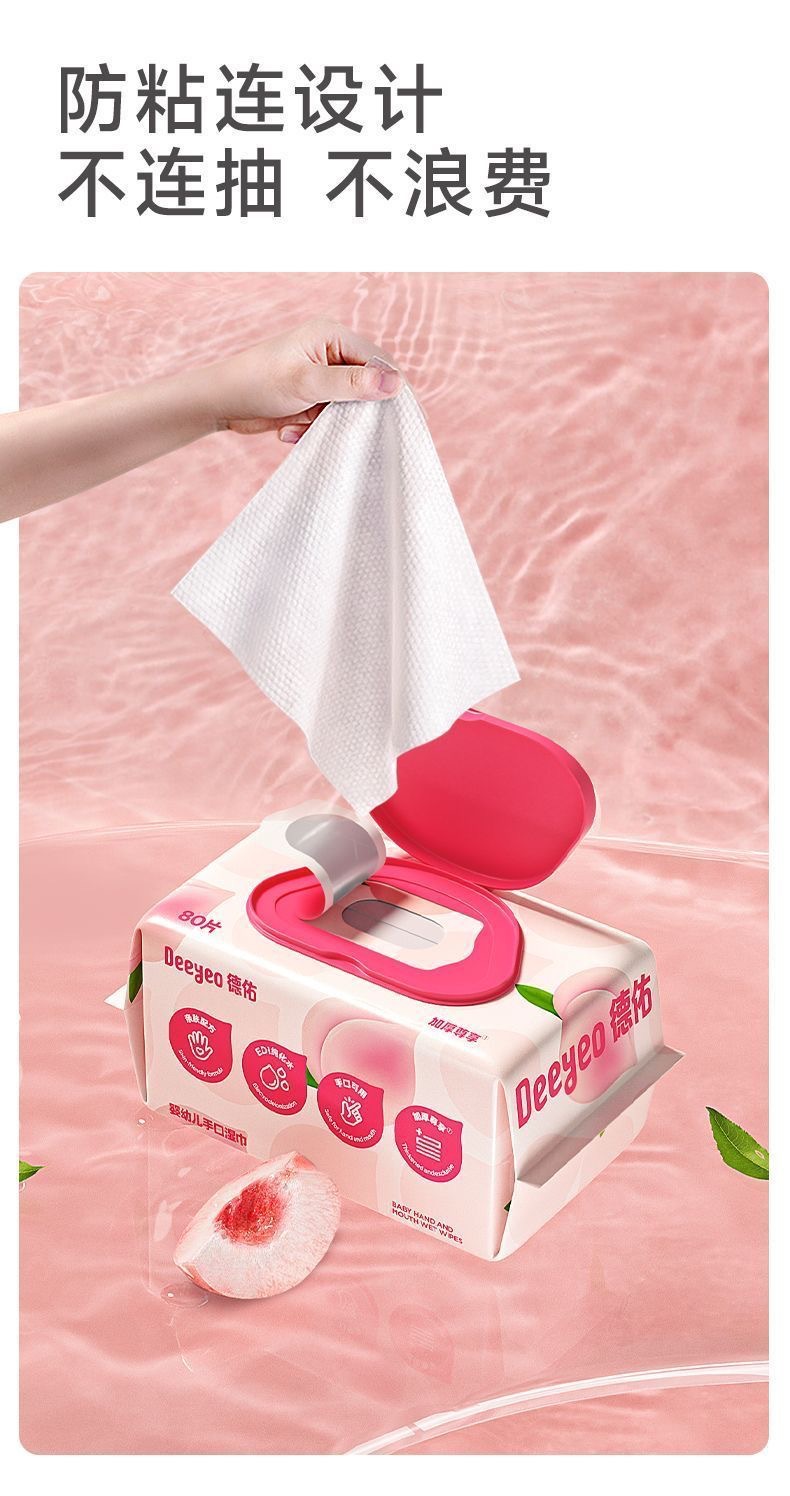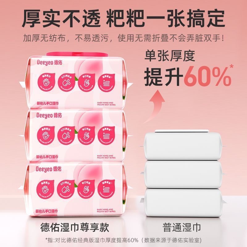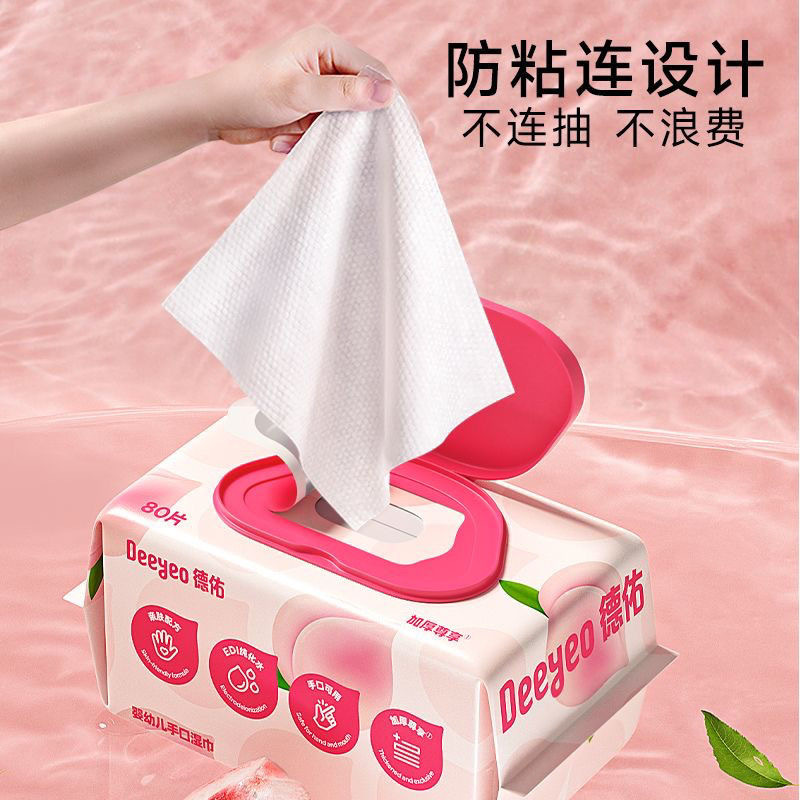 德佑湿巾桃叶大包超厚手口婴儿新生儿宝宝湿巾纸80抽家庭实惠装
