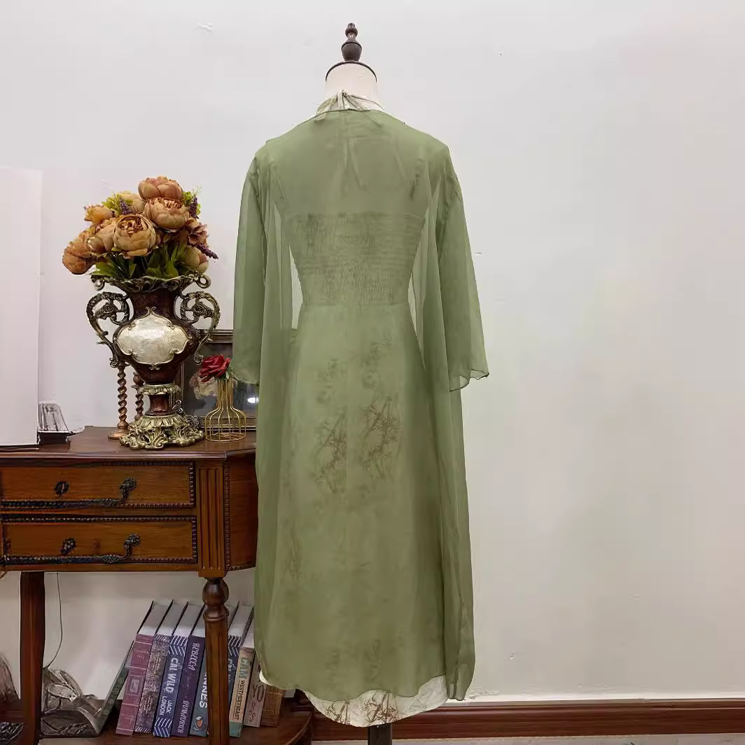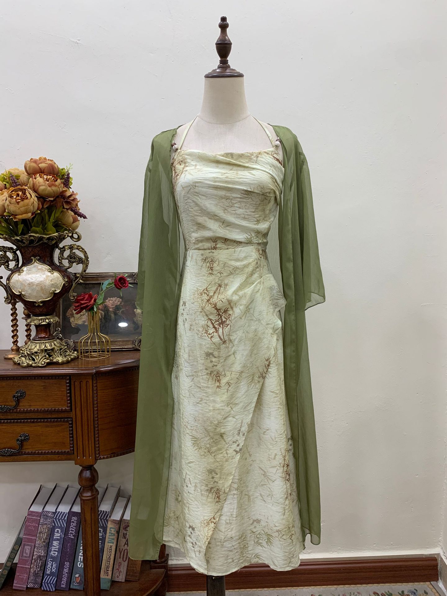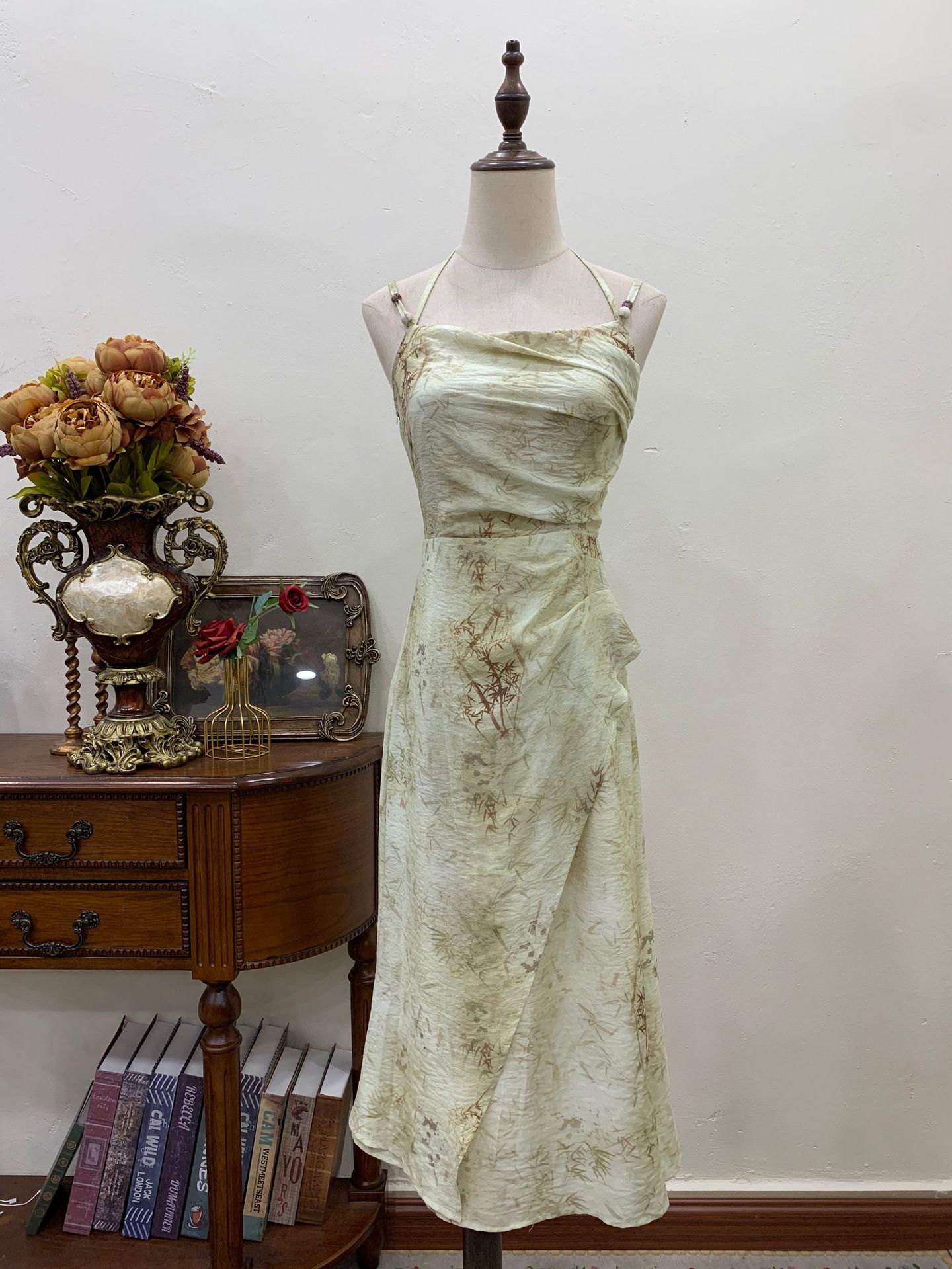 2023夏季新中式国风复古吊带连衣裙碎花收腰显瘦