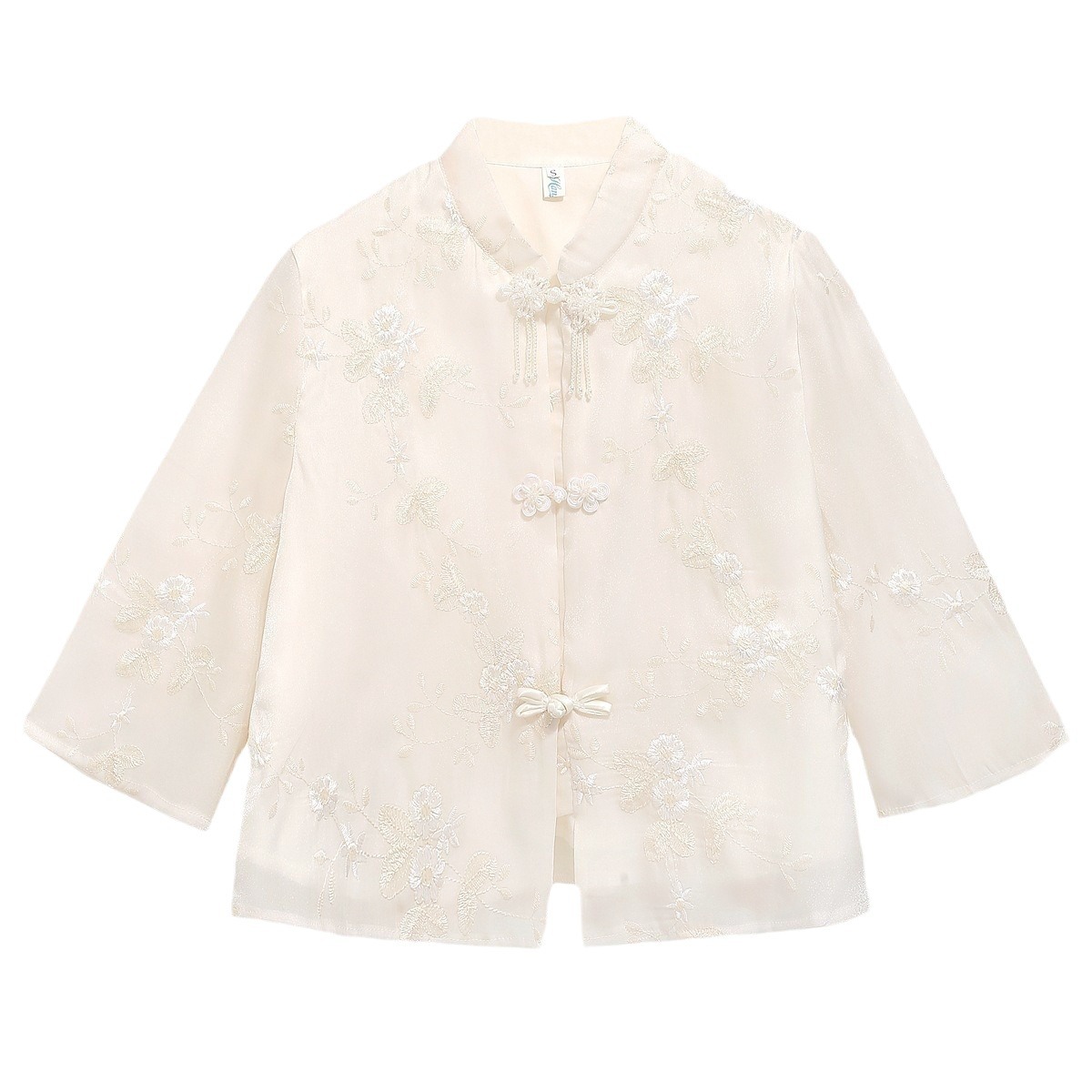 夏季新中式国风禅意改良旗袍重工刺绣盘扣七分袖衬衫女上衣