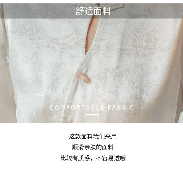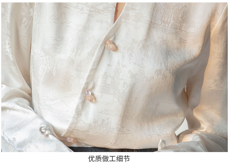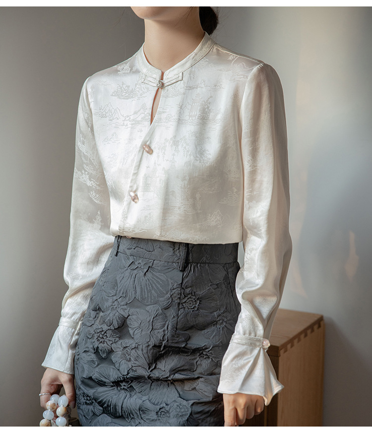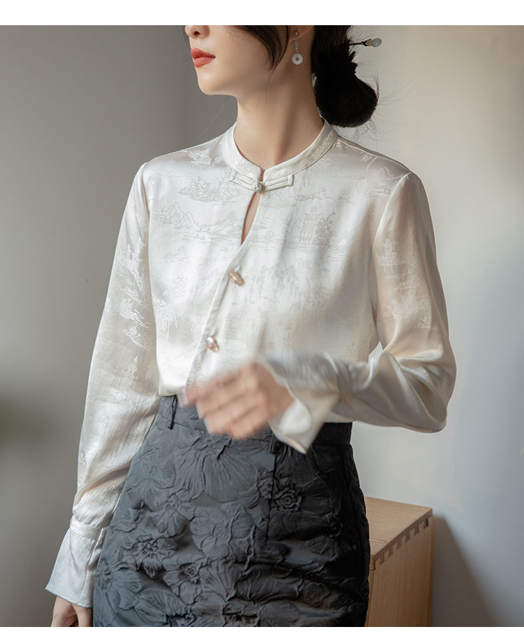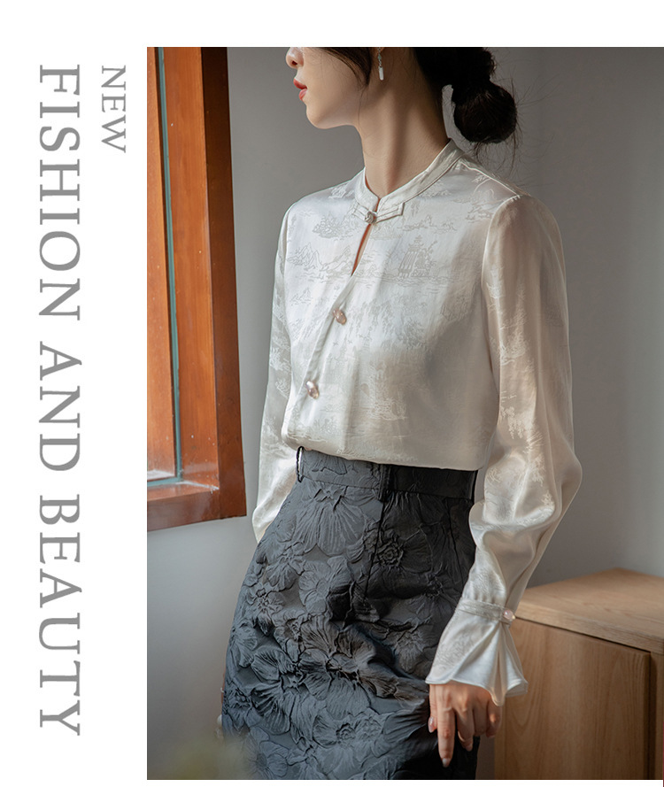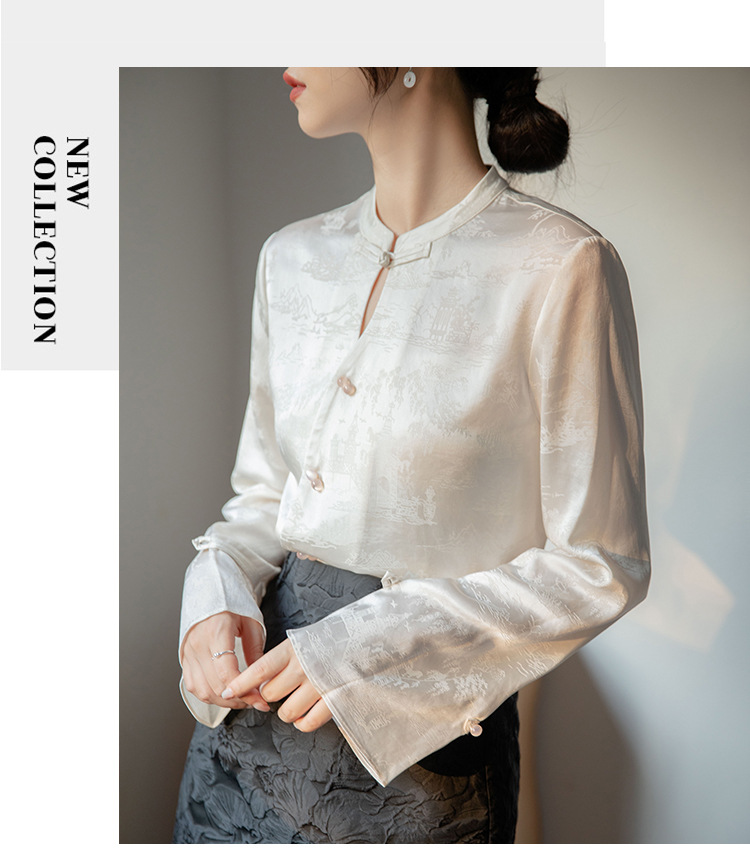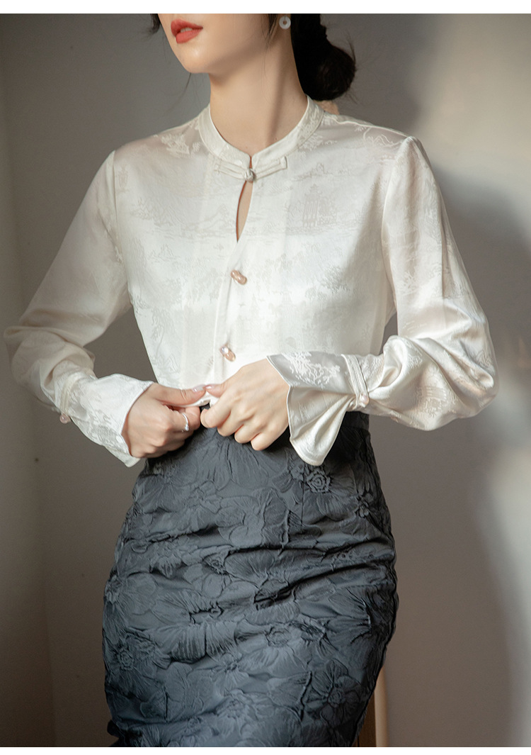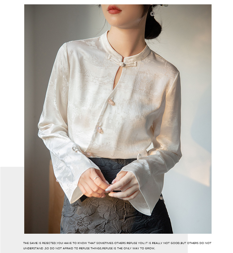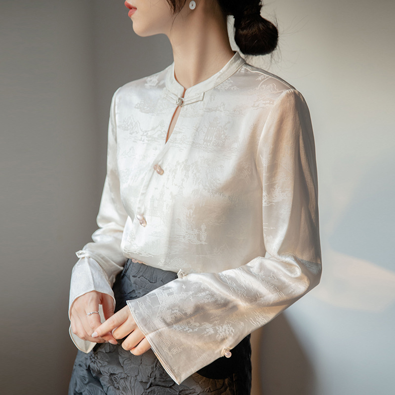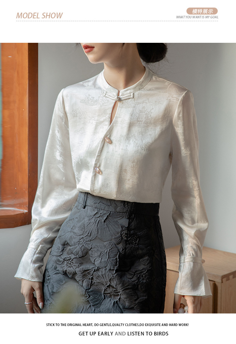 提花醋酸缎面新中式盘扣衬衫女秋季新款设计感小众时尚通勤上衣