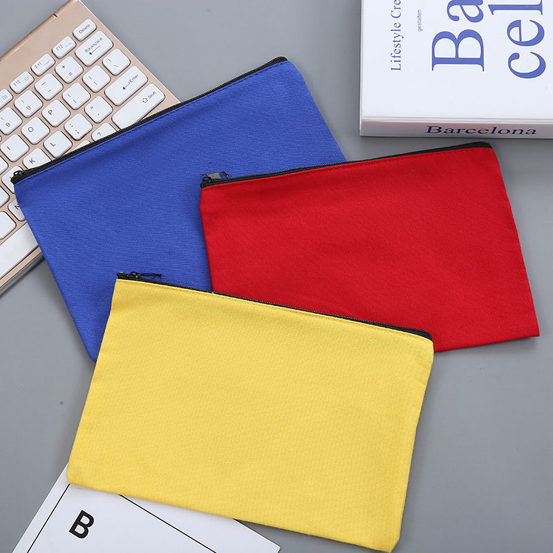 跨境新款彩色拉链文件袋帆布学生收纳袋发票资料文具袋可印logo批
