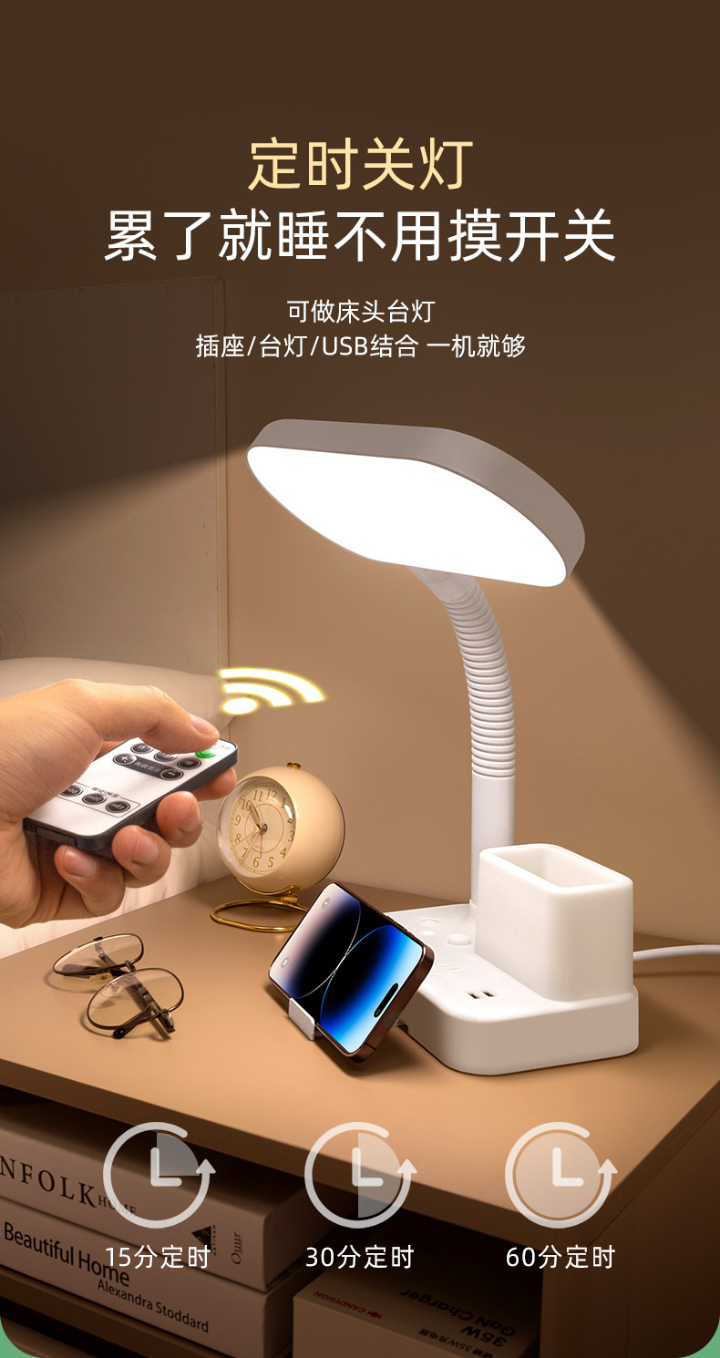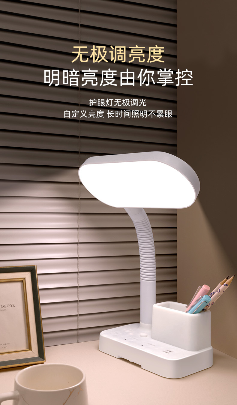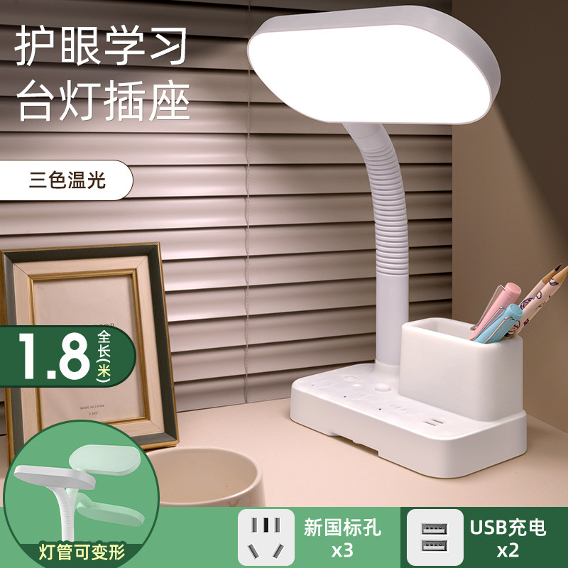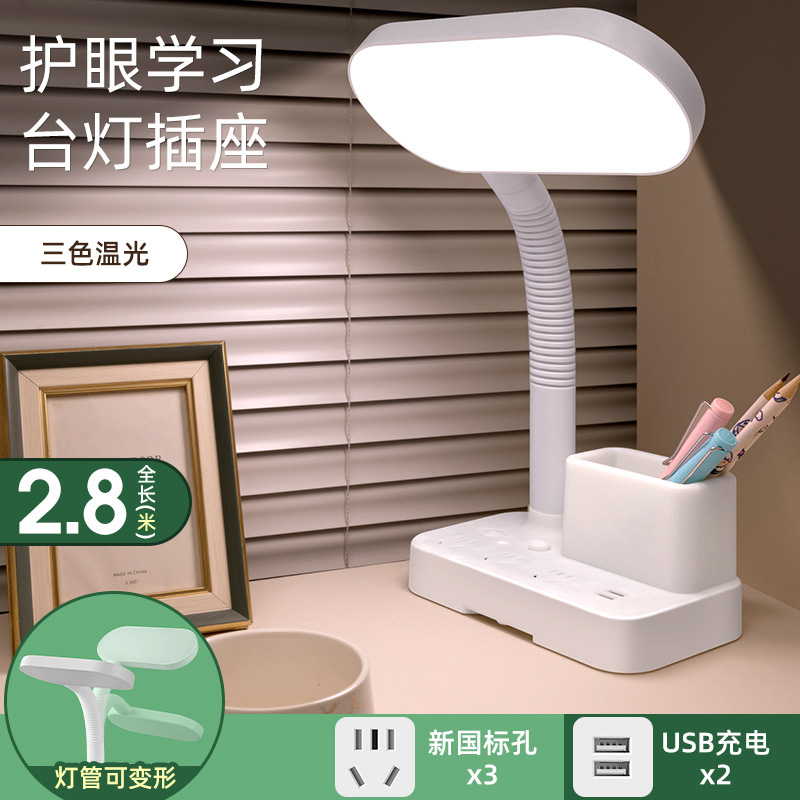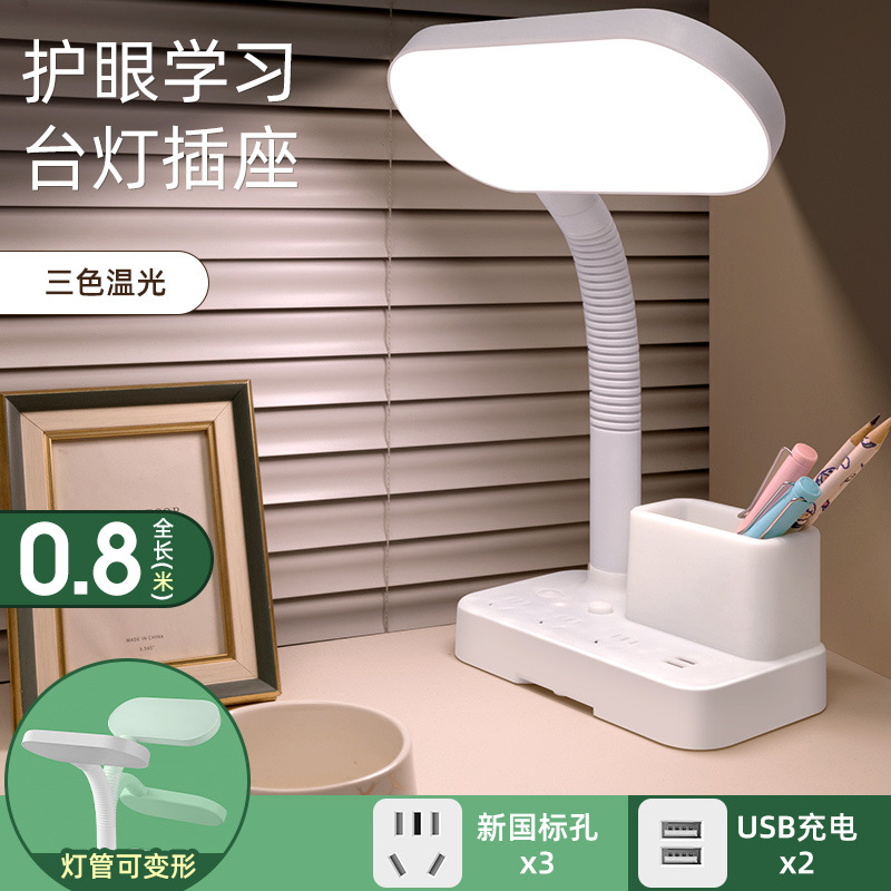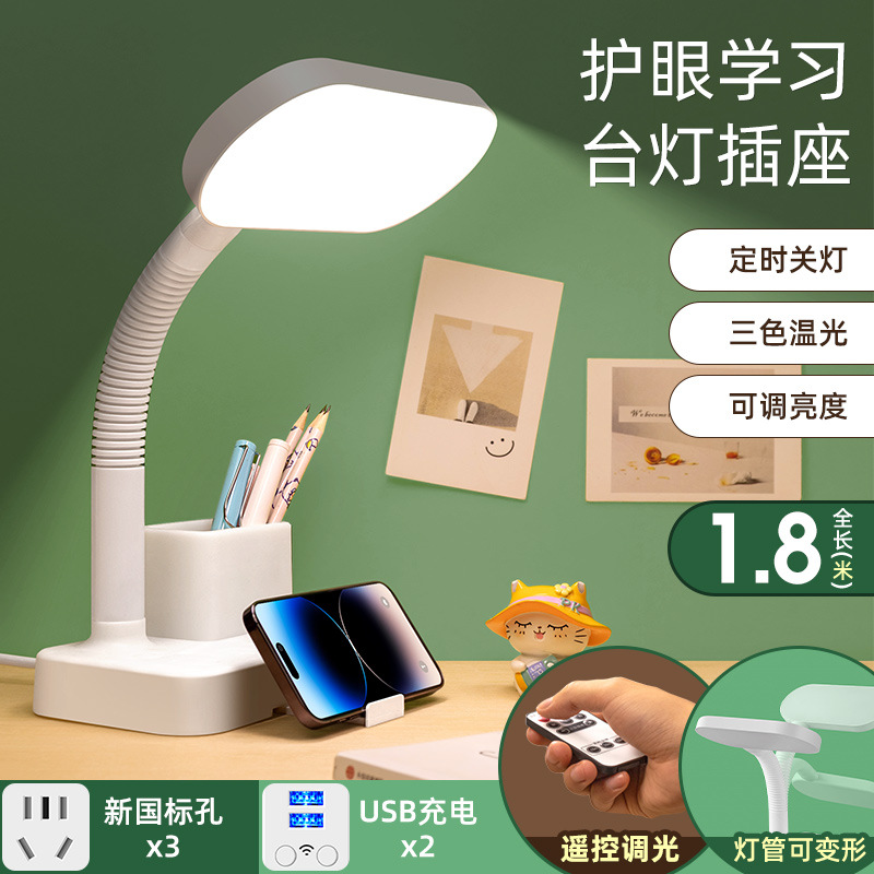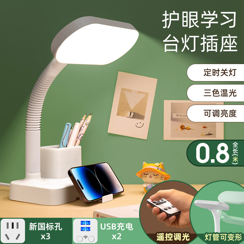 护眼台灯学习专用带插座一体阅读灯学生宿舍儿童防近视卧室床头灯