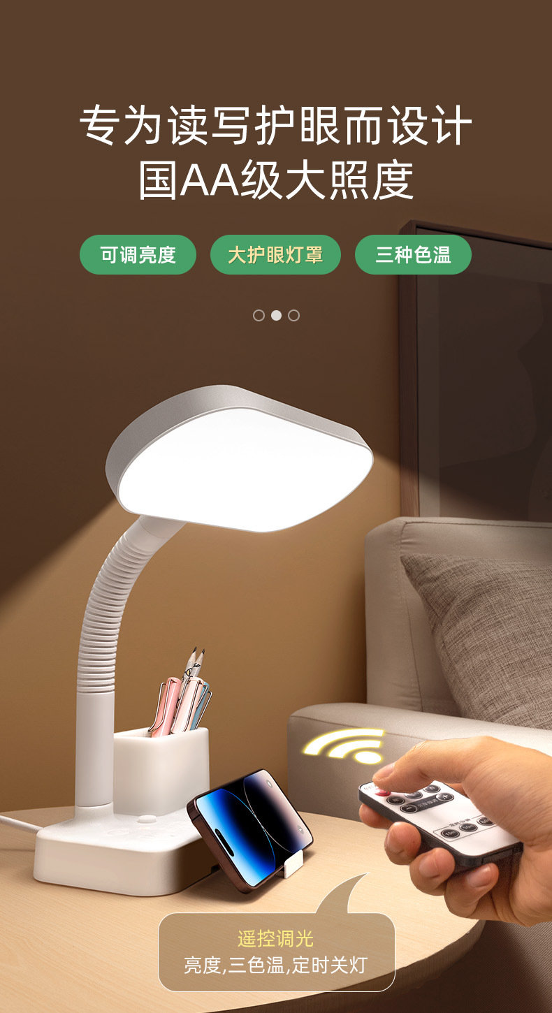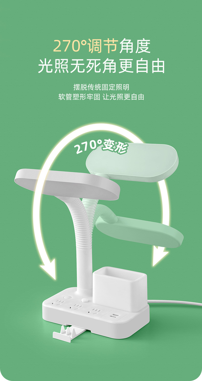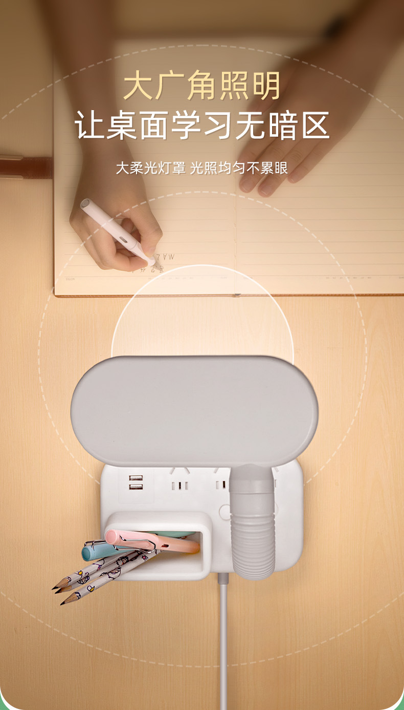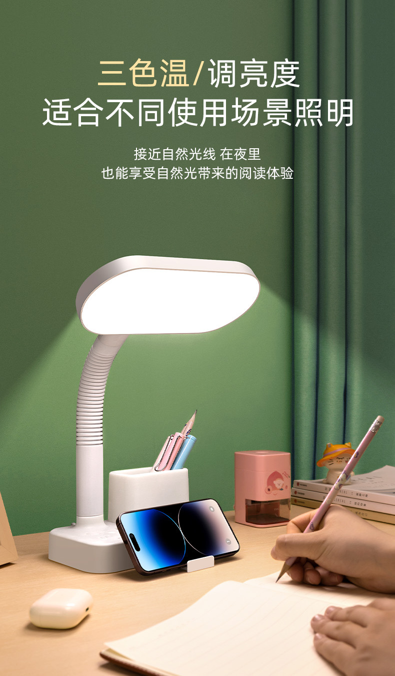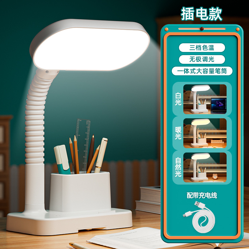 护眼台灯学习专用带插座一体阅读灯学生宿舍儿童防近视卧室床头灯