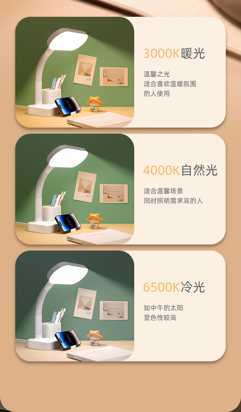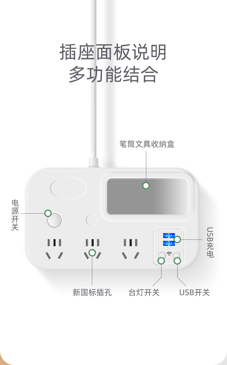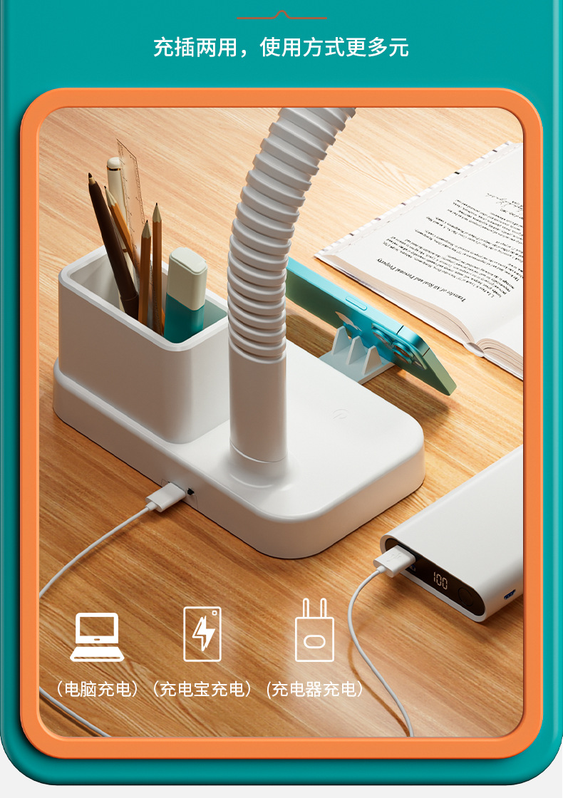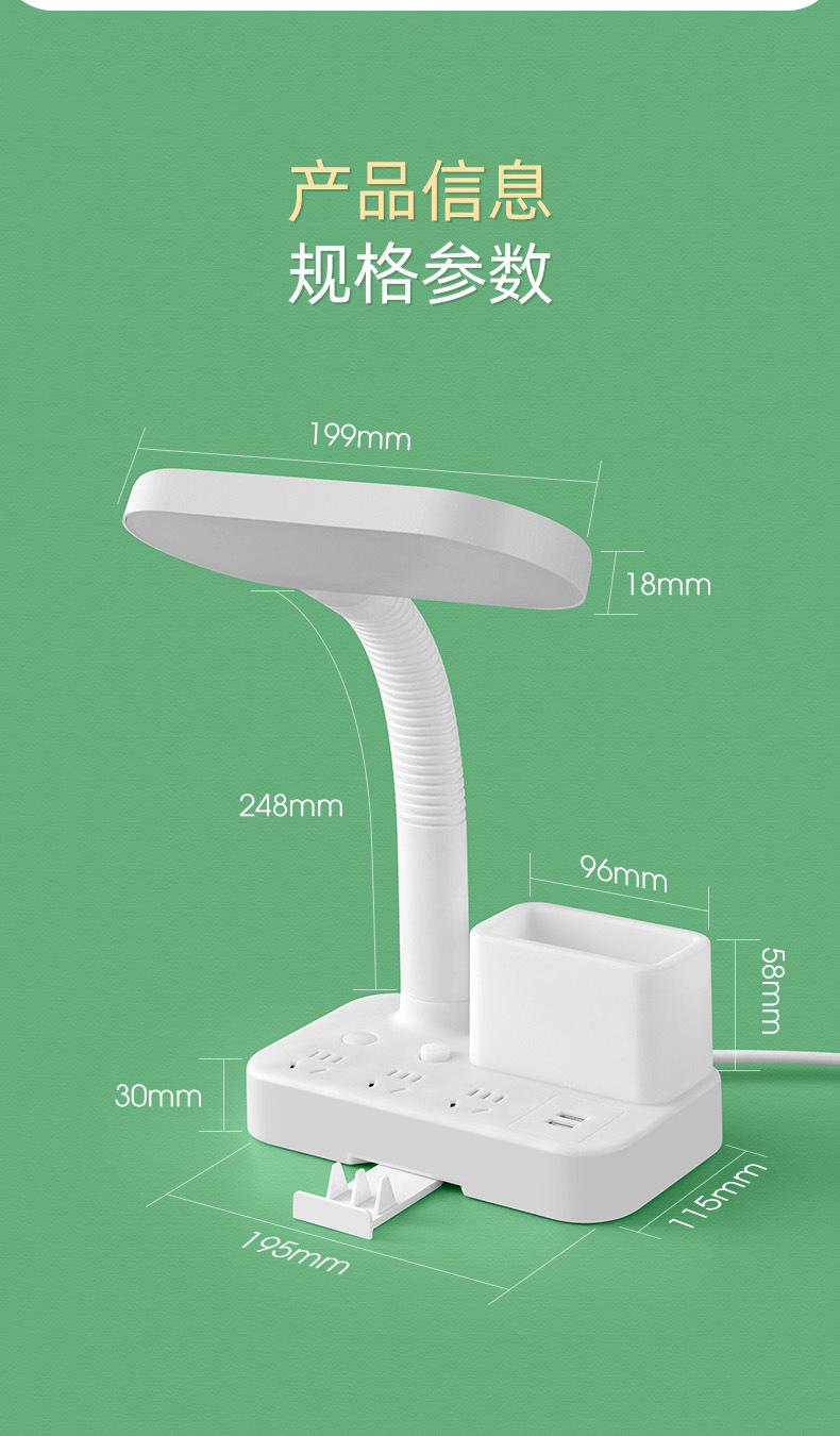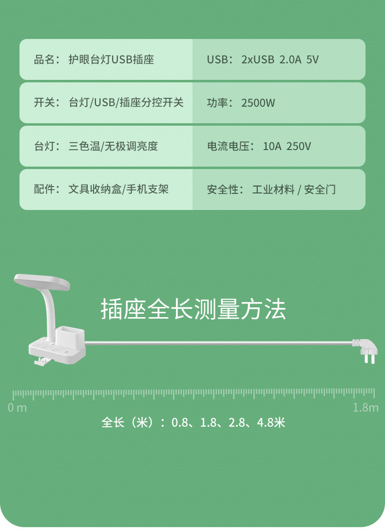 护眼台灯学习专用带插座一体阅读灯学生宿舍儿童防近视卧室床头灯