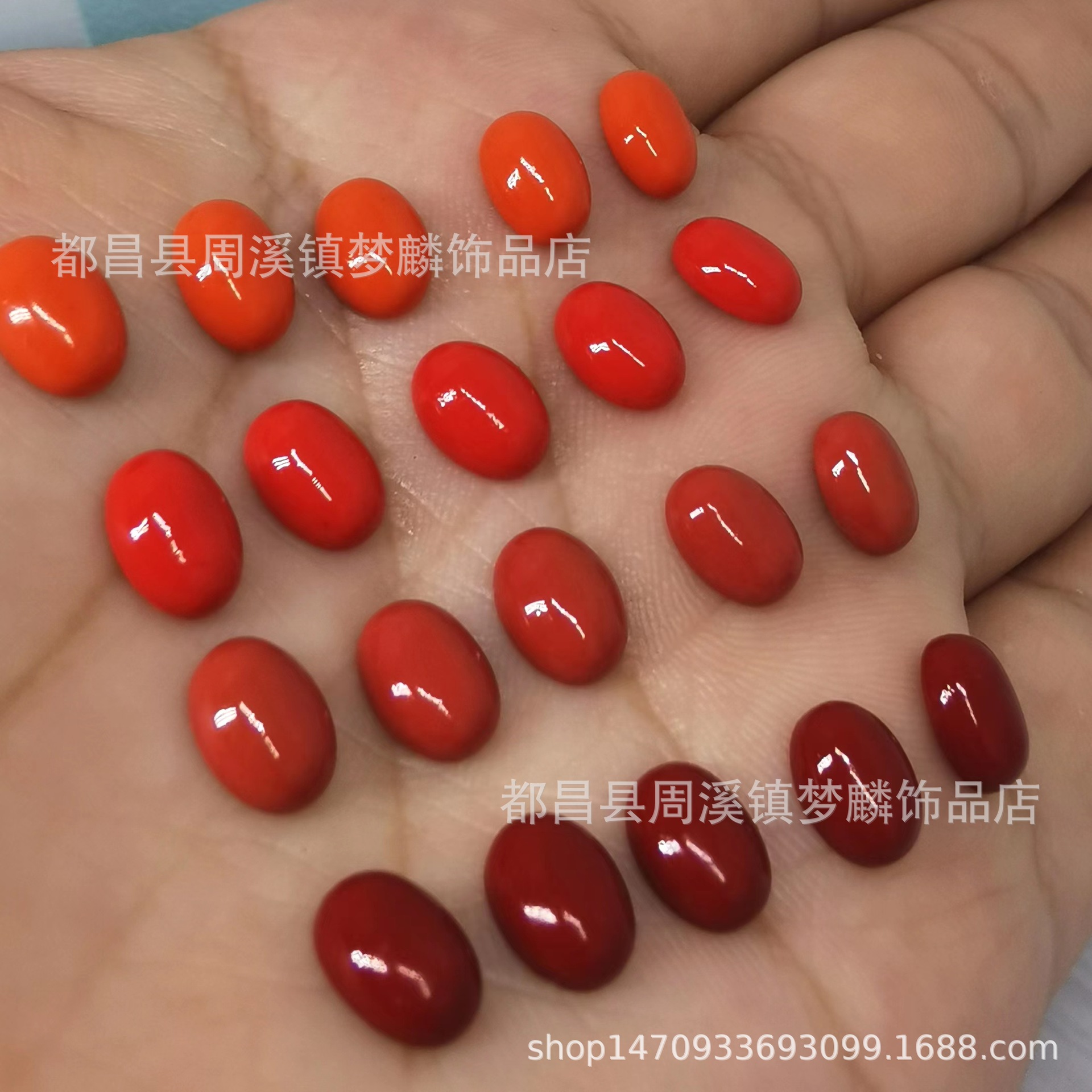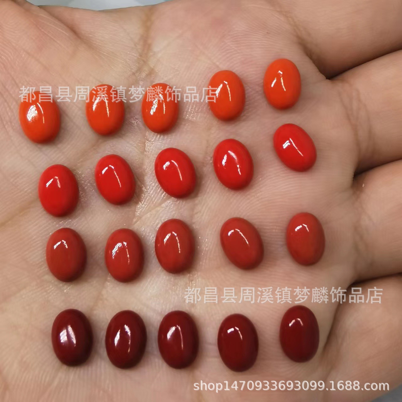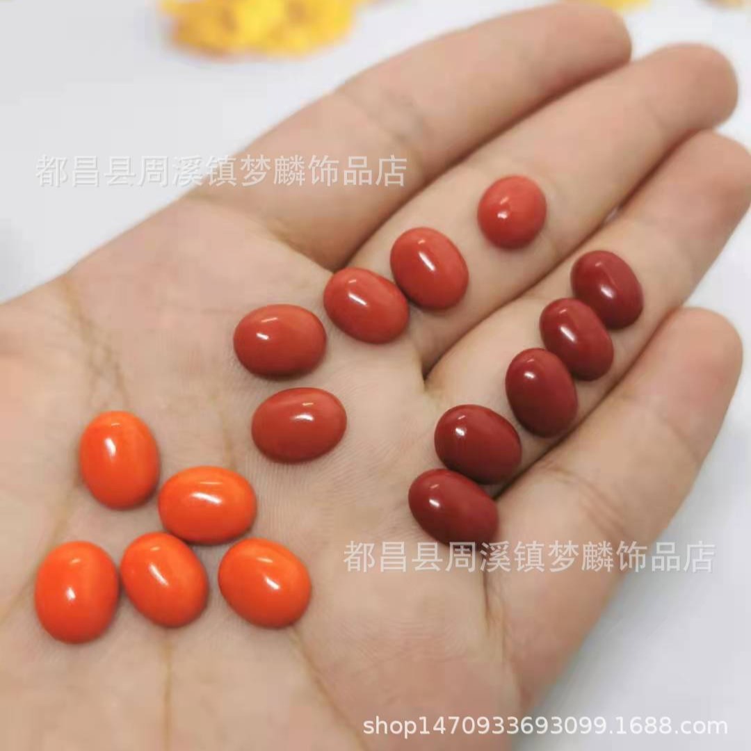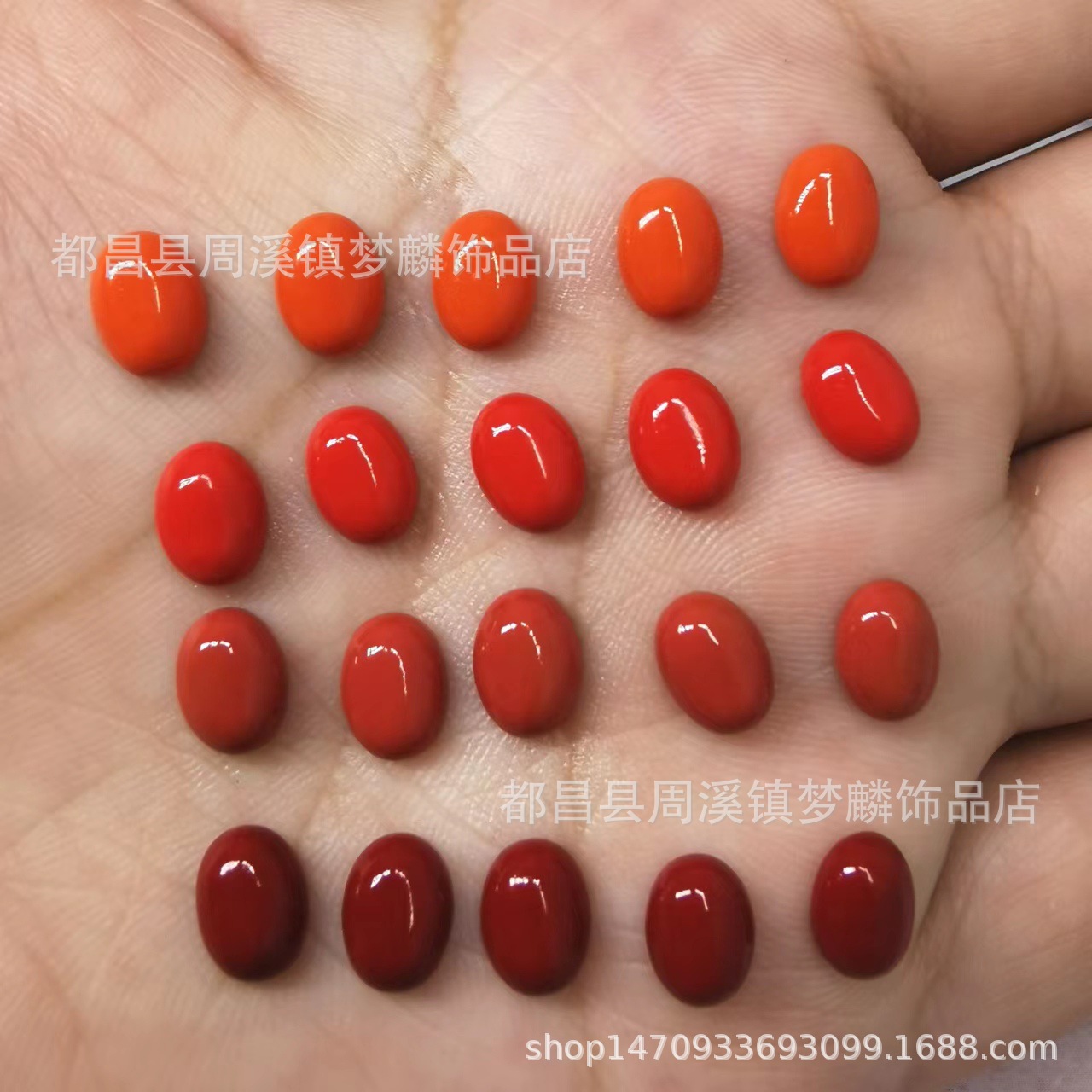 3~20mm仿珊瑚朱砂红椭圆旦形平底半面戒面粉压阿卡仿南红镶嵌石头