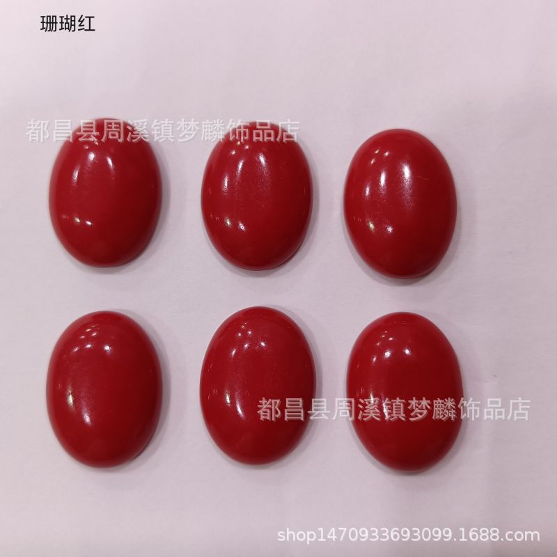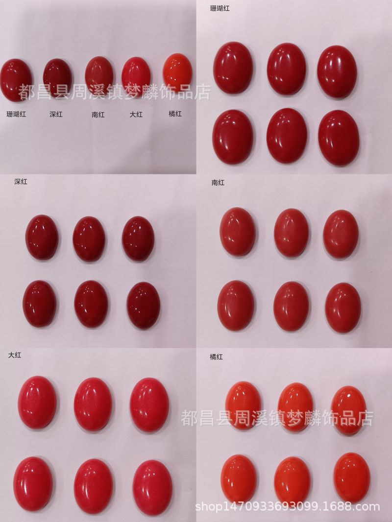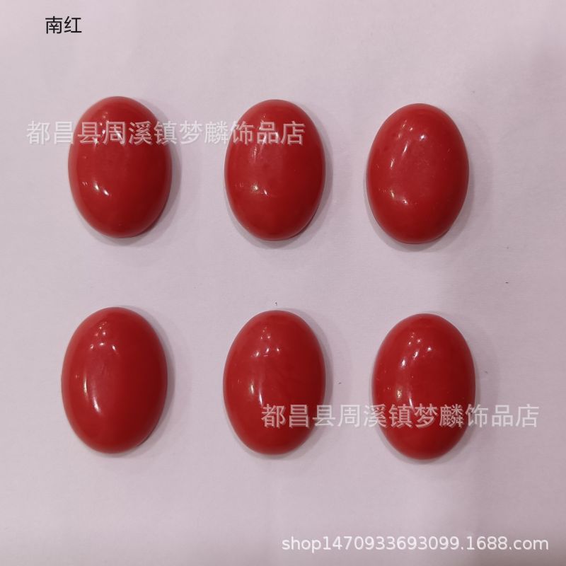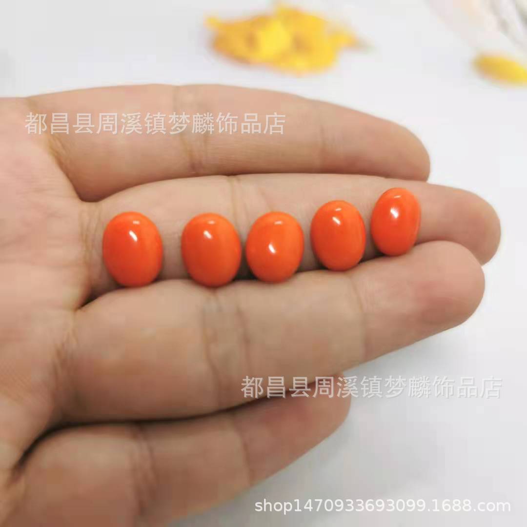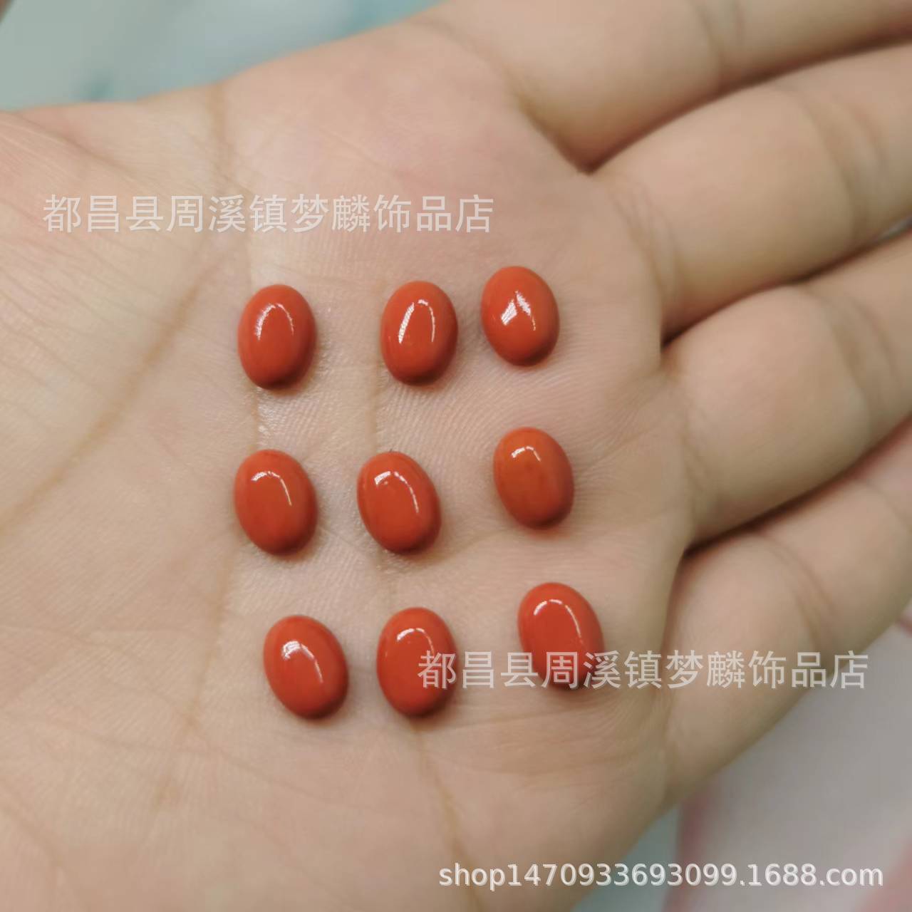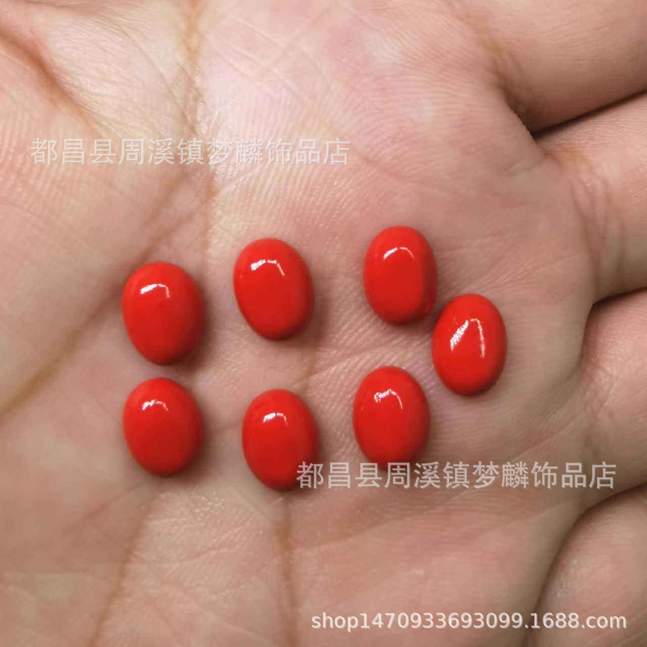 3~20mm仿珊瑚朱砂红椭圆旦形平底半面戒面粉压阿卡仿南红镶嵌石头