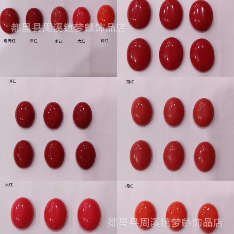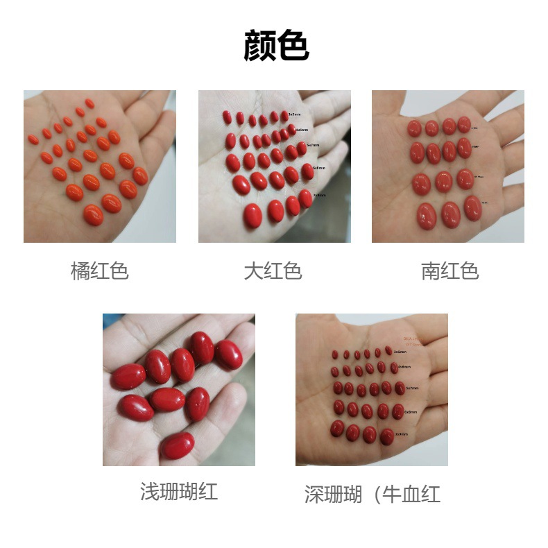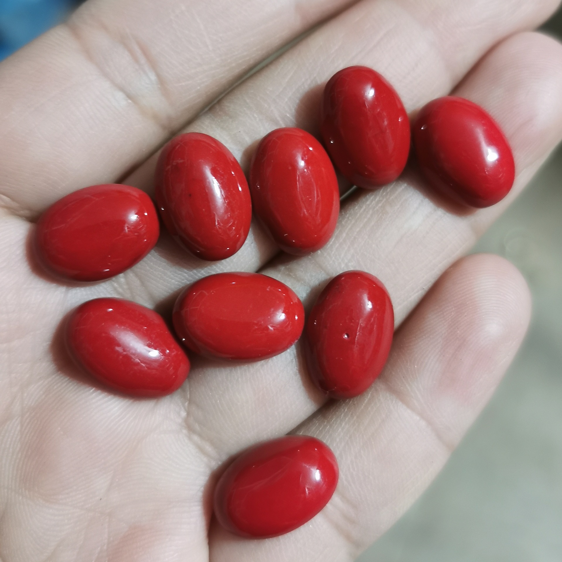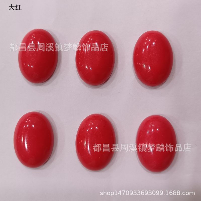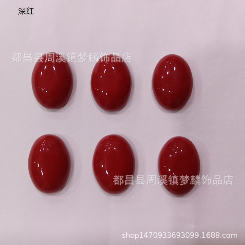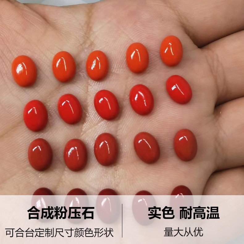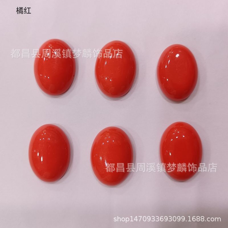 3~20mm仿珊瑚朱砂红椭圆旦形平底半面戒面粉压阿卡仿南红镶嵌石头