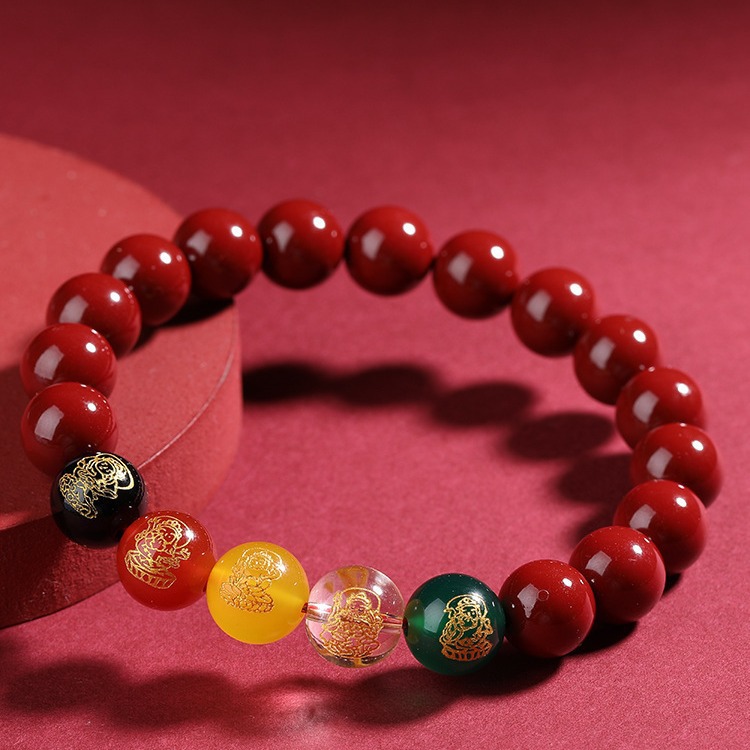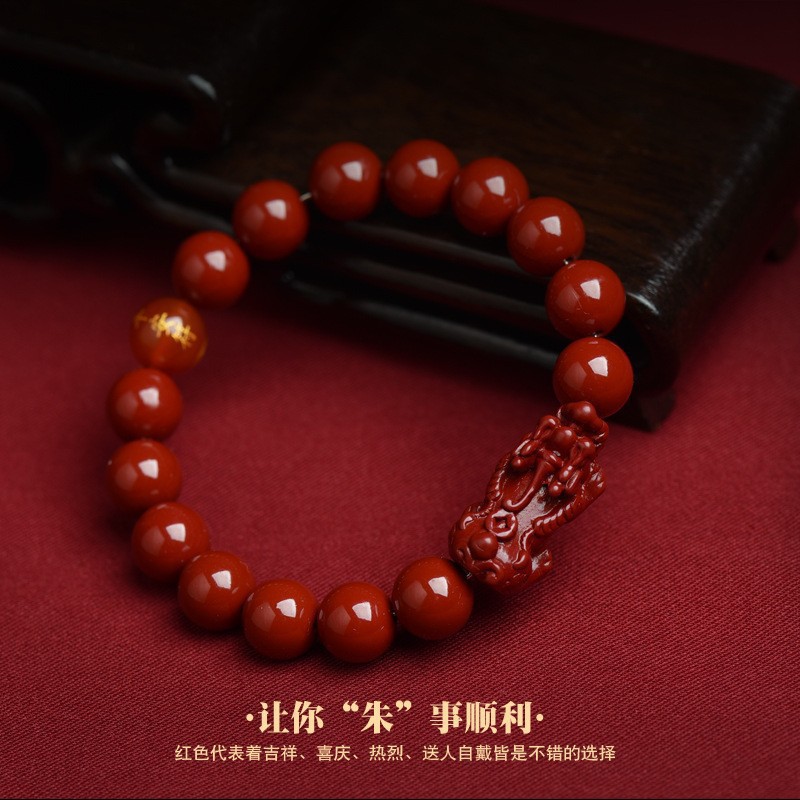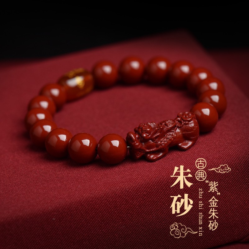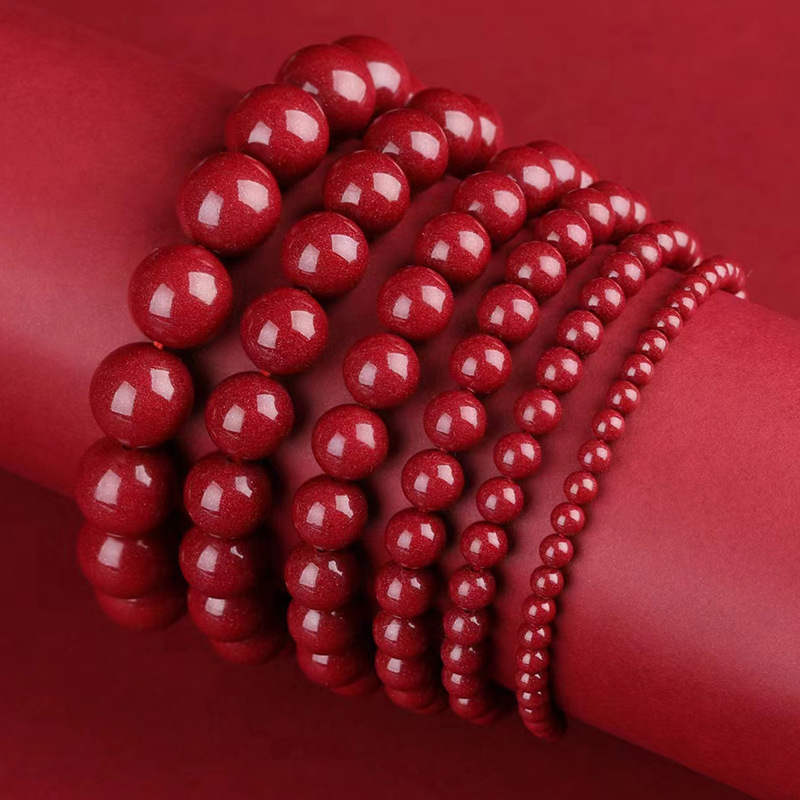 朱砂单圈手链女素圈珠本命年紫金砂手串男士朱砂手串朱砂爆款手串