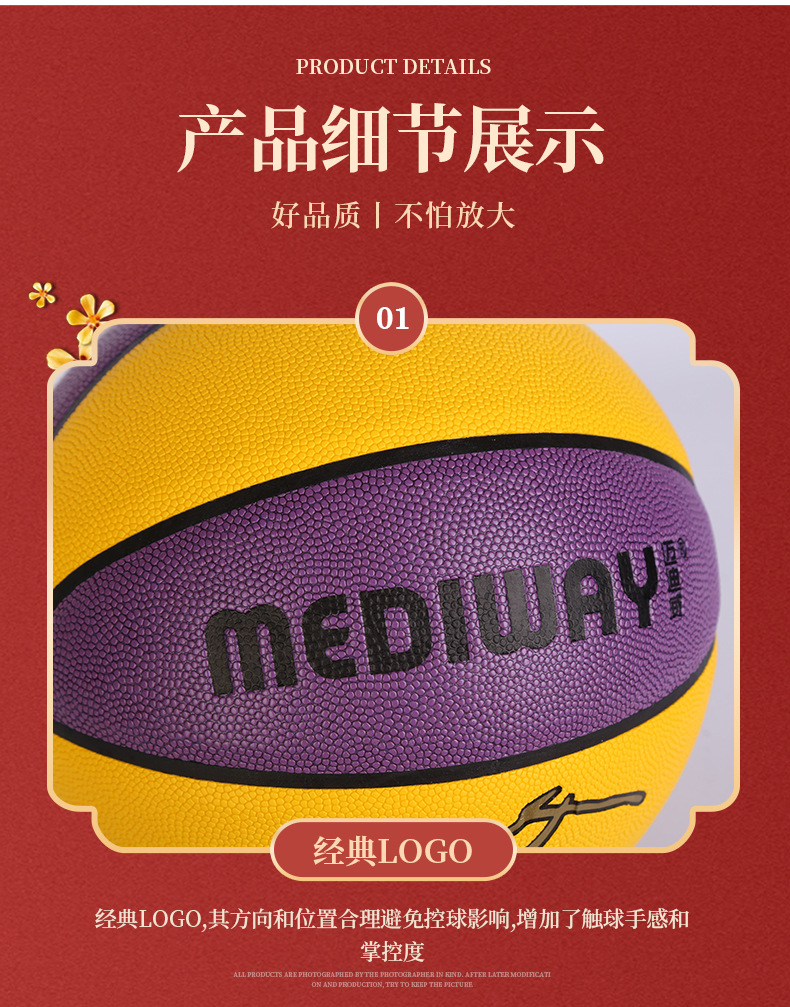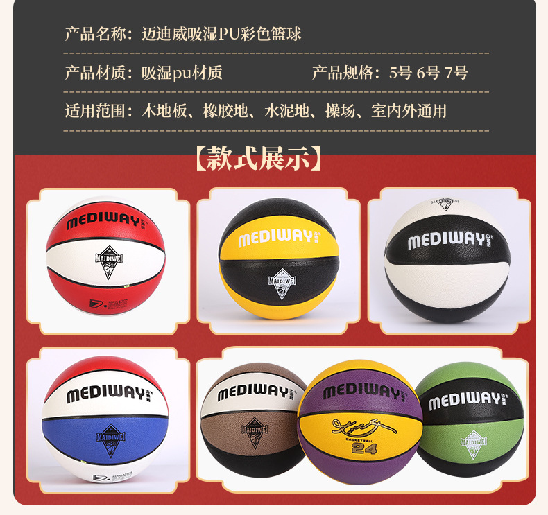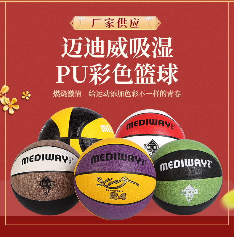 迈迪威吸湿PU彩色篮球支持加印成人户外运动室内训练比赛7号篮球