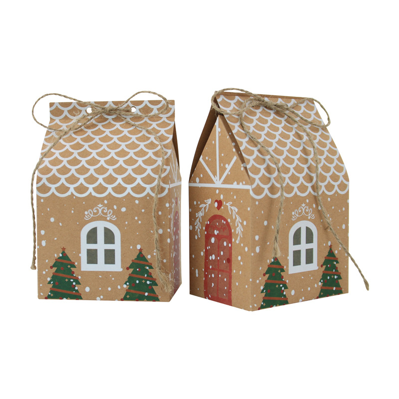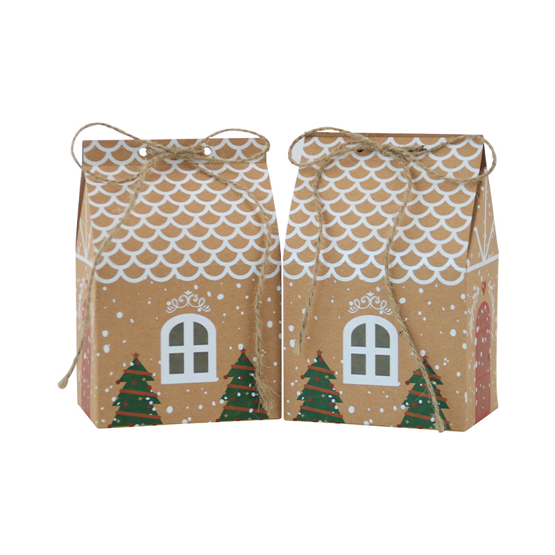 2019欧式新款牛皮纸圣诞小房子 喜糖包装盒 节日伴手礼糖果盒现货