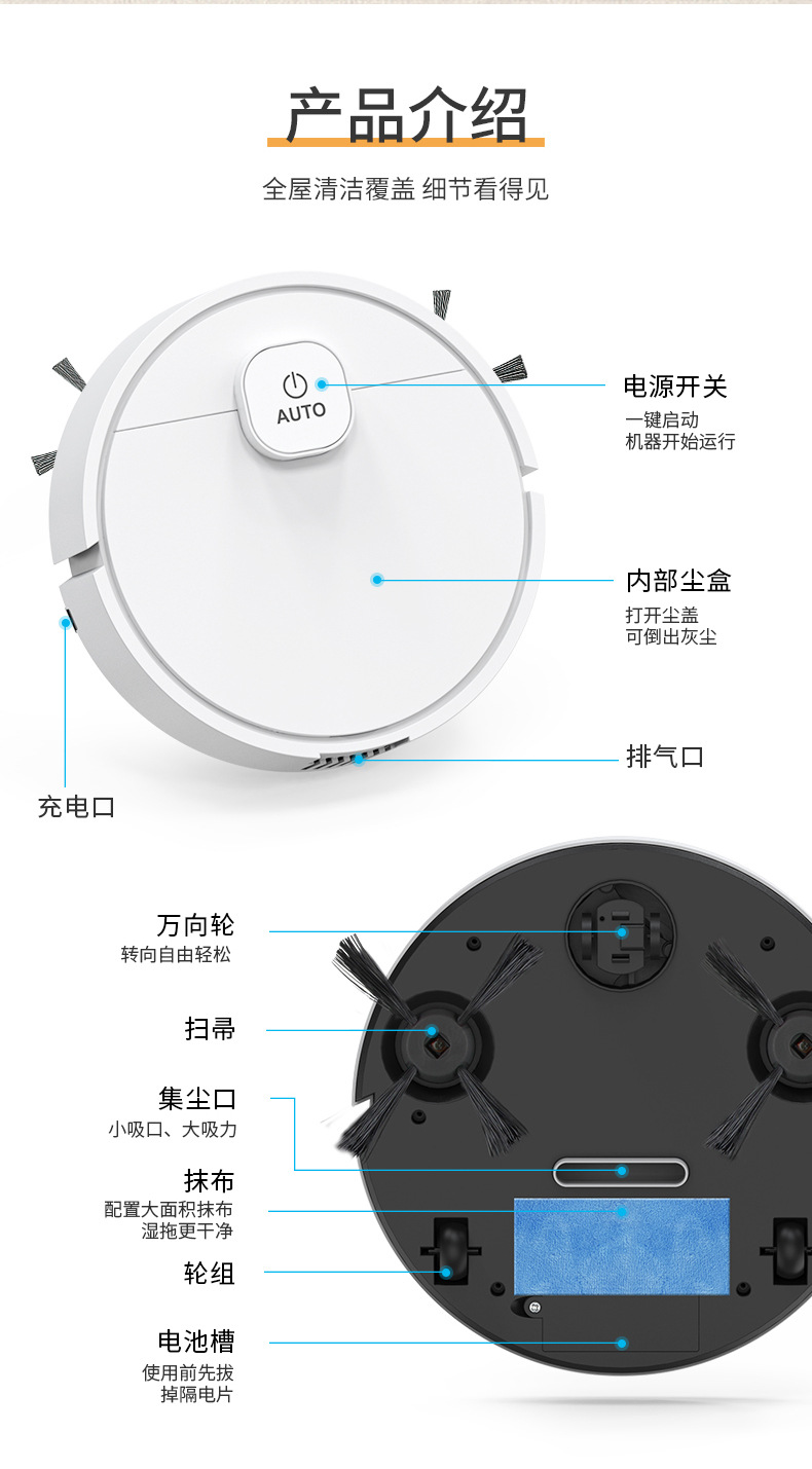 跨境扫地机器人创意迷你智能吸尘器家用充电全自动吸扫拖一体批发