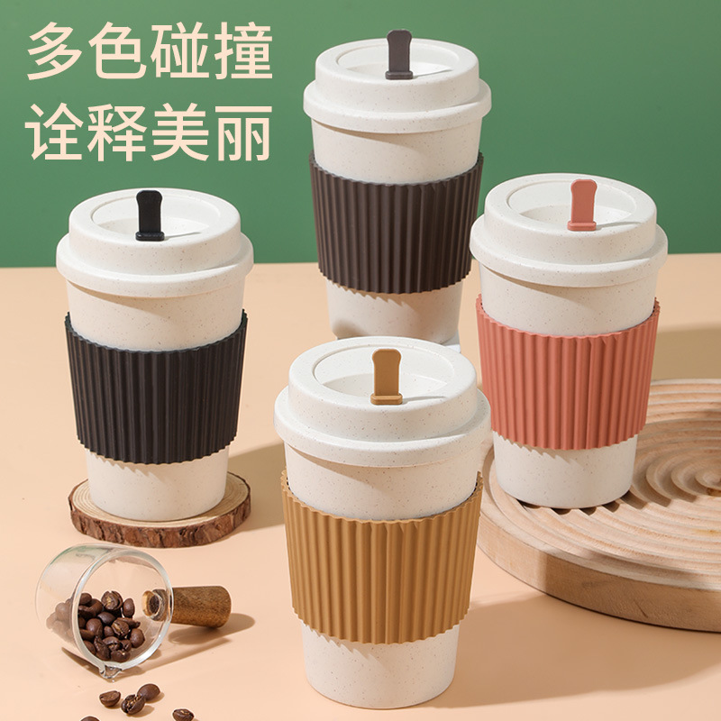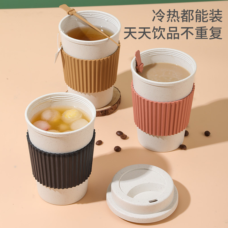 跨境爆款450ml创意咖啡杯小麦秸秆杯可乐奶茶杯办公室杯可印logo