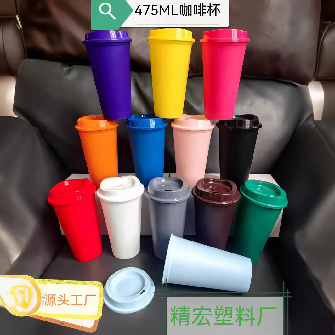 新品工厂直供创意16OZ彩色咖啡杯pp材质时尚塑料咖啡杯475ml批发