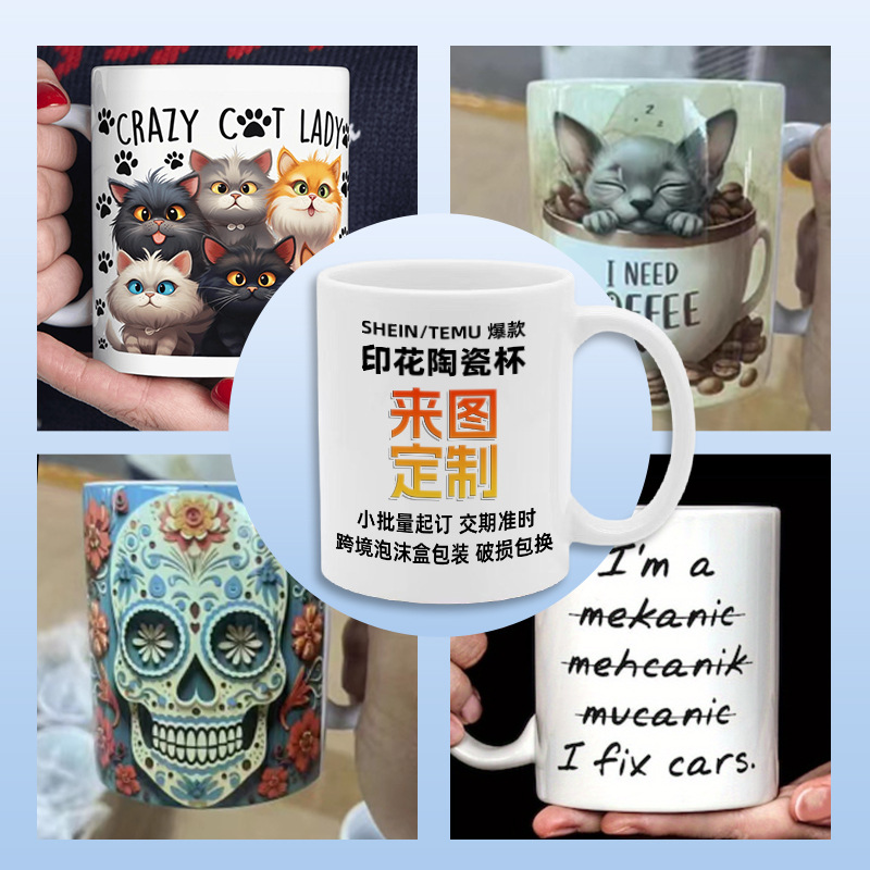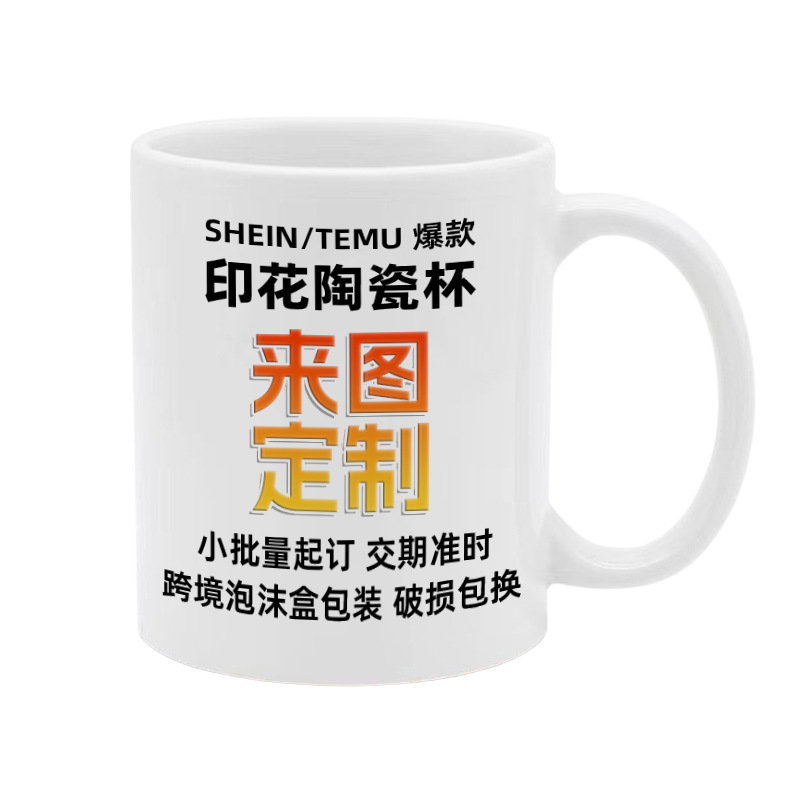 厂家供应简约C把A级热转印空白陶瓷马克杯 印制图案LOGO
