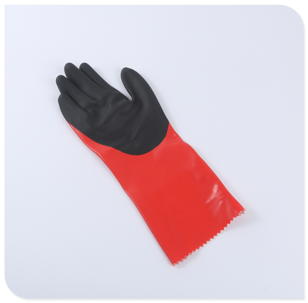 红黑双色加长款外贸磨砂发泡防滑耐磨透气建筑工地工厂防护用手套