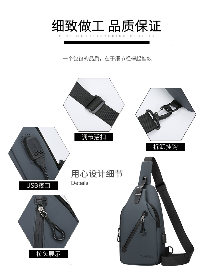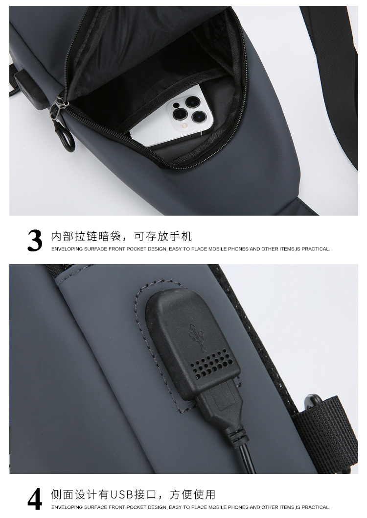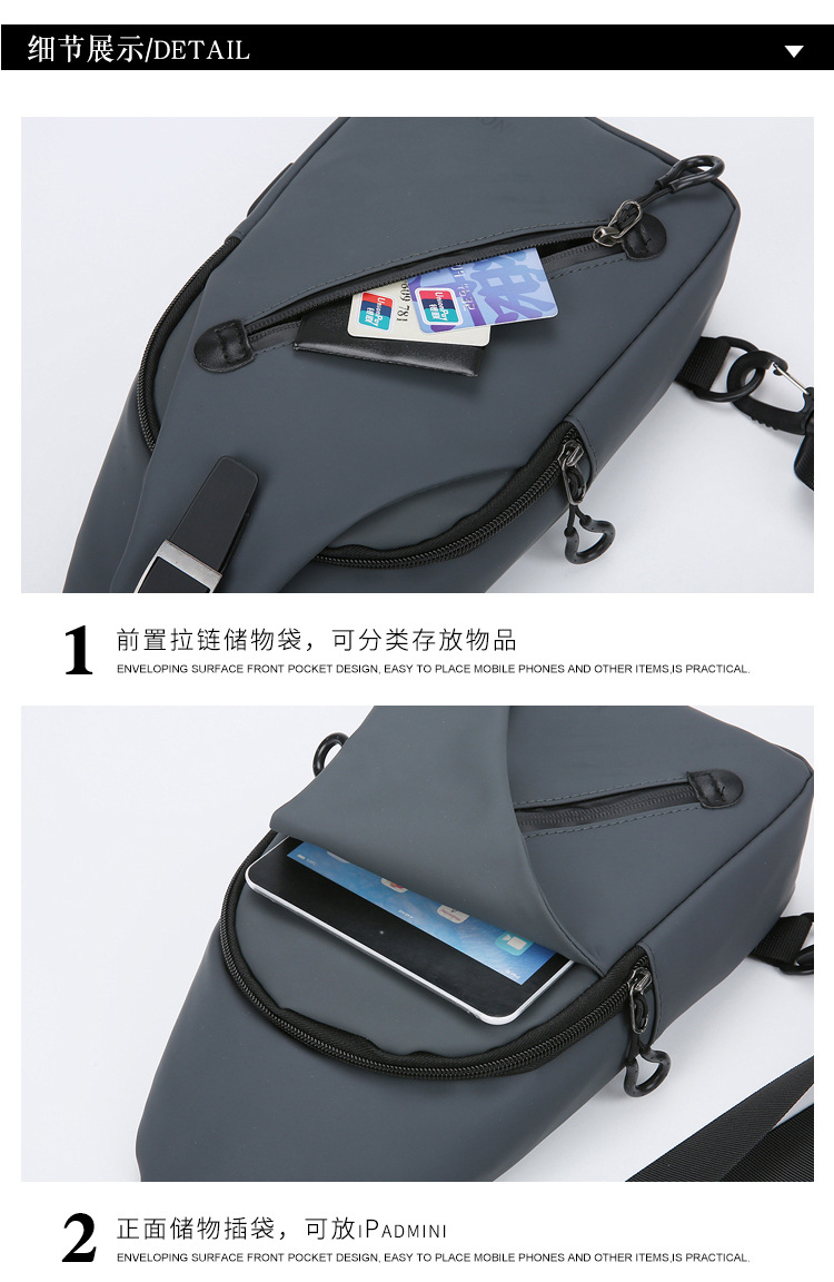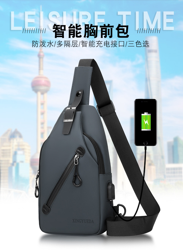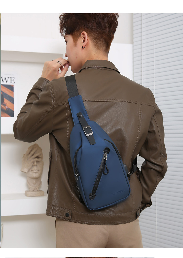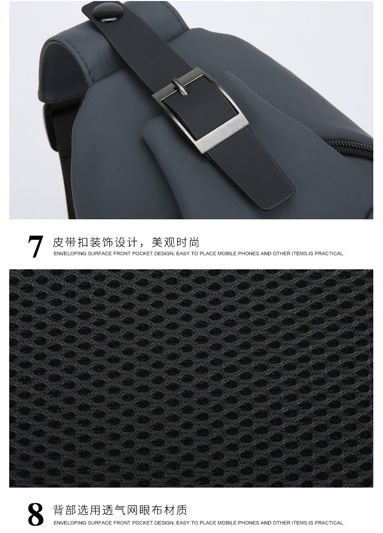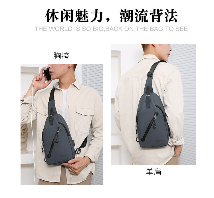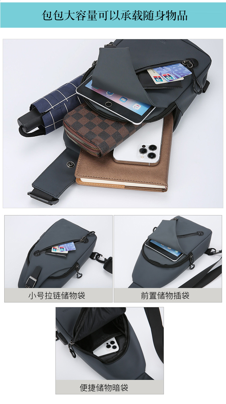 跨境新款男士胸包休闲大容量单肩斜挎包韩版机车包防泼水潮流背包