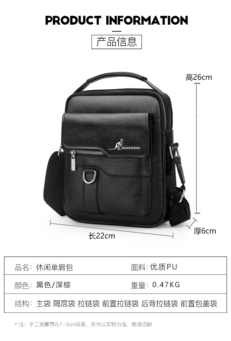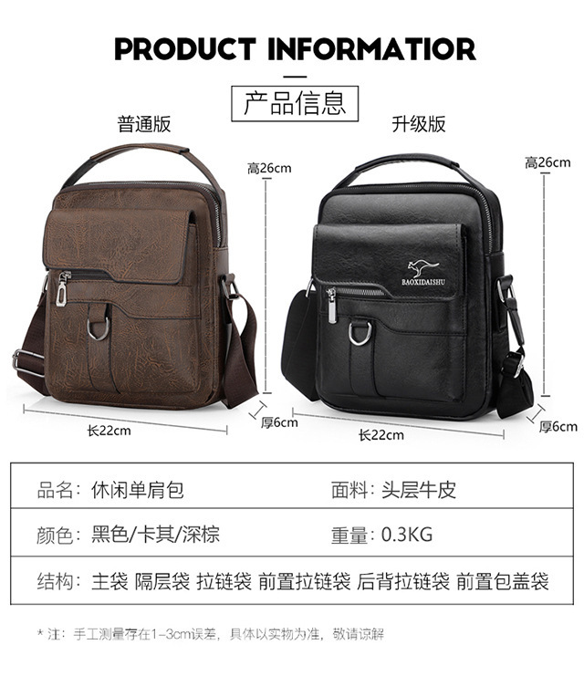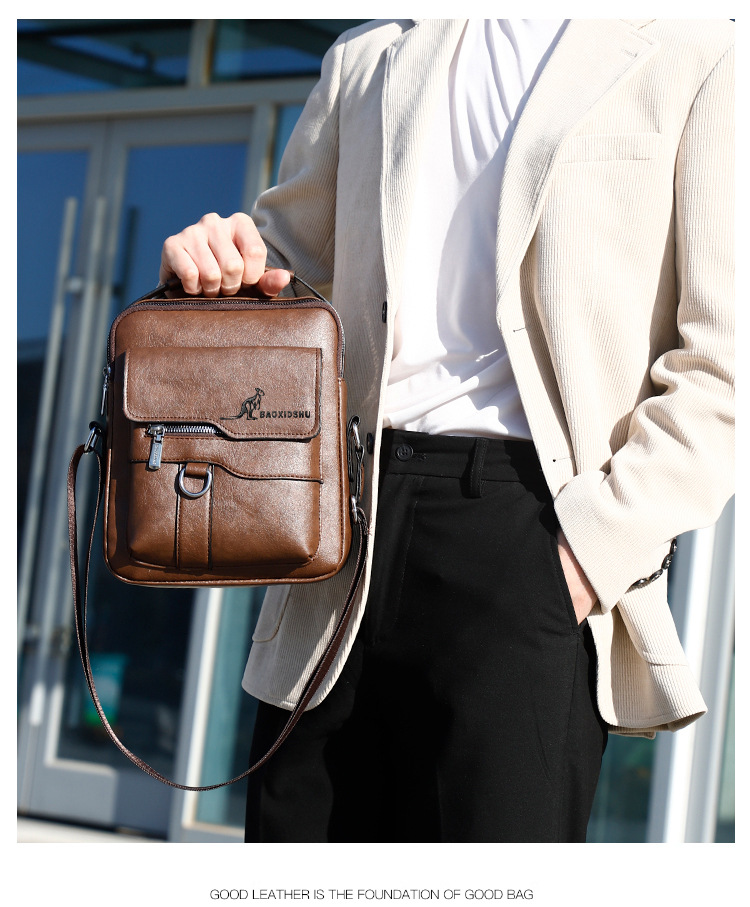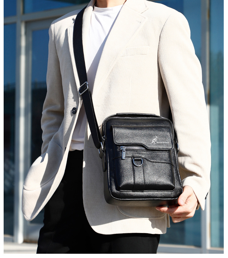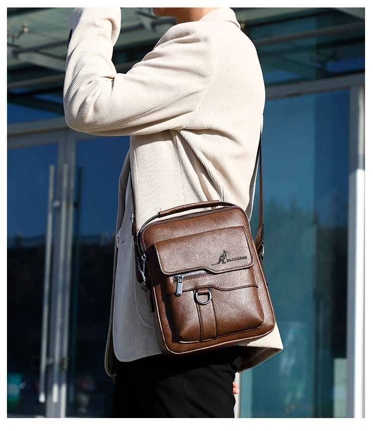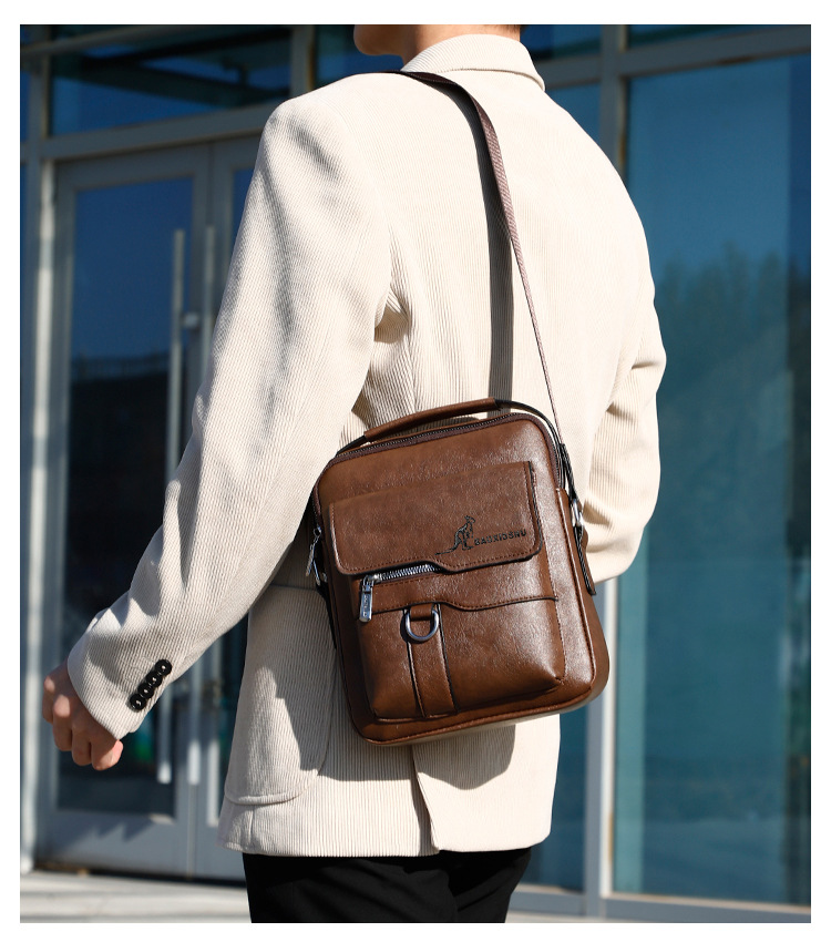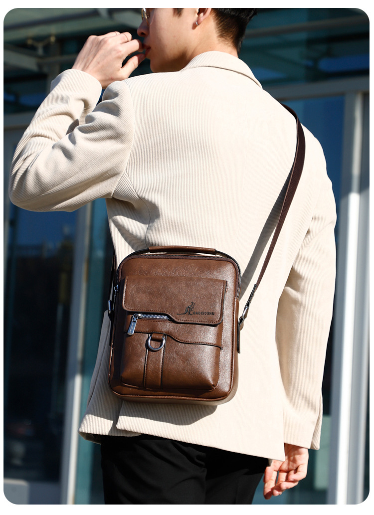 正品袋鼠新款高品质商务休闲多功能大容量百搭轻奢防水男士单肩包