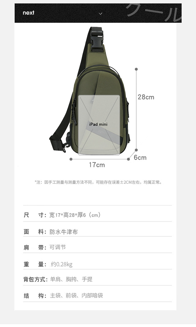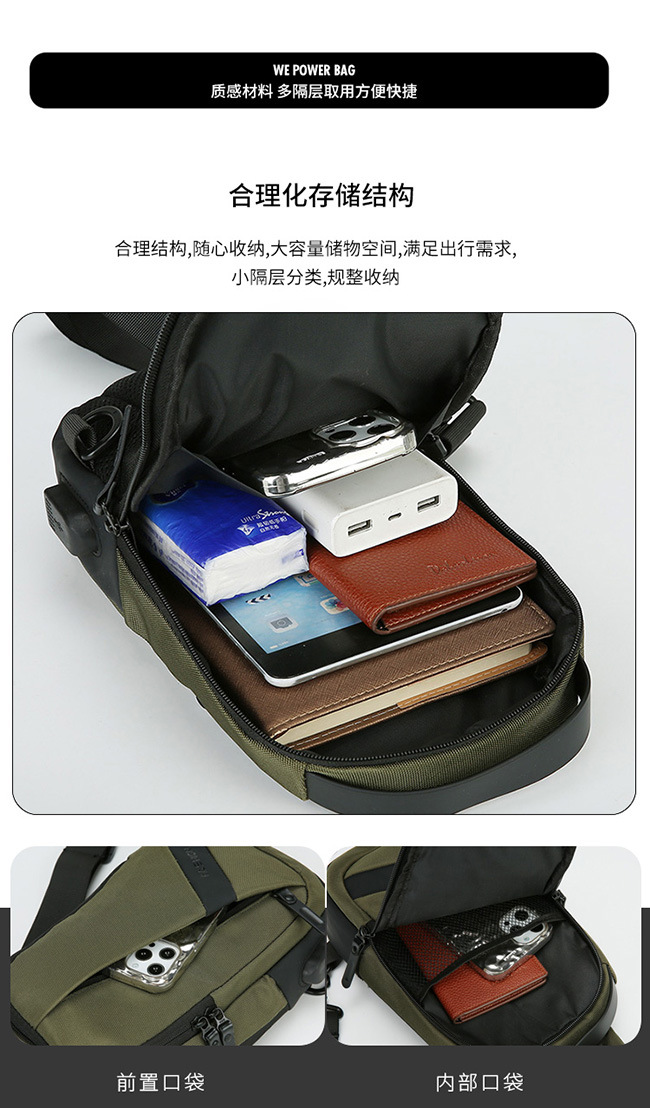 新款商务男士胸包轻便牛津布斜挎包高品质户外通勤单肩包男士背包