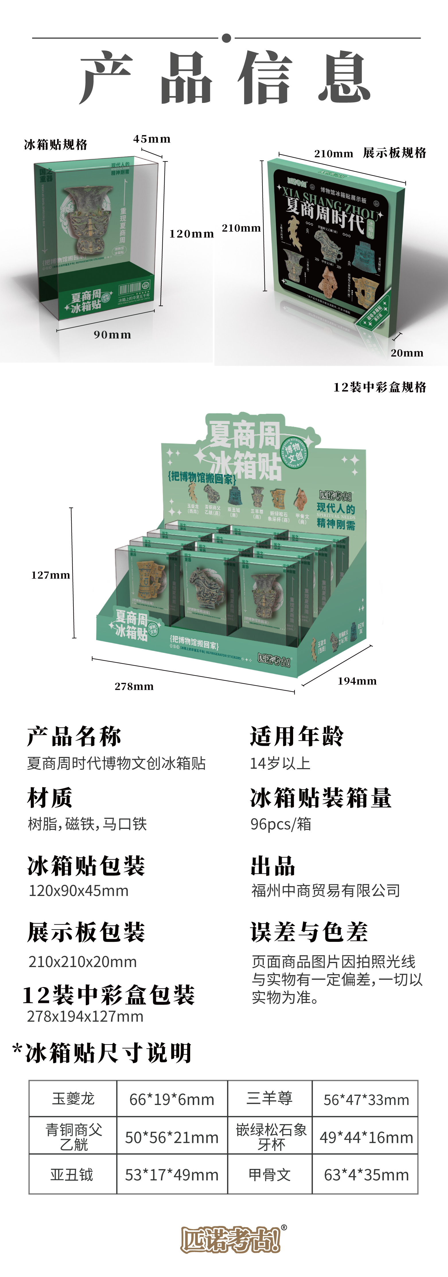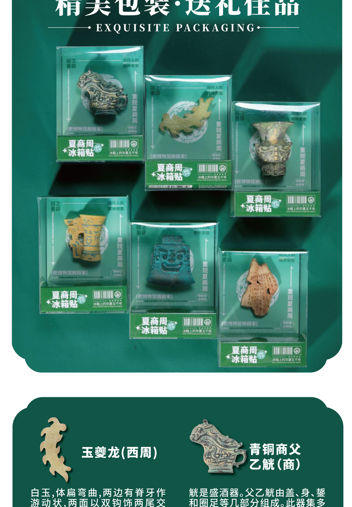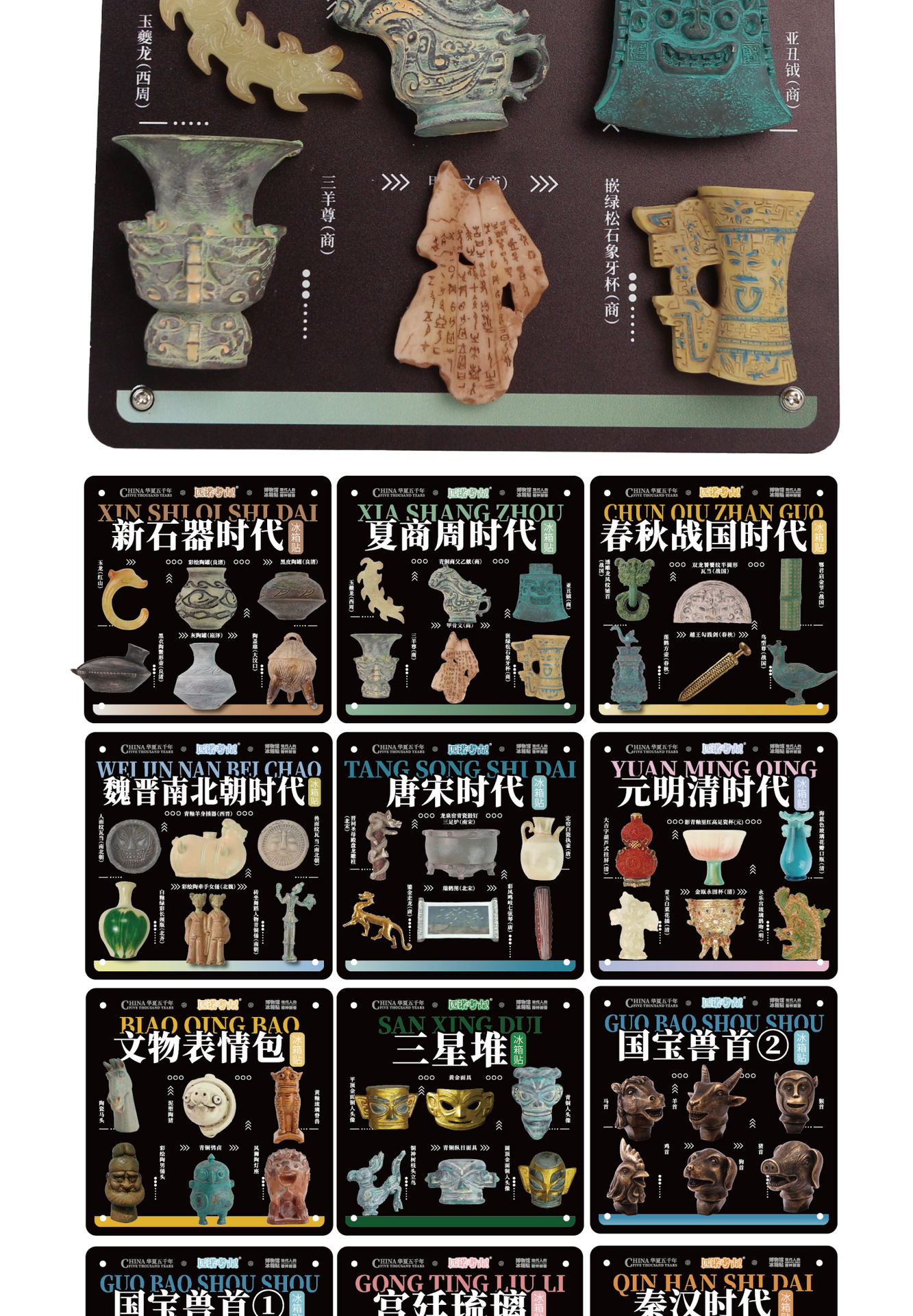 夏商周时代冰箱贴故宫文创博物馆旅游纪念品考古盲盒磁吸贴玩具