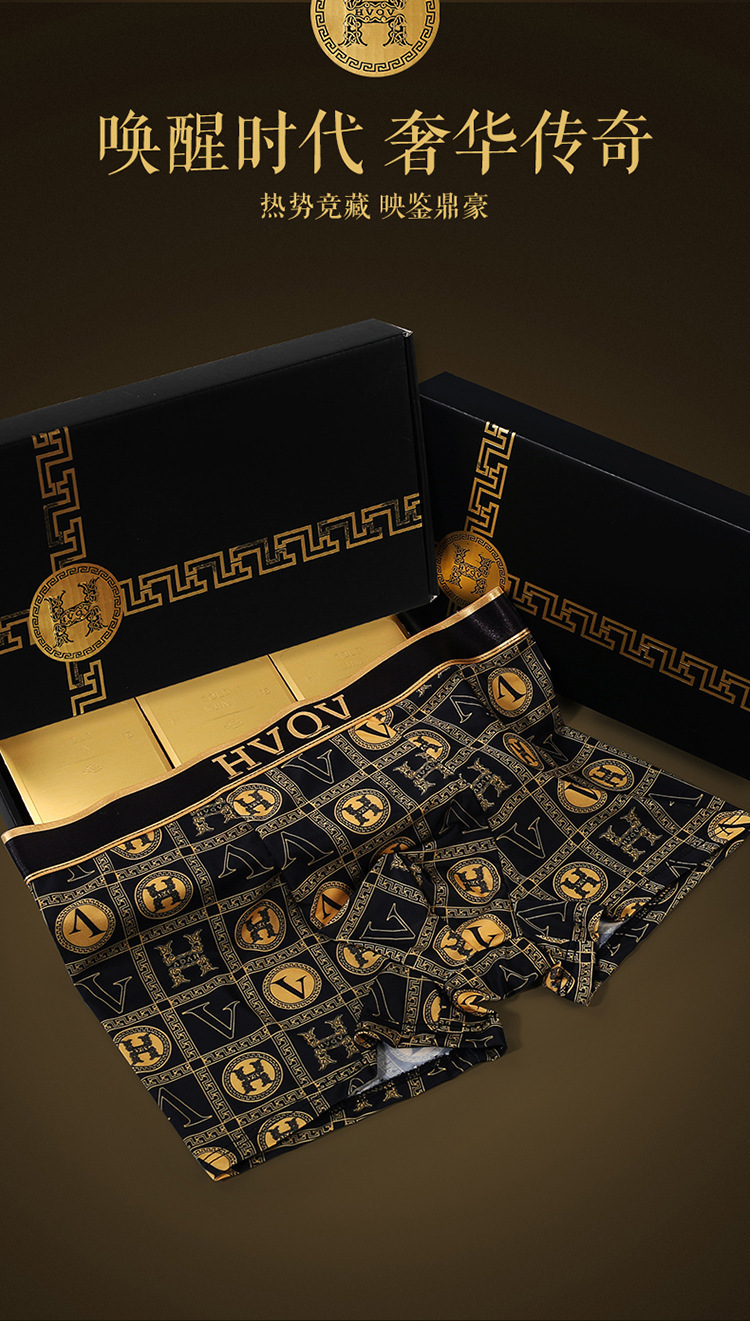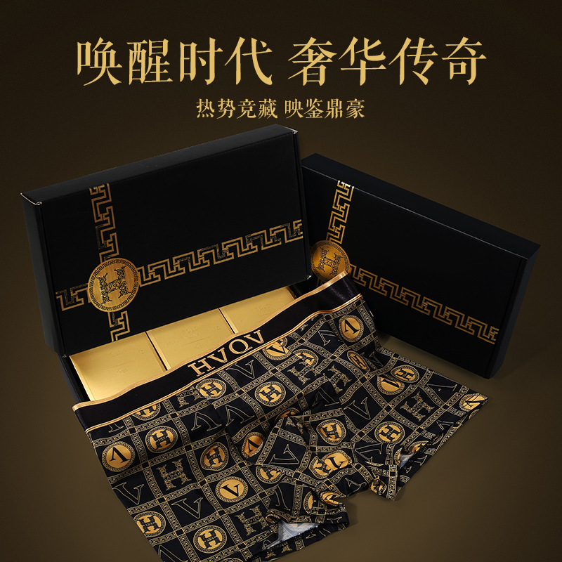 超薄款男士内裤平角裤冰丝夏季性感透气四角裤头潮温变磁石纯棉档