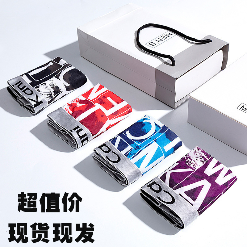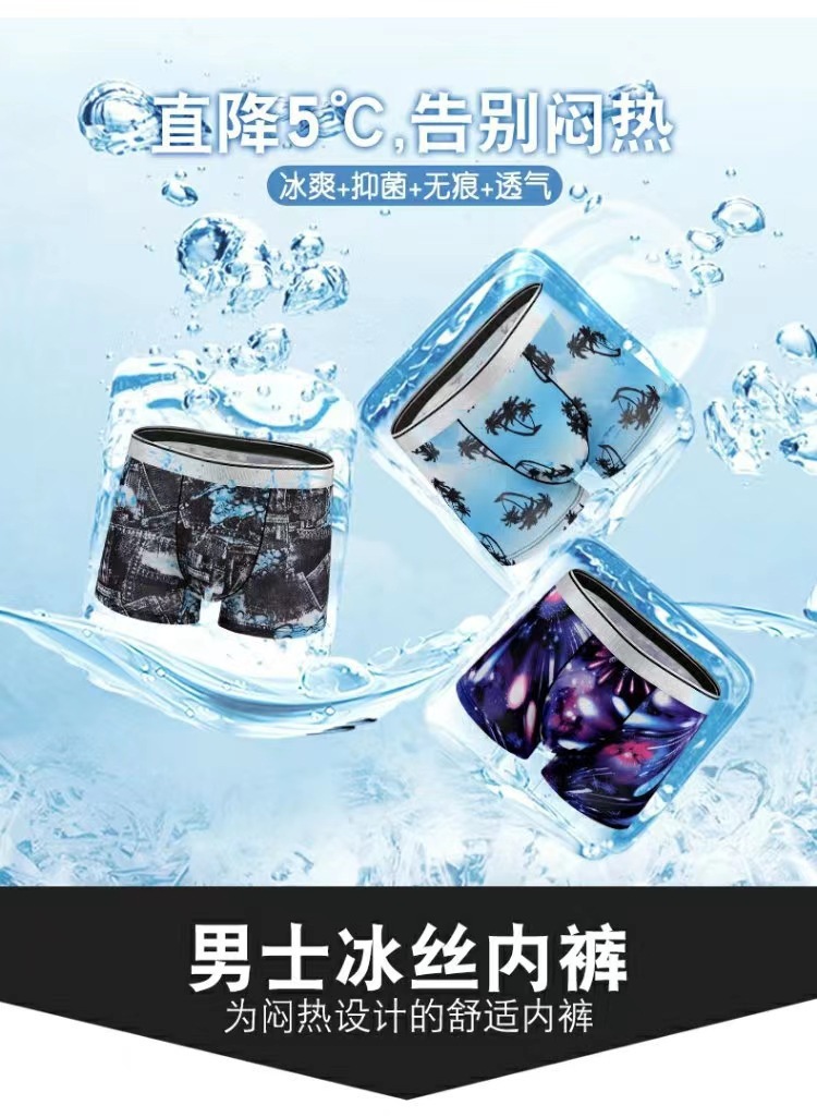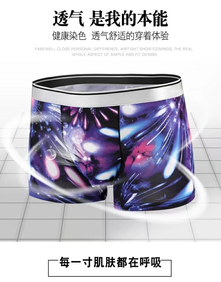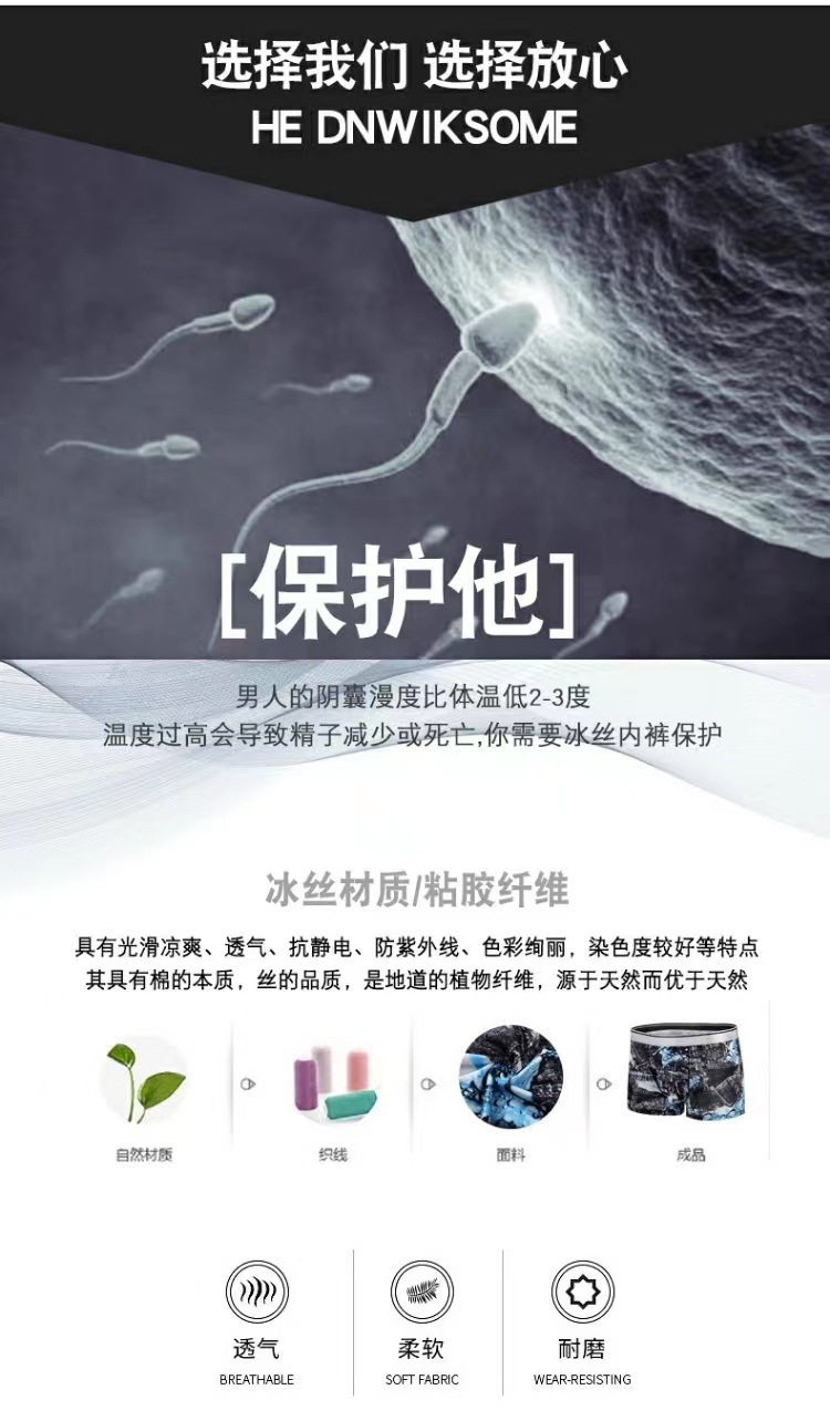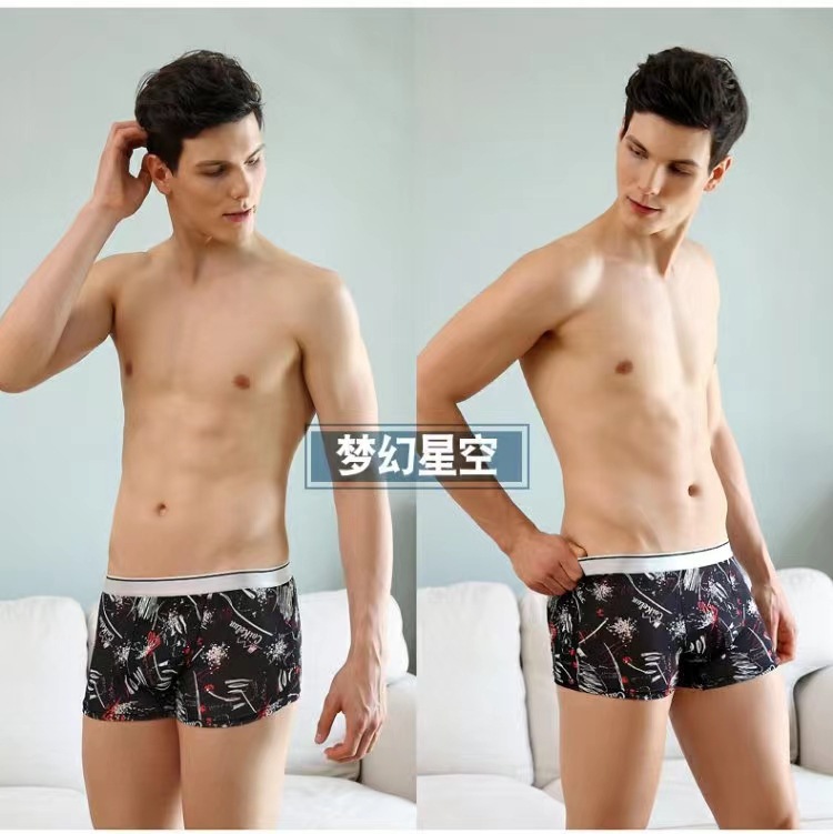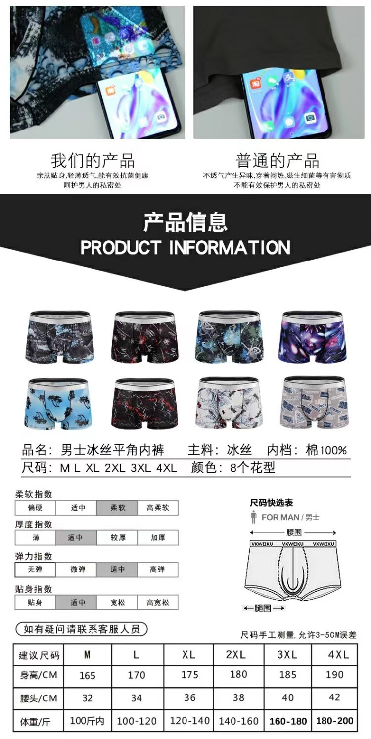 跨境专供内裤男士冰丝纯棉莫代尔平角裤大码男生四角内裤透气裤衩