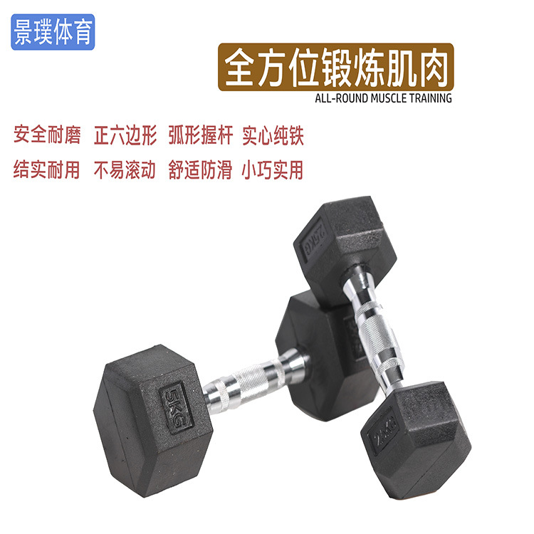 跨境工厂包胶六角哑铃男士家用健身器材健身房实心铸铁练臂肌固定