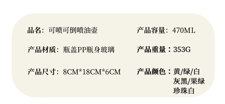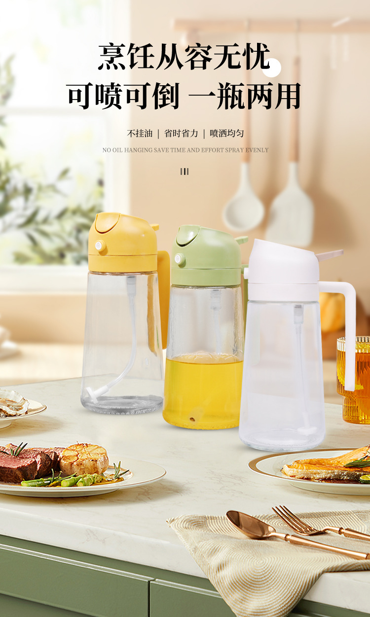 手提式雾化喷油壶可喷可倒厨房两用酱油调料瓶满口470毫升玻璃喷