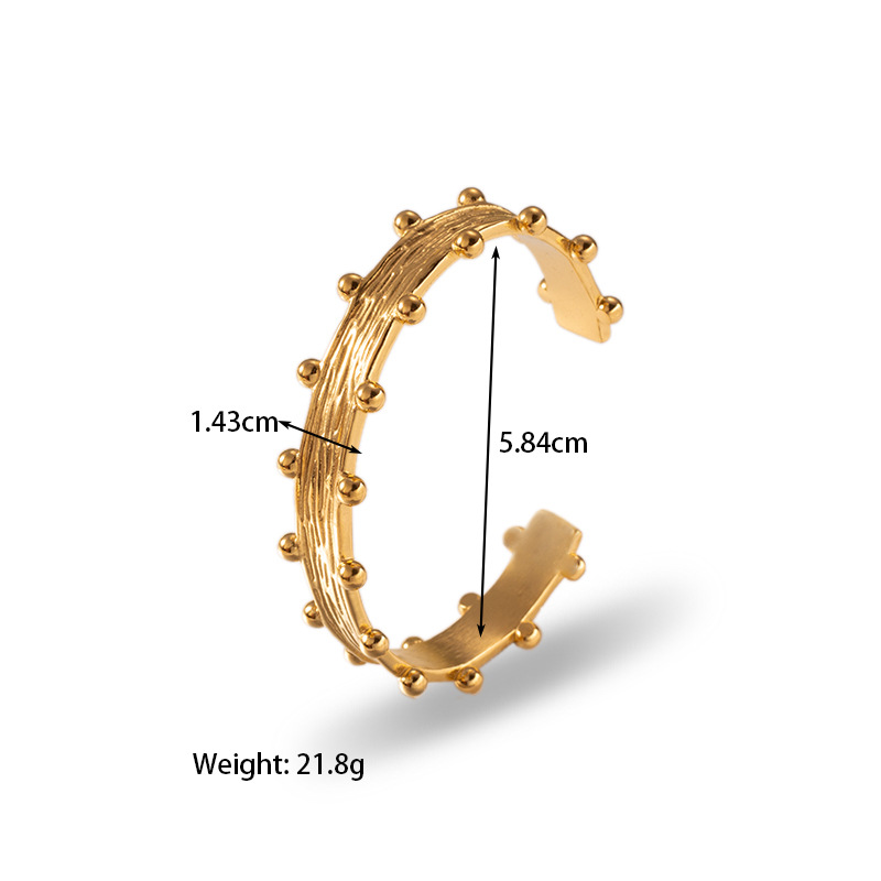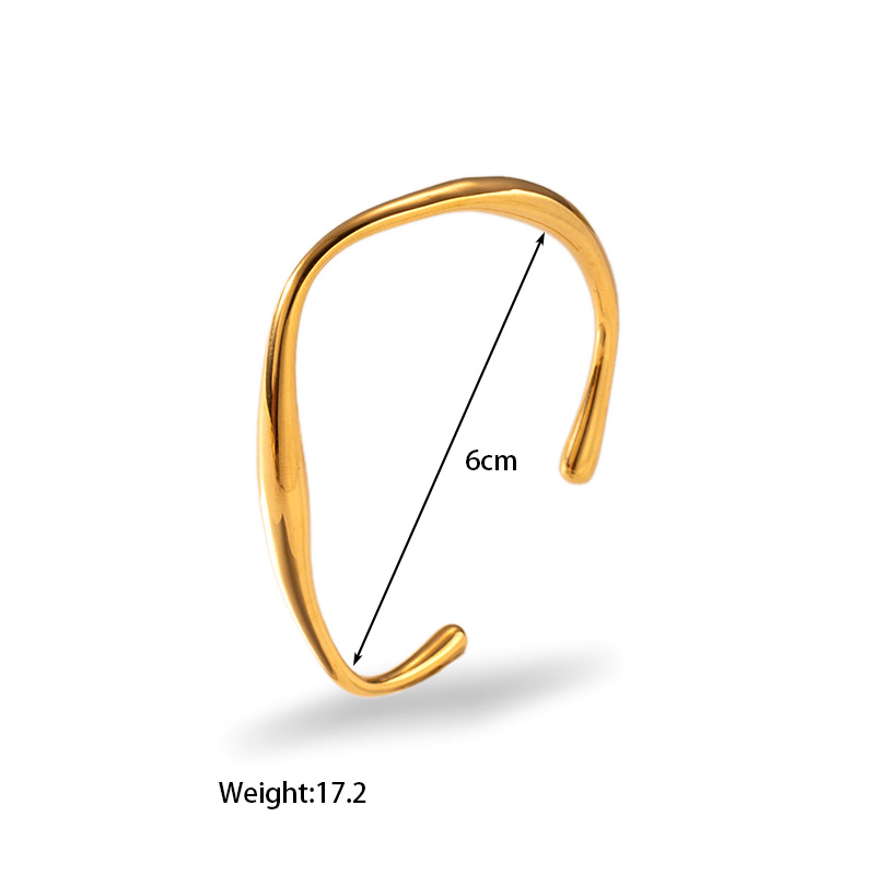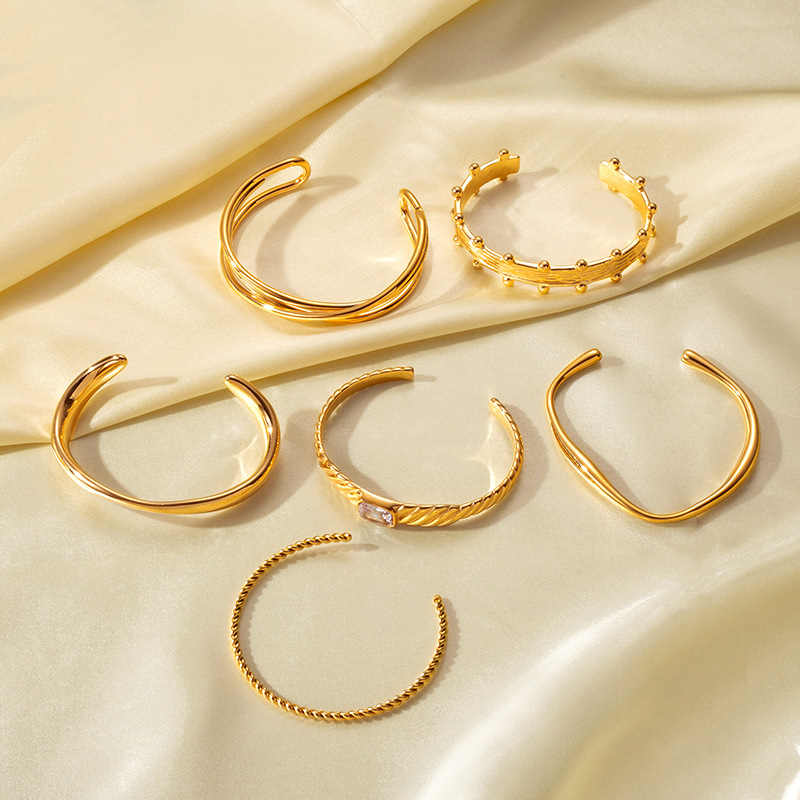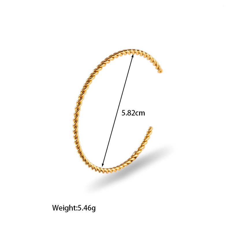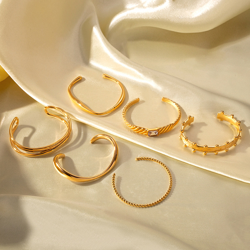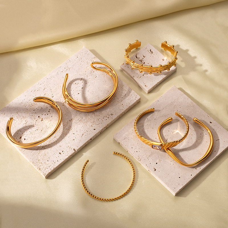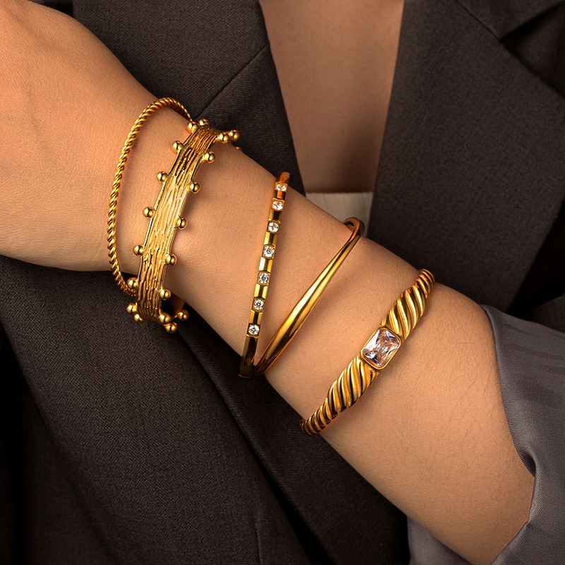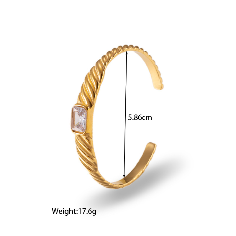 INS风18k金镀金不锈钢钛钢小众开口螺旋纹理镶嵌锆石手镯手饰手环