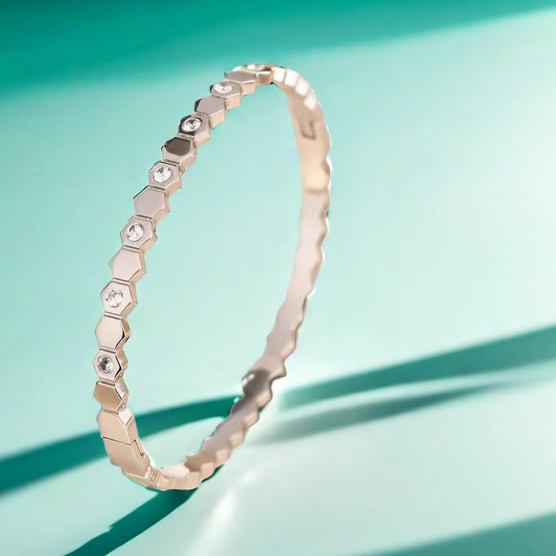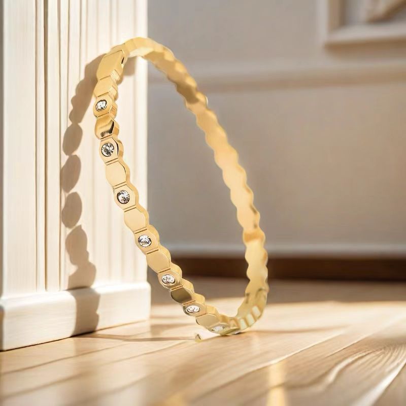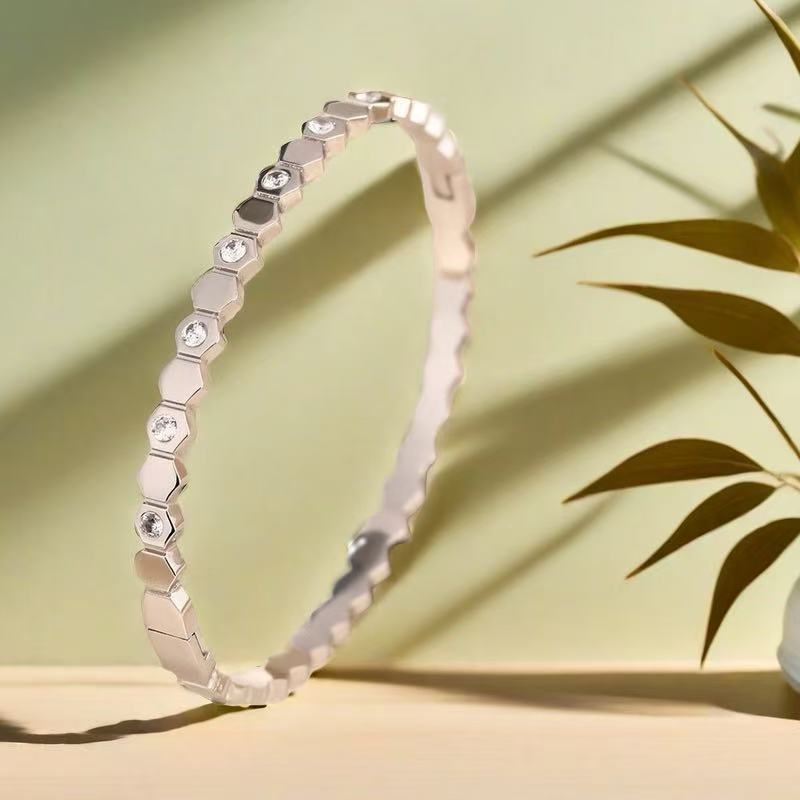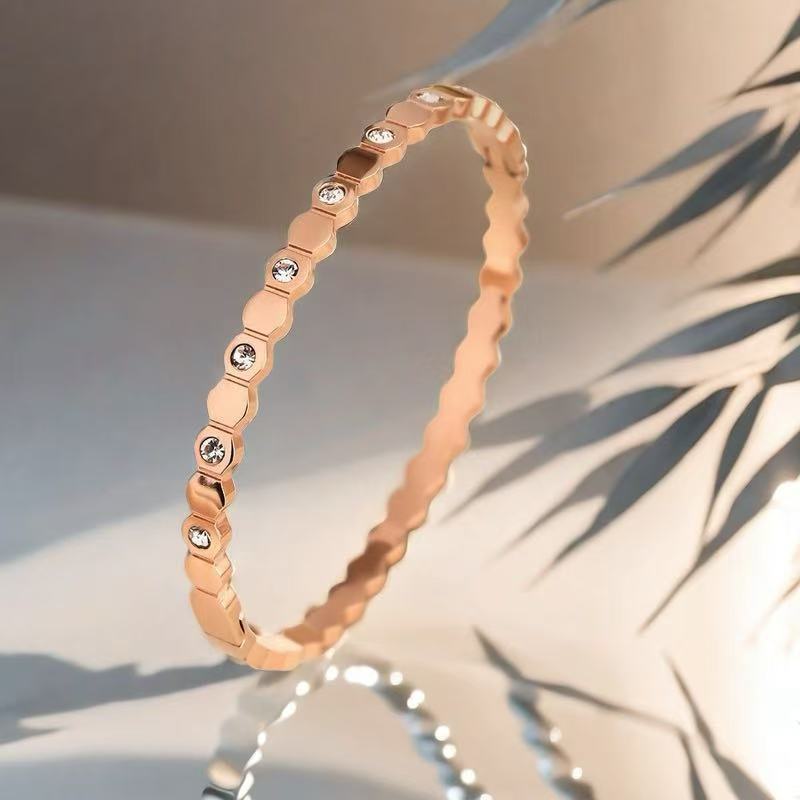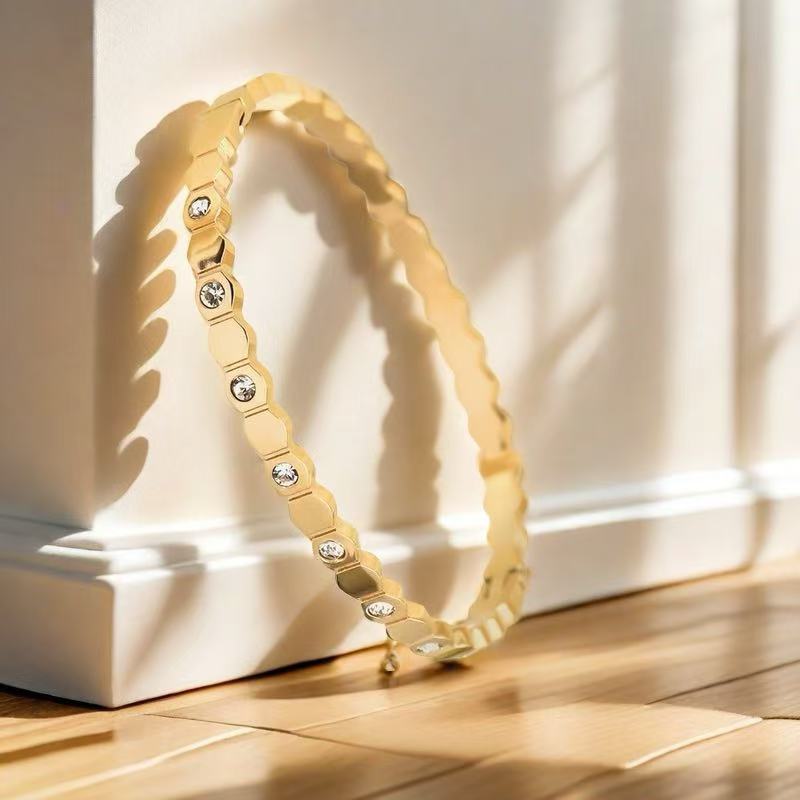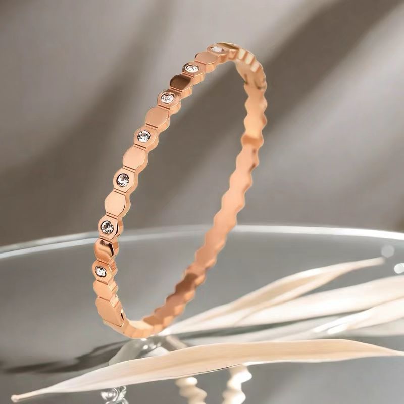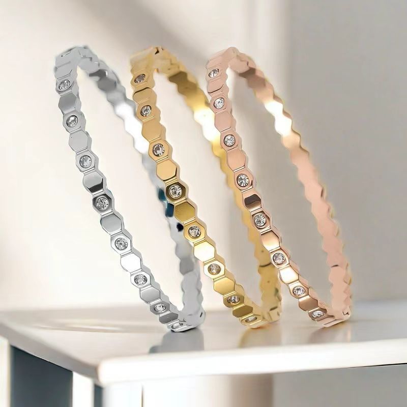 跨境高级设计感手饰批发 简约几何菱形排钻手镯小众ins不掉色手环