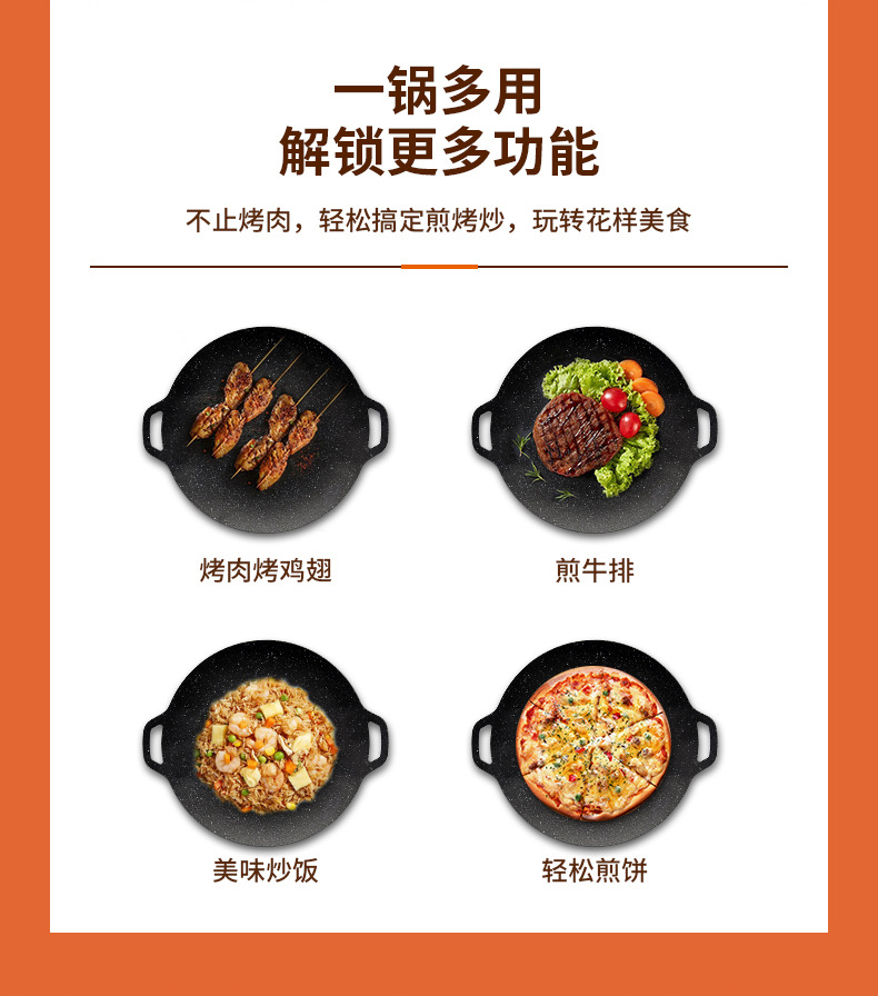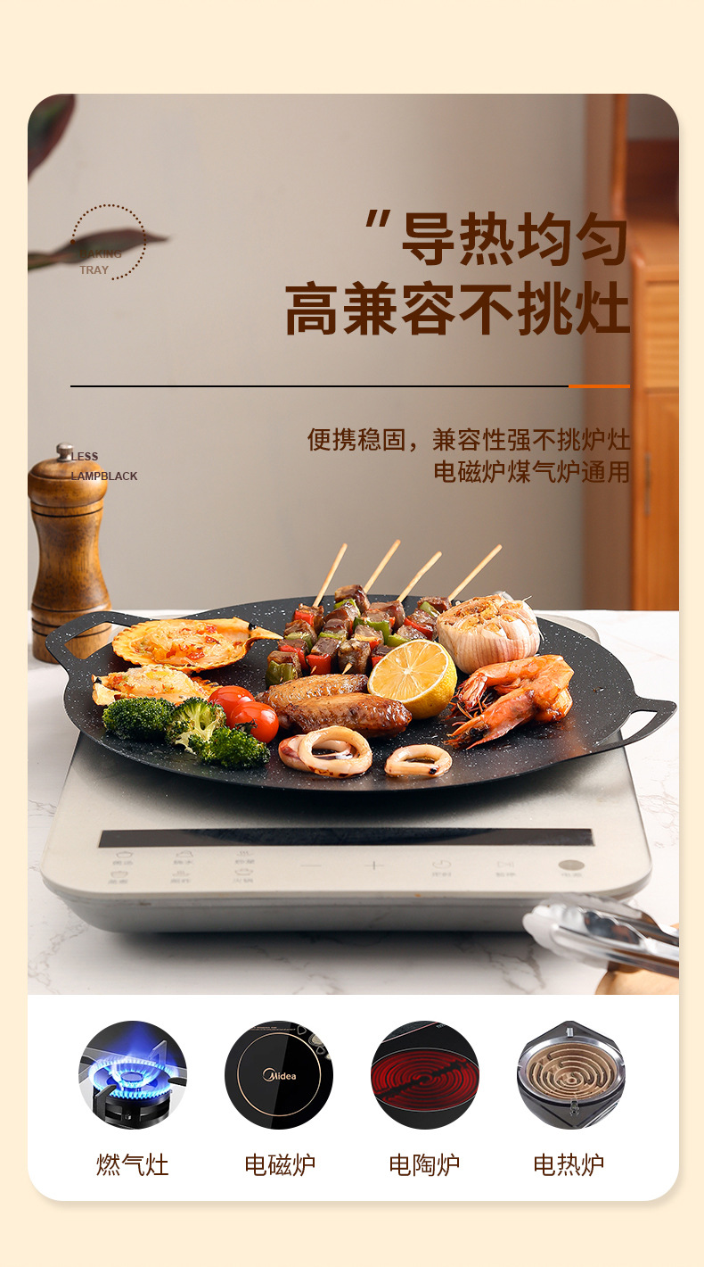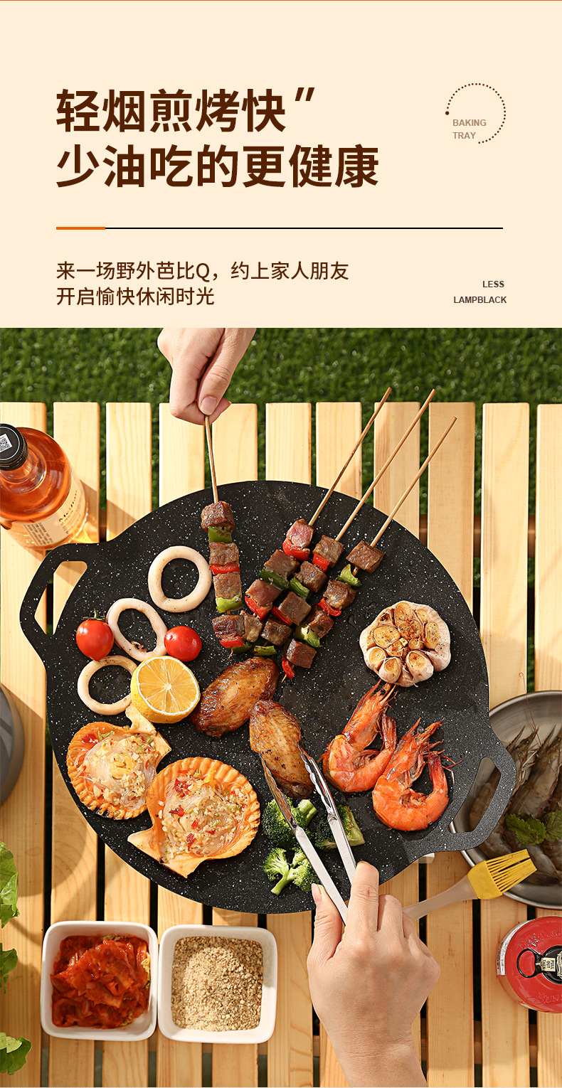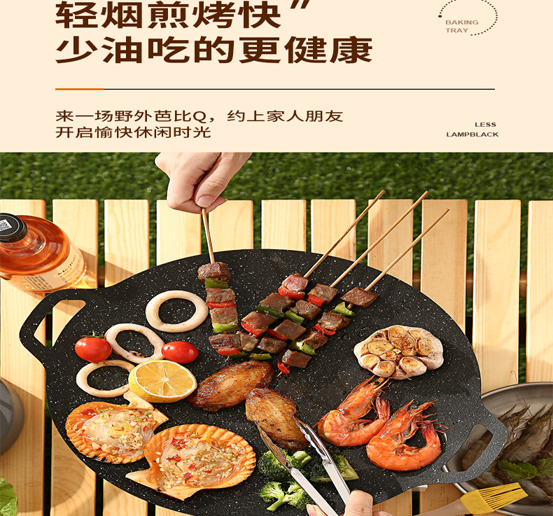 烤盘户外露营烤肉盘烧烤盘家用商用韩式不沾烤肉盘麦板电磁炉通用