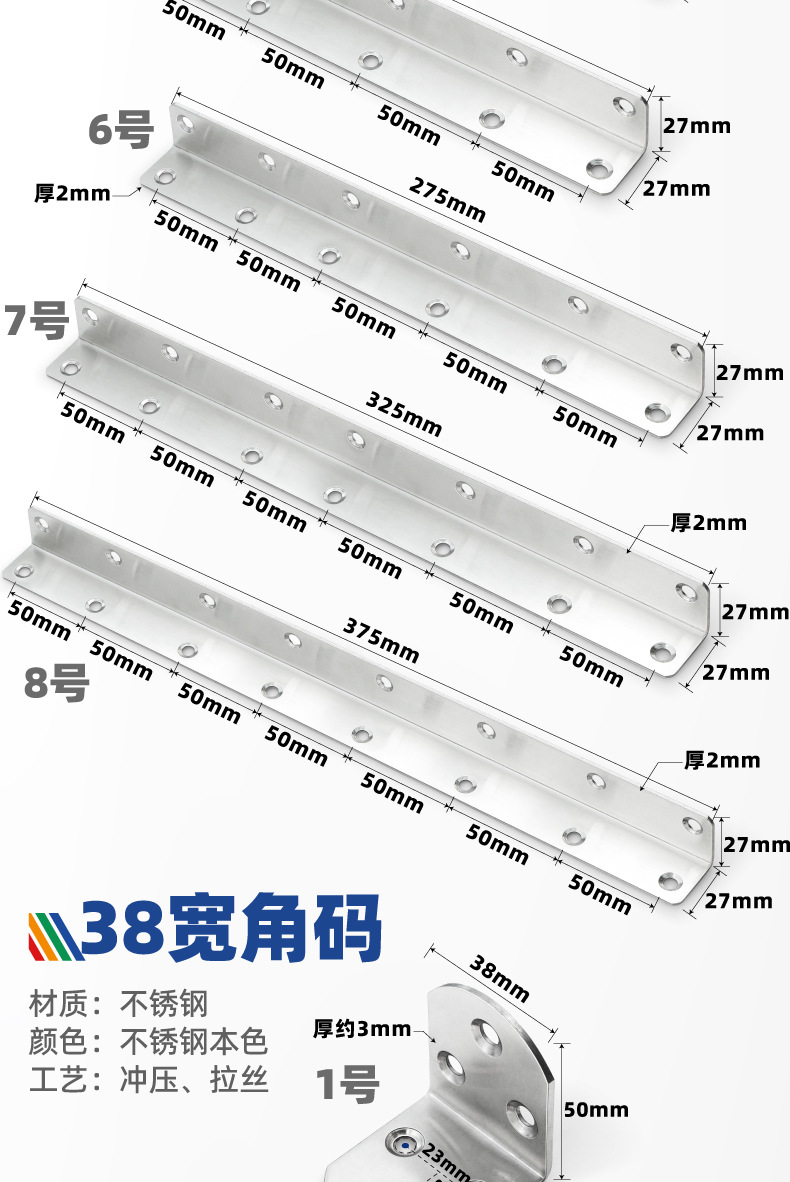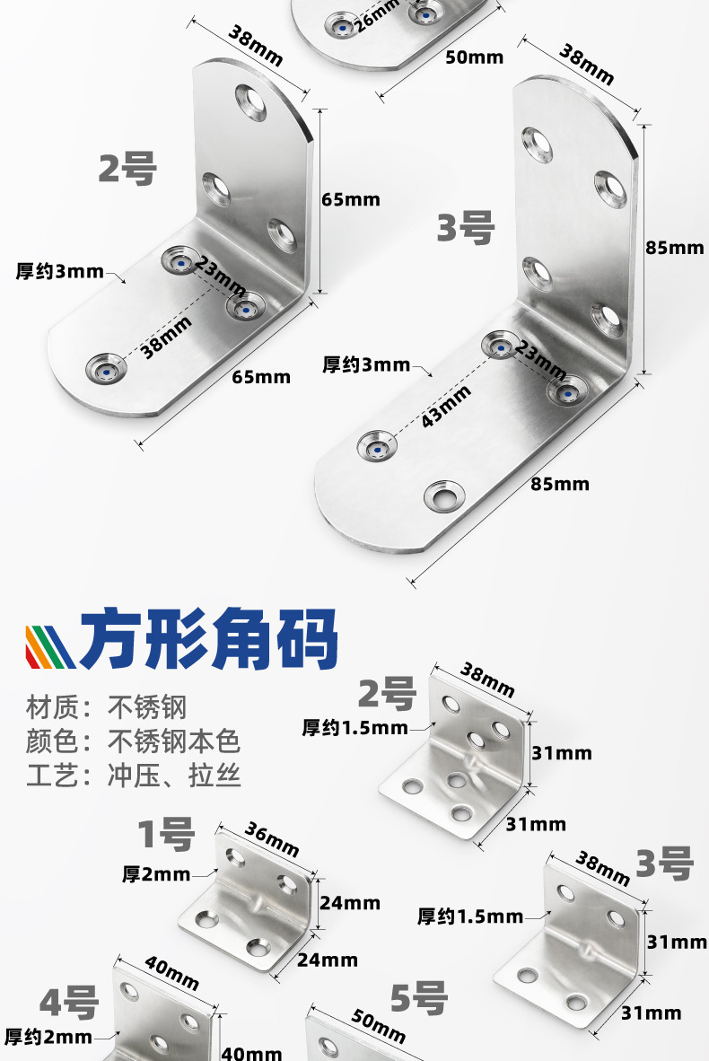 不锈钢角码批发加厚直角90度L型角铁支架连接件固定器三面角码片