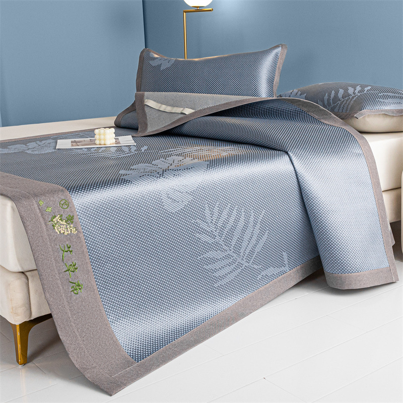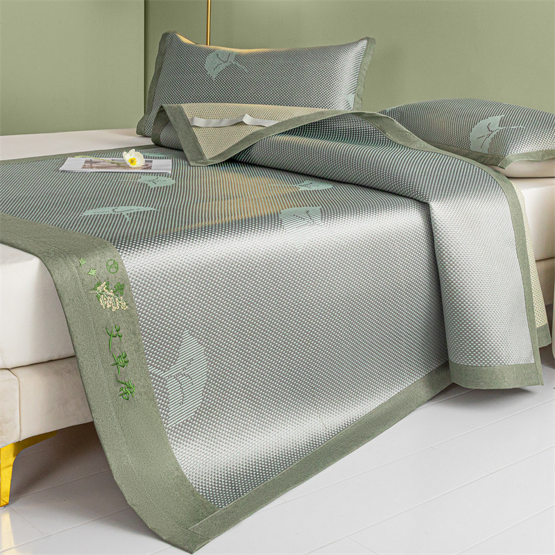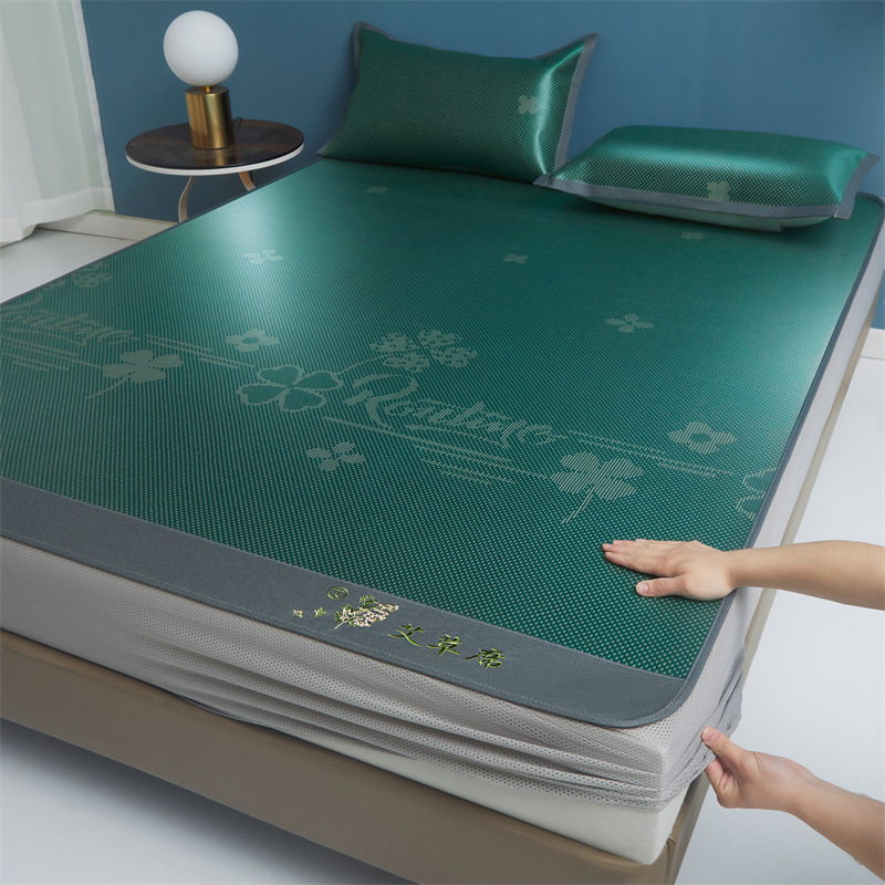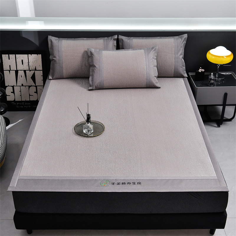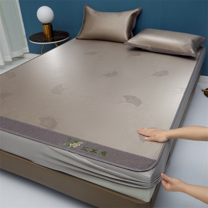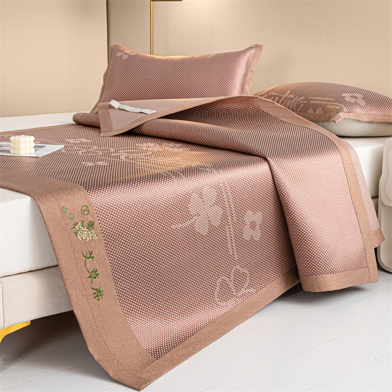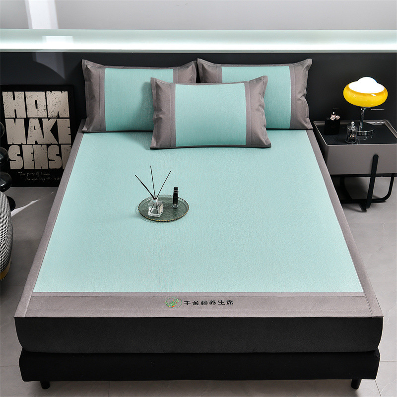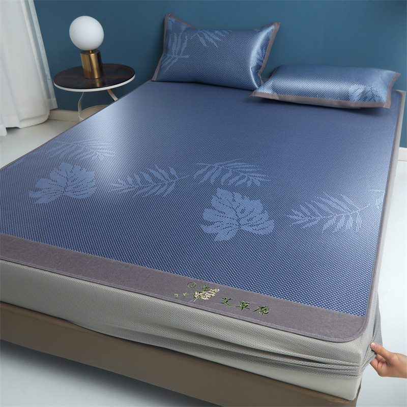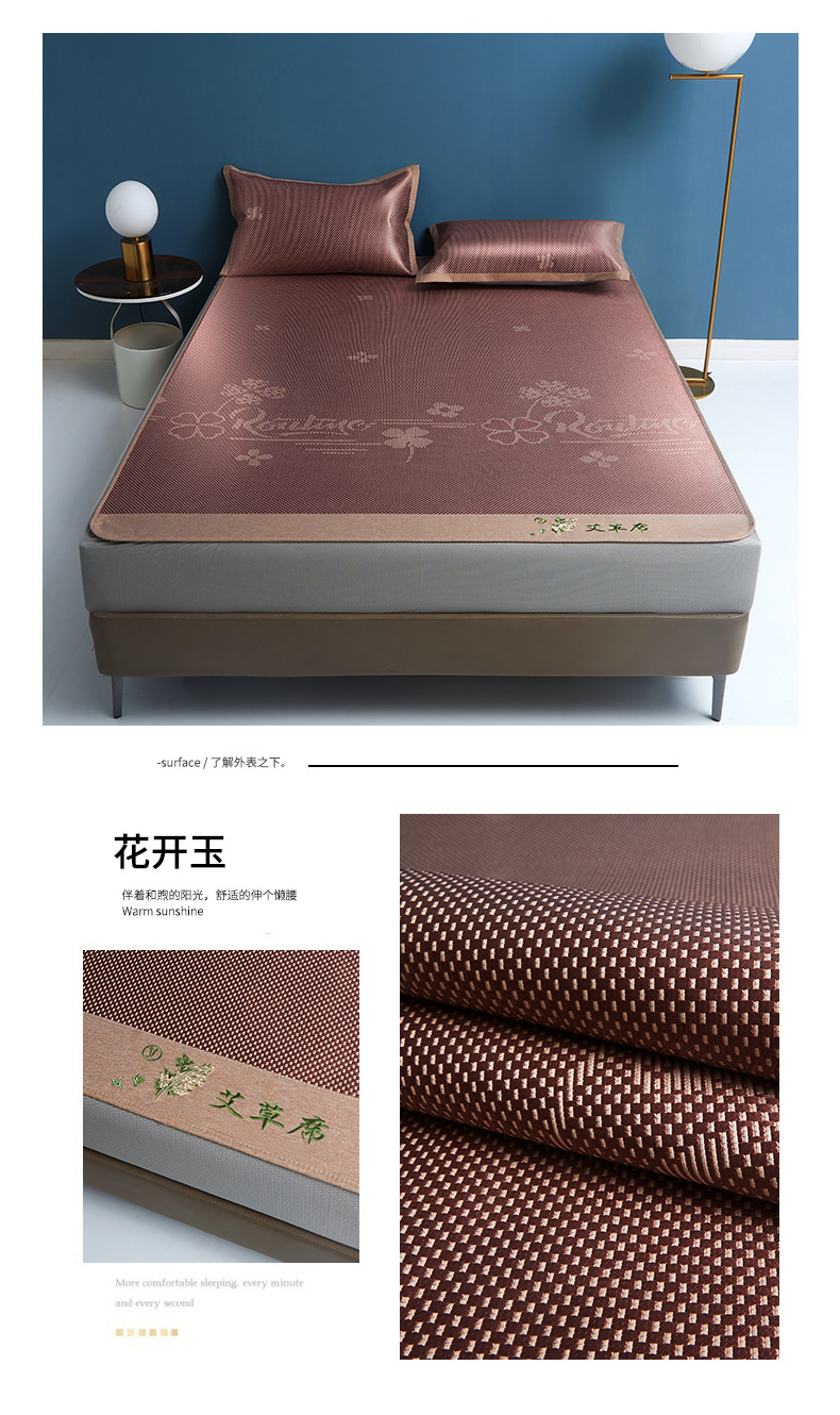 艾草驱蚊藤席冰丝席三件套可裸睡凉席折叠席子夏季透气天然冰藤席