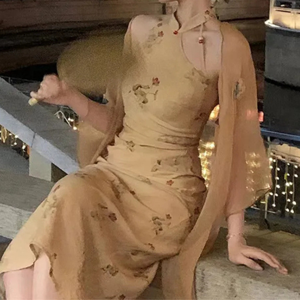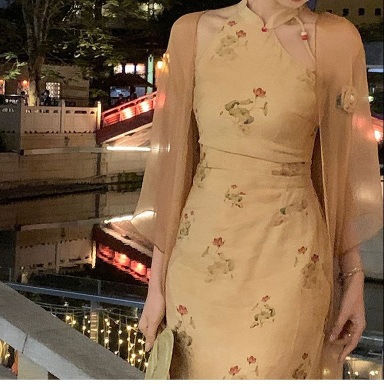 新中式复古改良旗袍连衣裙女2024年夏季新款收腰气质显瘦连衣裙子