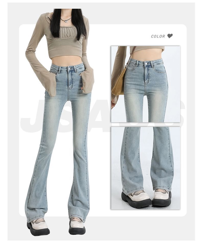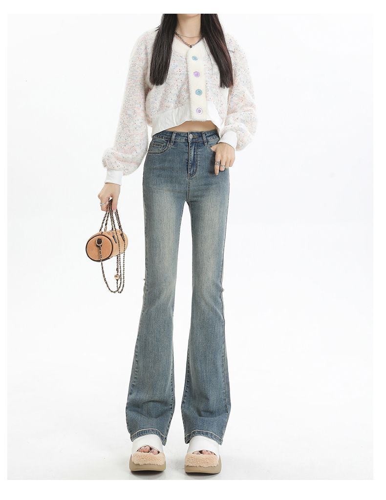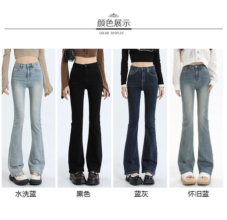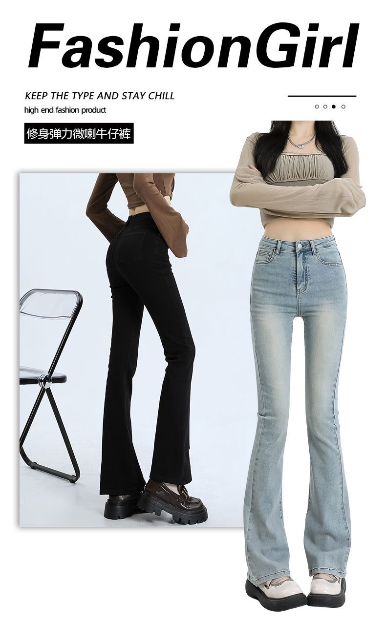 弹力微喇牛仔裤女春秋新款显瘦新塘牛仔之都九分小个子直筒喇叭裤