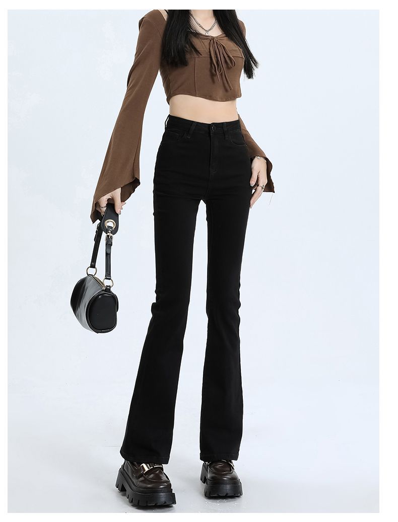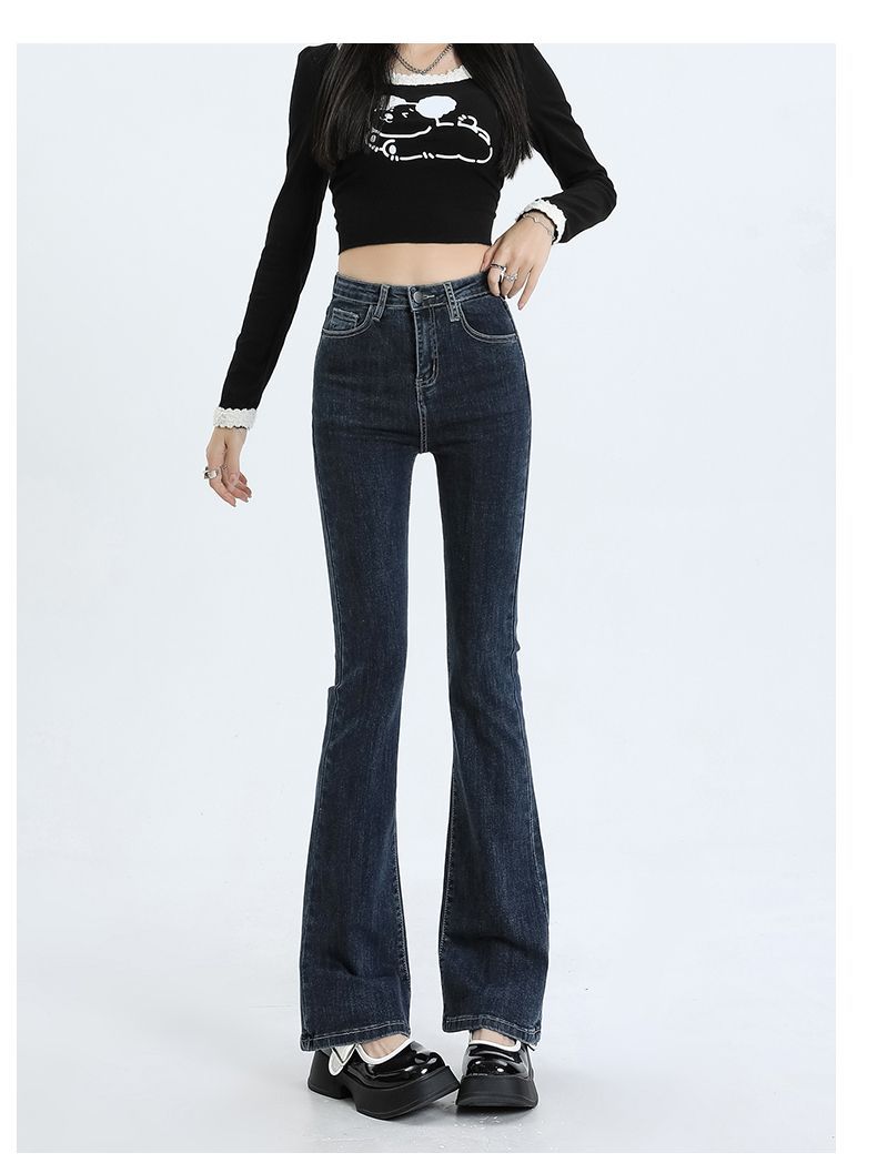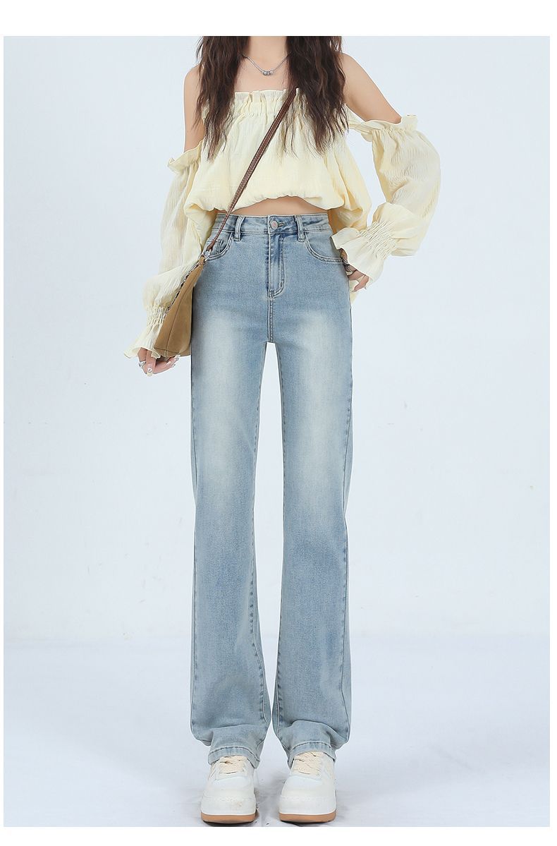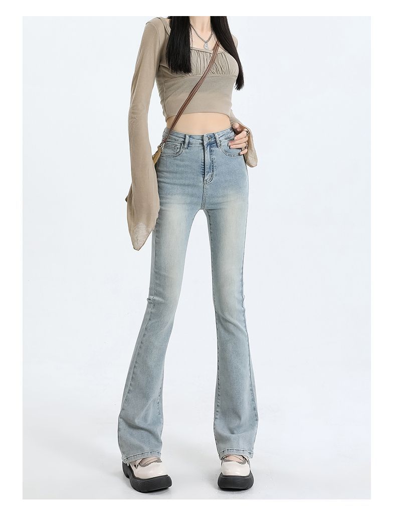 弹力微喇牛仔裤女春秋新款显瘦新塘牛仔之都九分小个子直筒喇叭裤
