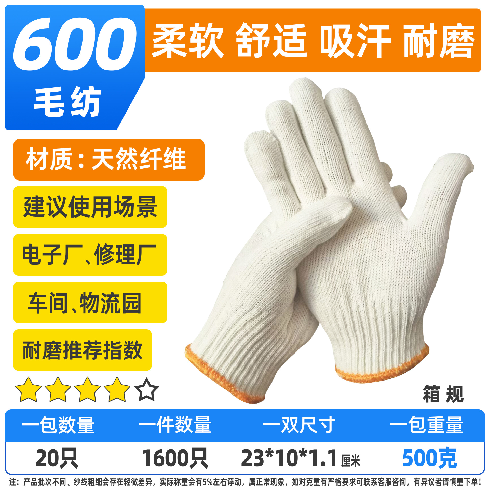 包邮加厚劳保手套耐磨工地用工厂作业干活工作工业白棉线防滑手套