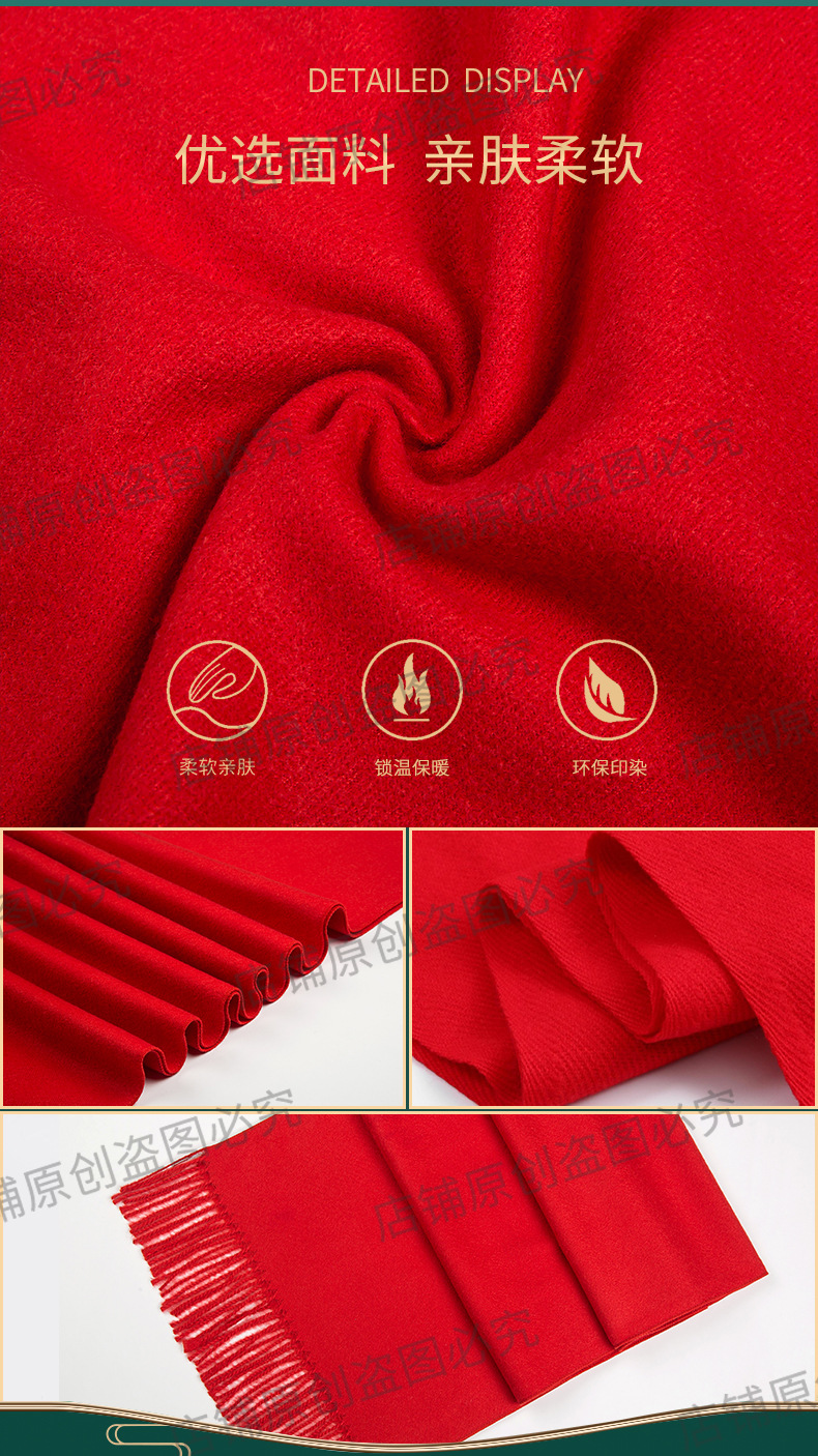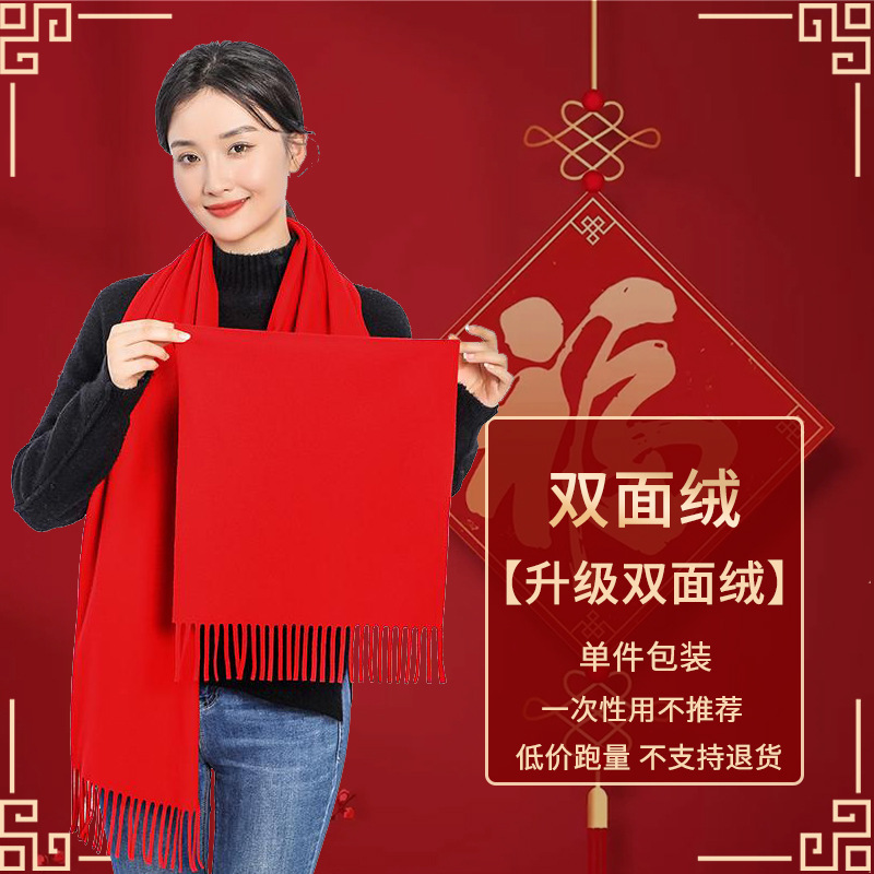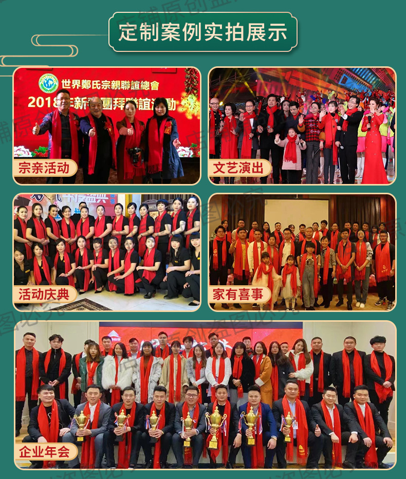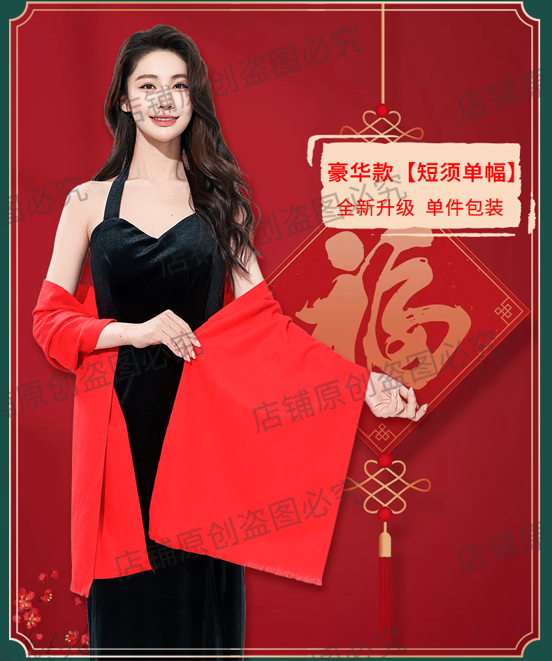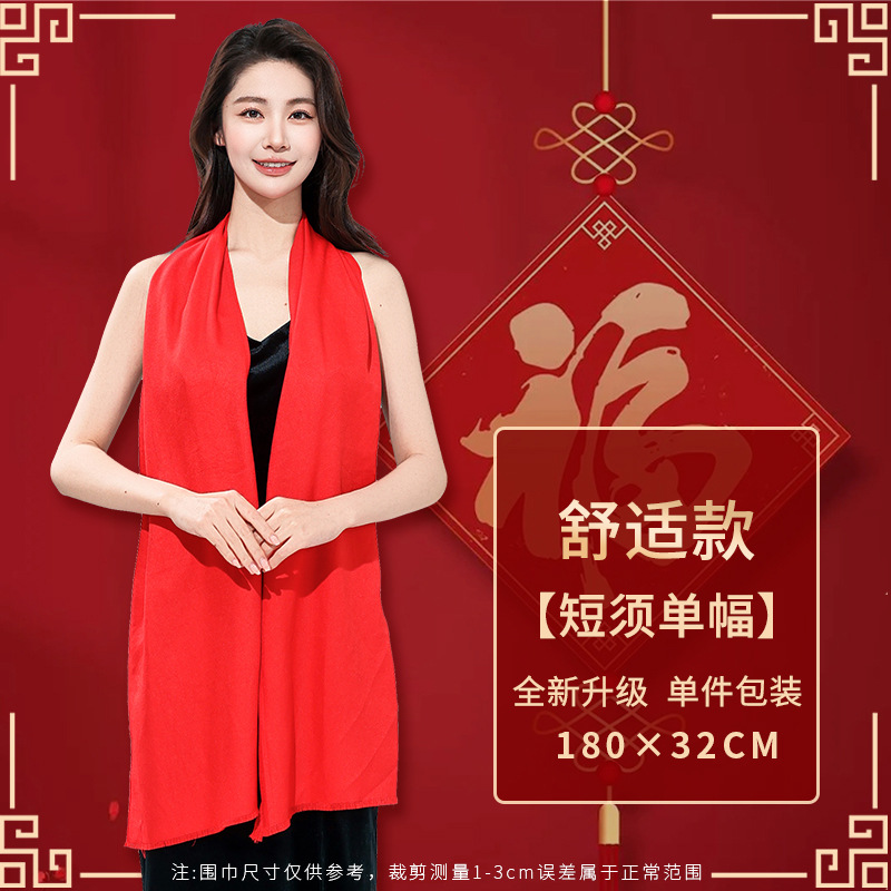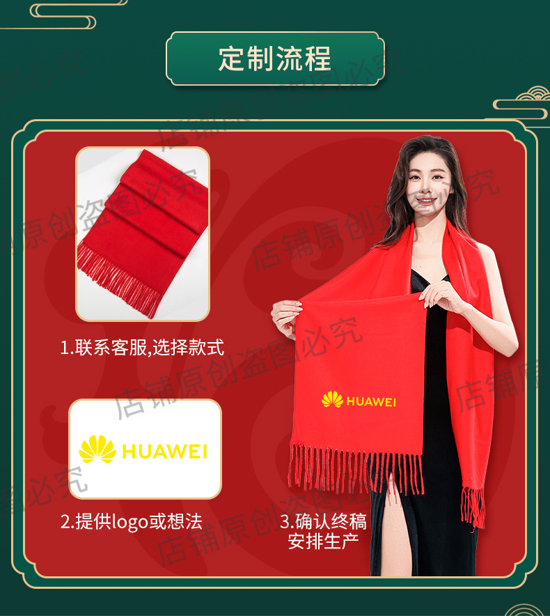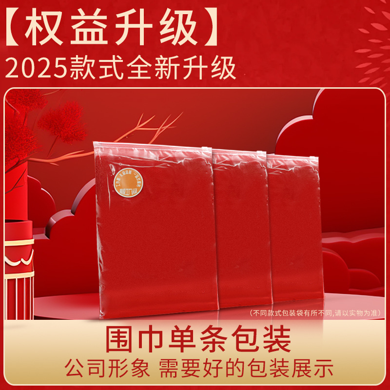 工厂批发中国红围巾定制公司年会开业活动围脖印字LOGO大红色刺绣