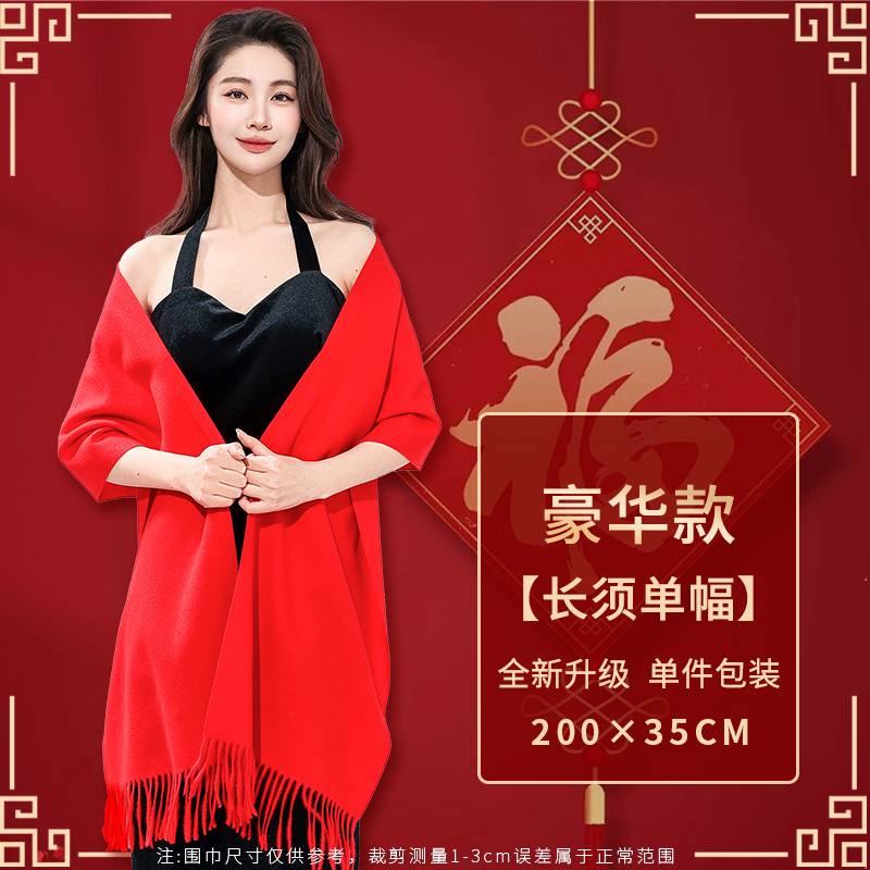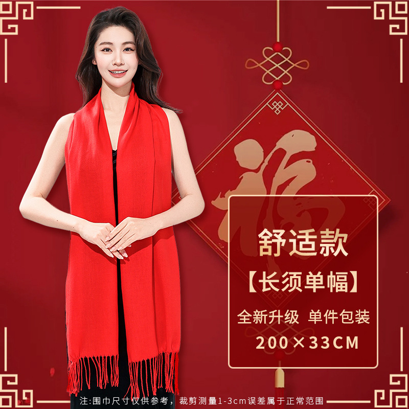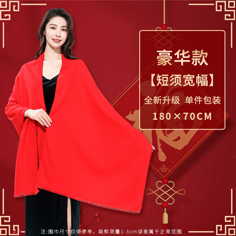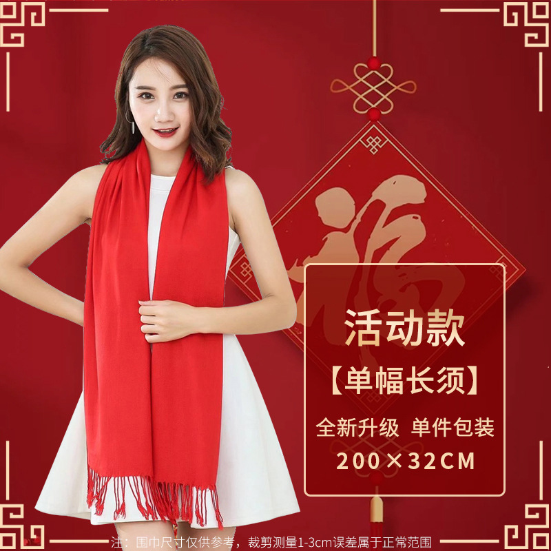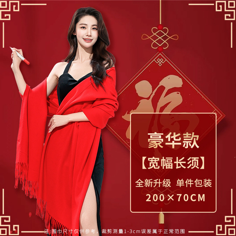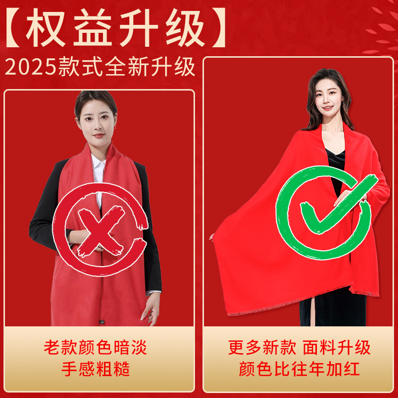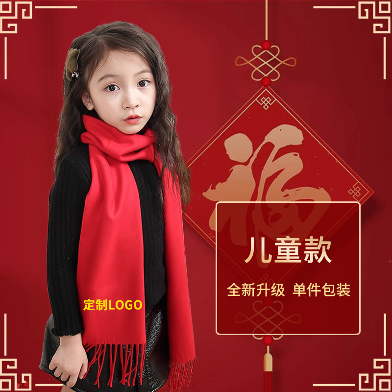 工厂批发中国红围巾定制公司年会开业活动围脖印字LOGO大红色刺绣