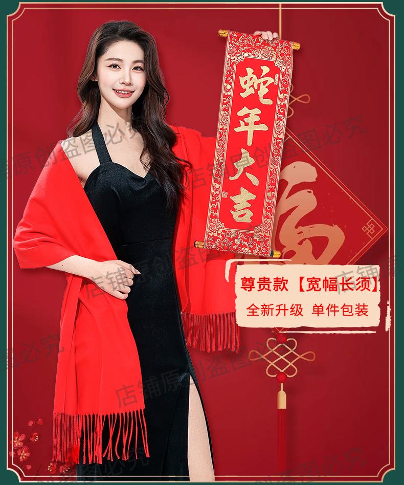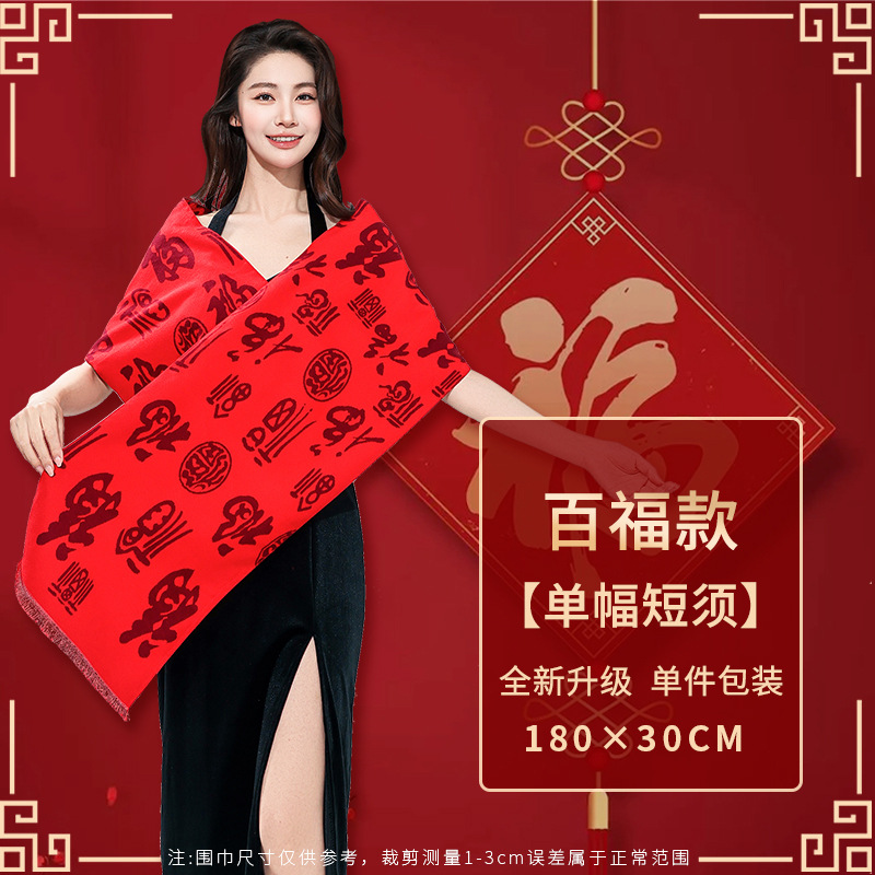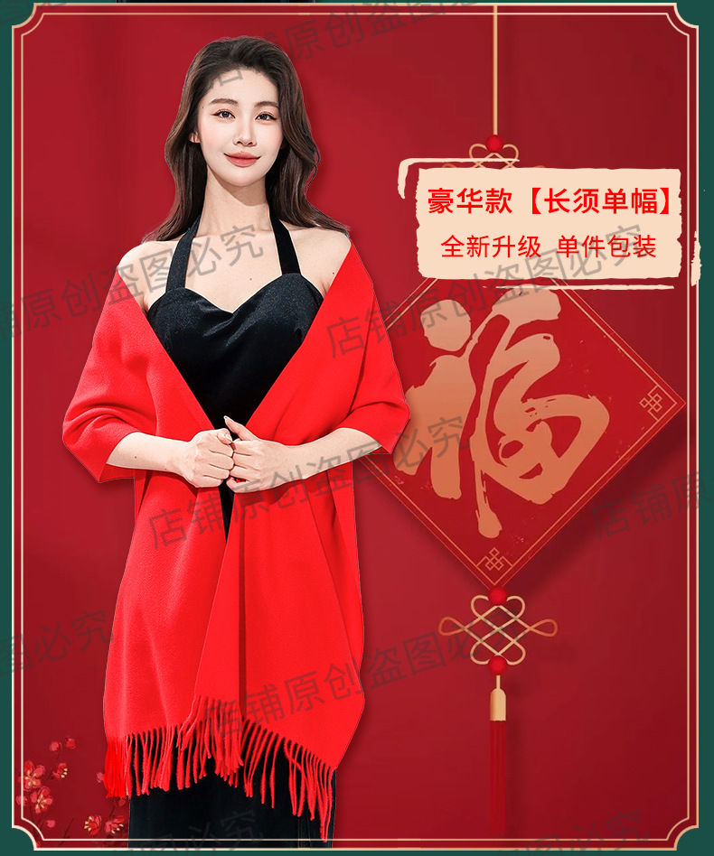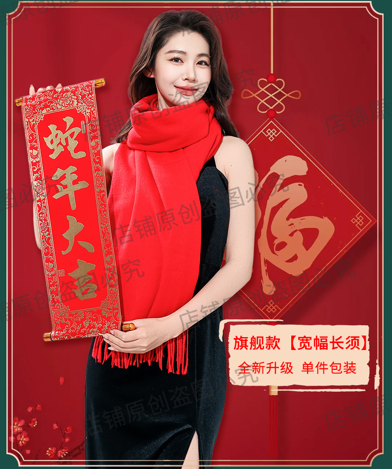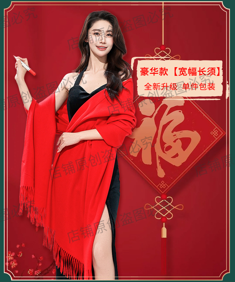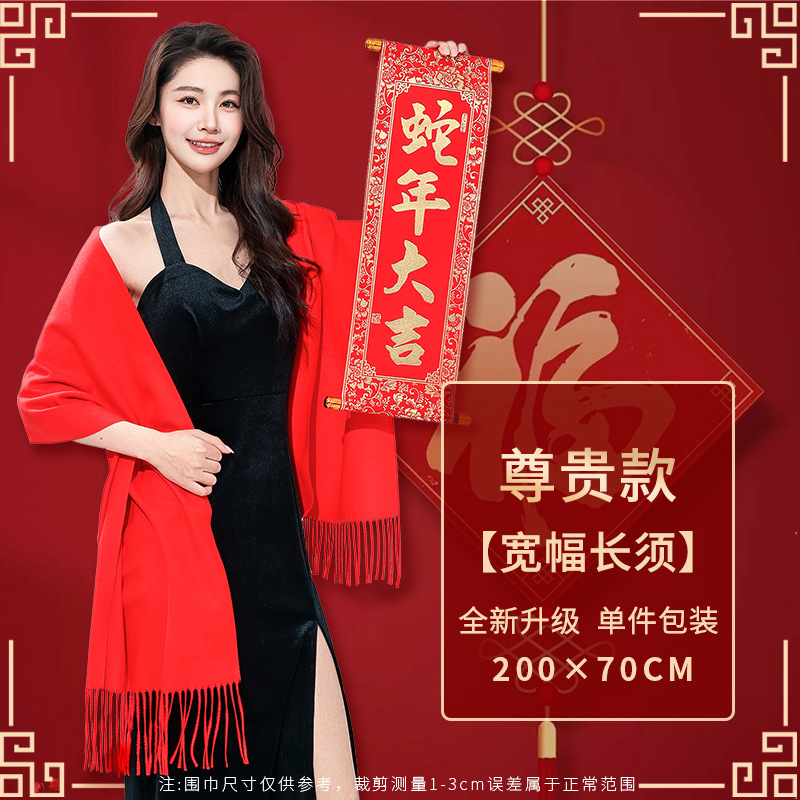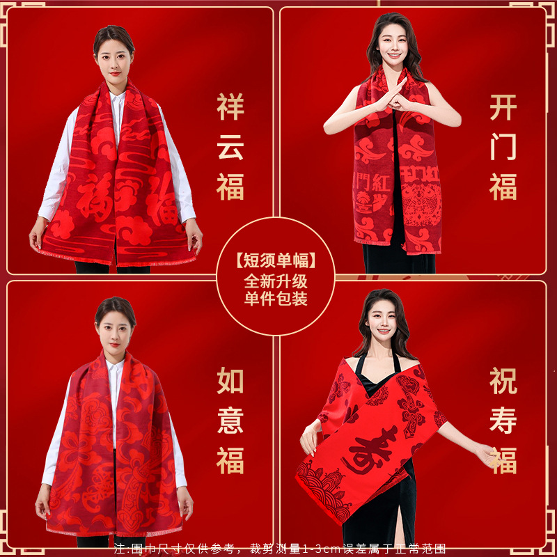 工厂批发中国红围巾定制公司年会开业活动围脖印字LOGO大红色刺绣