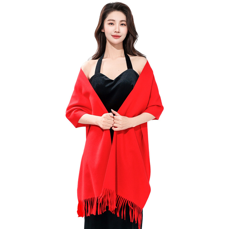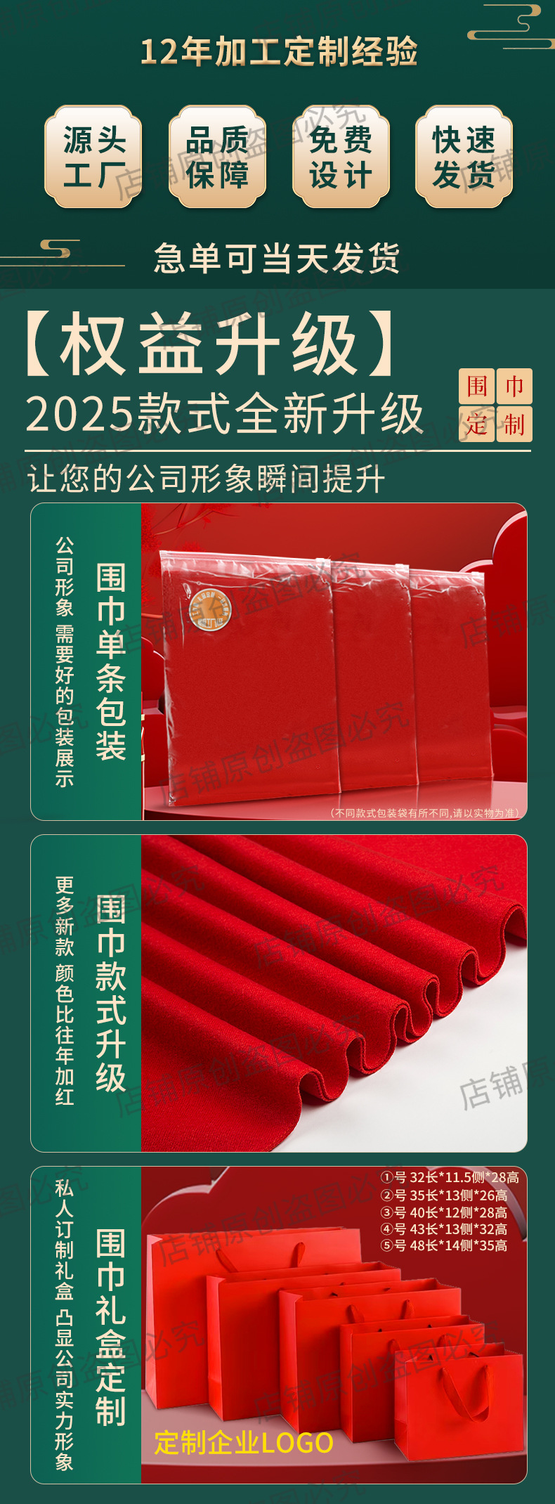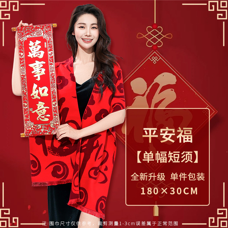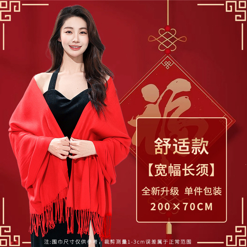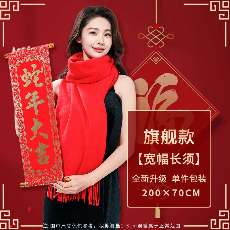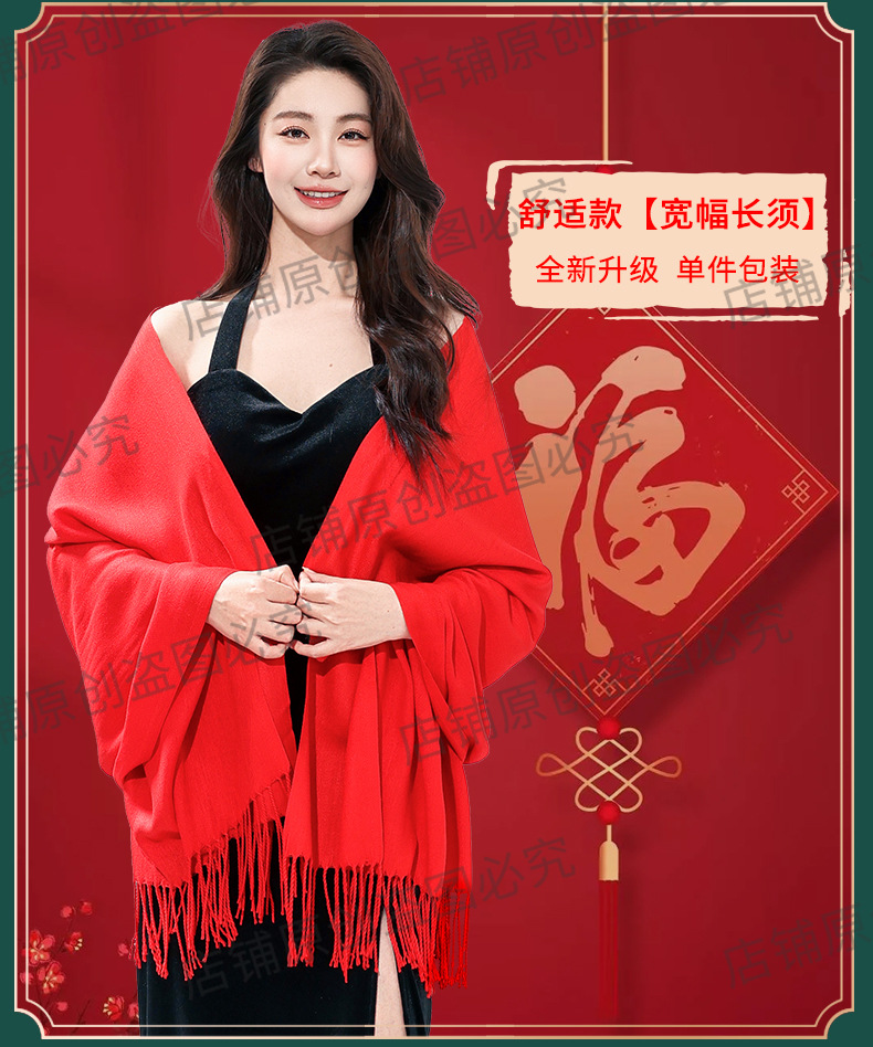 工厂批发中国红围巾定制公司年会开业活动围脖印字LOGO大红色刺绣