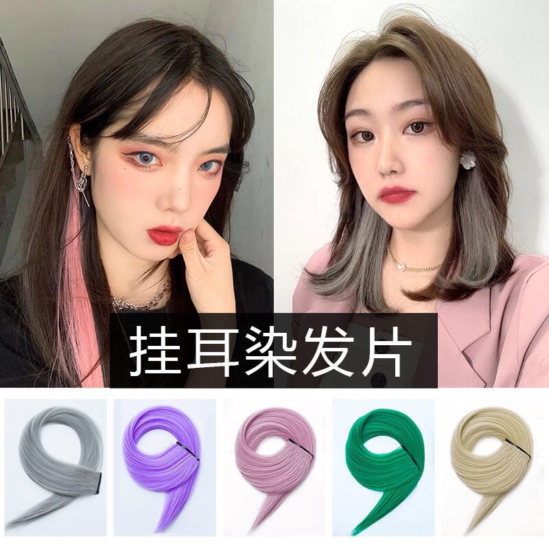 跨境外贸彩色假发片接发片无痕挑染彩色一夹挂耳染渐变直发片bb夹