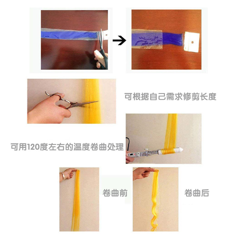 彩色接发片 挂耳染假发片 可烫卷哑光高温丝 直发假发发束44色