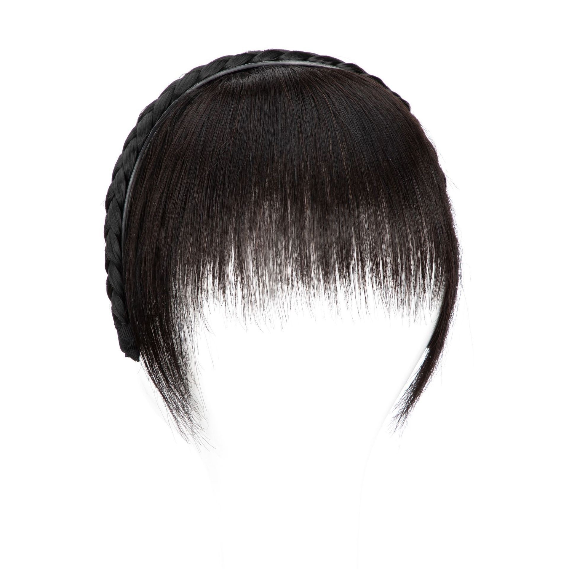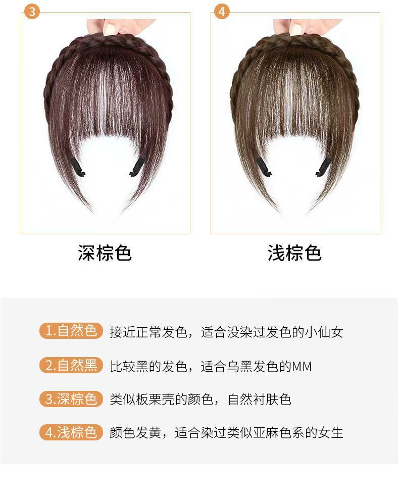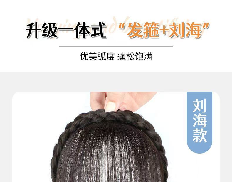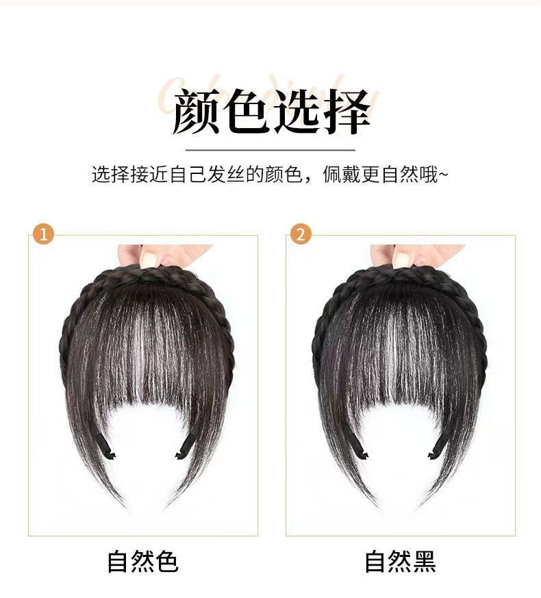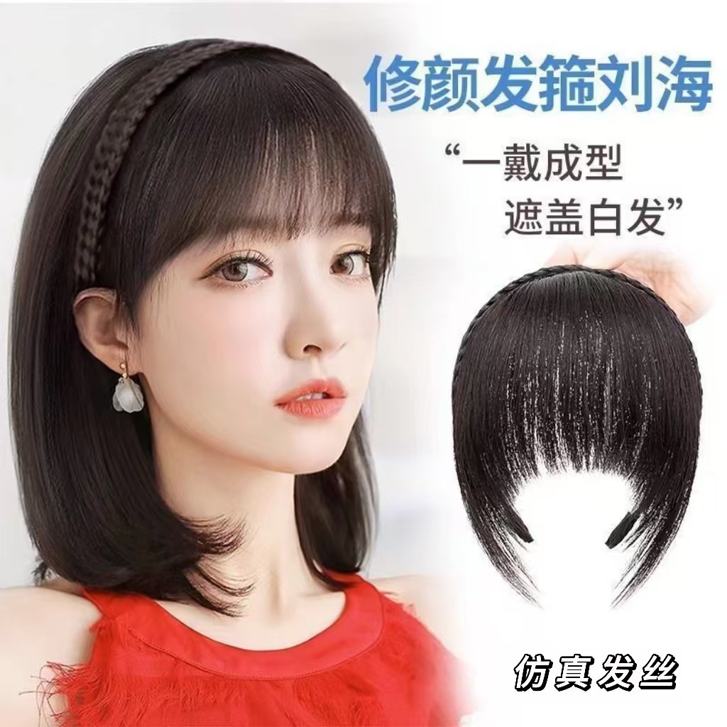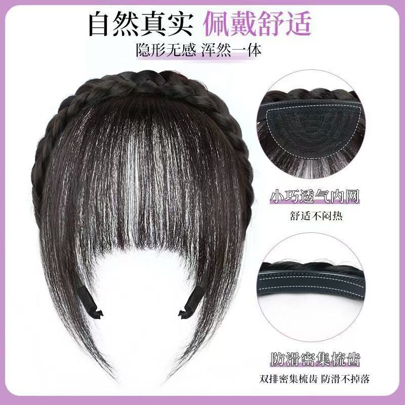 抖音同款辫子发箍刘海一体真发前额头帘鬓角遮白发碎齐刘海假发片