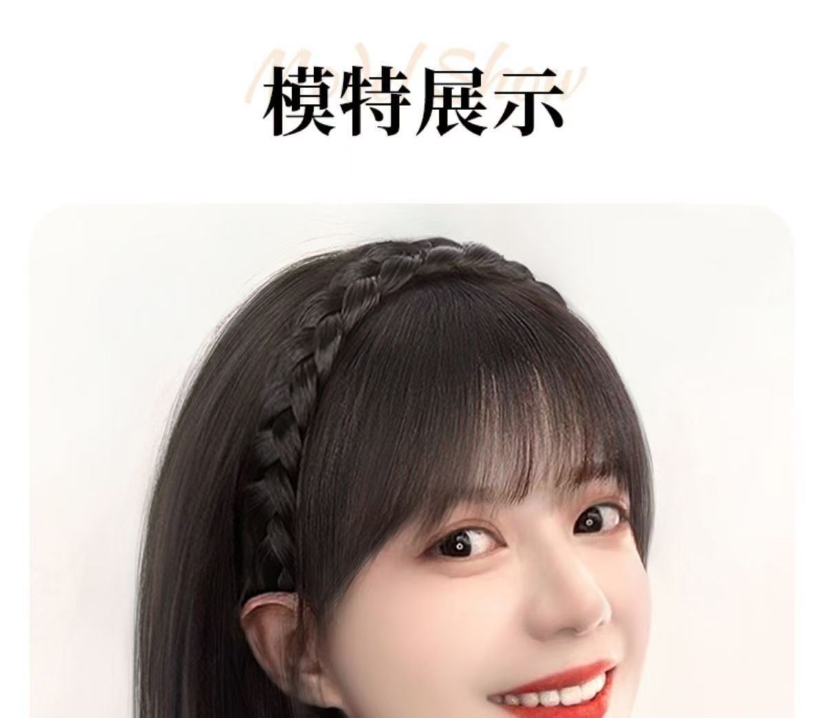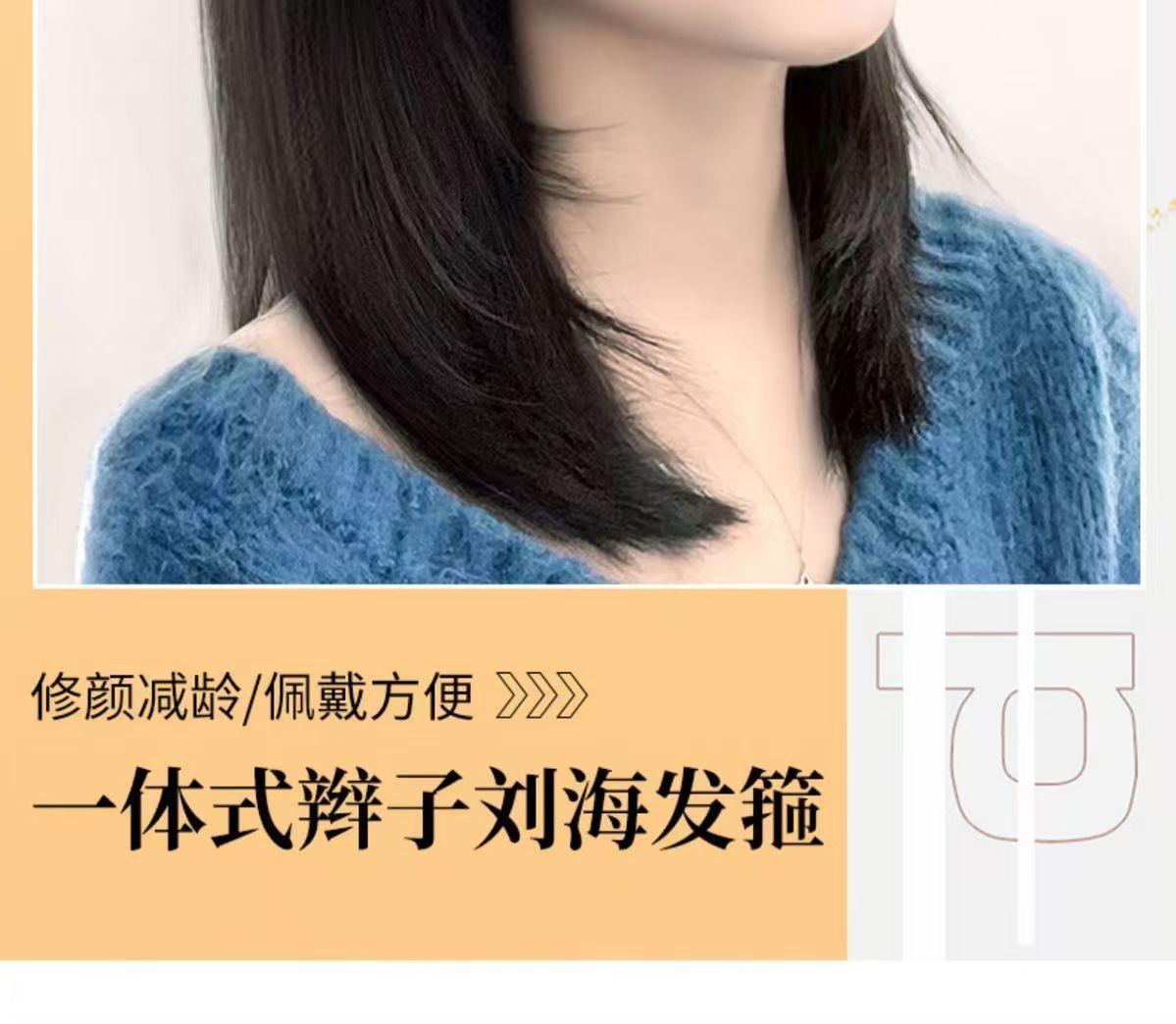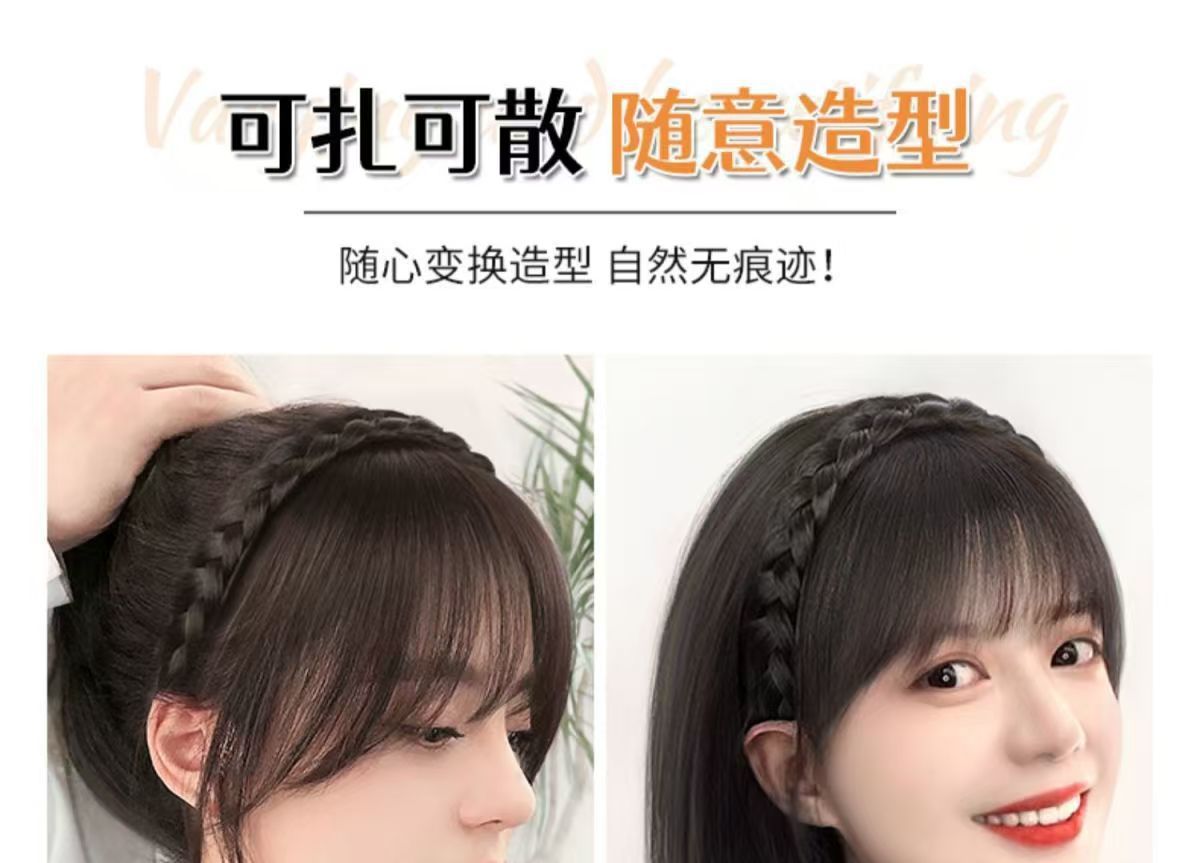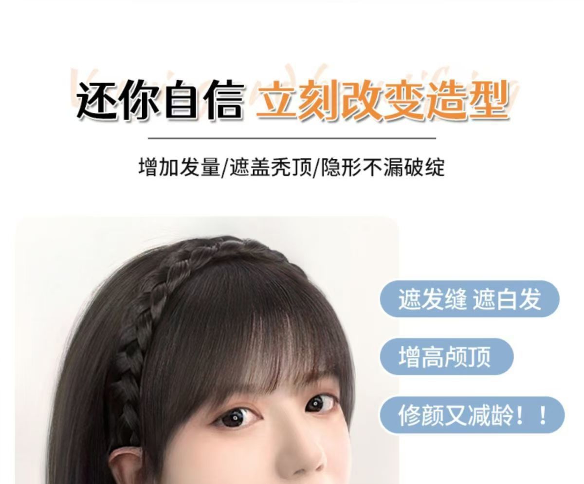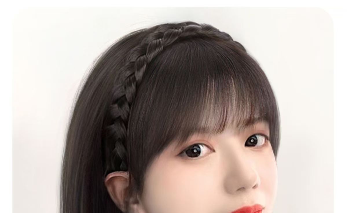 抖音同款辫子发箍刘海一体真发前额头帘鬓角遮白发碎齐刘海假发片