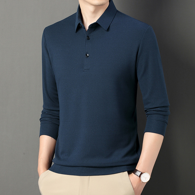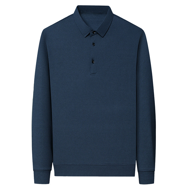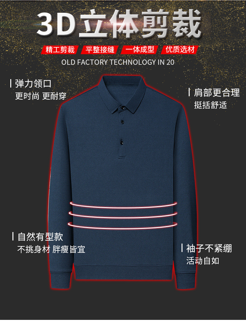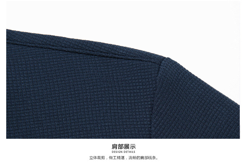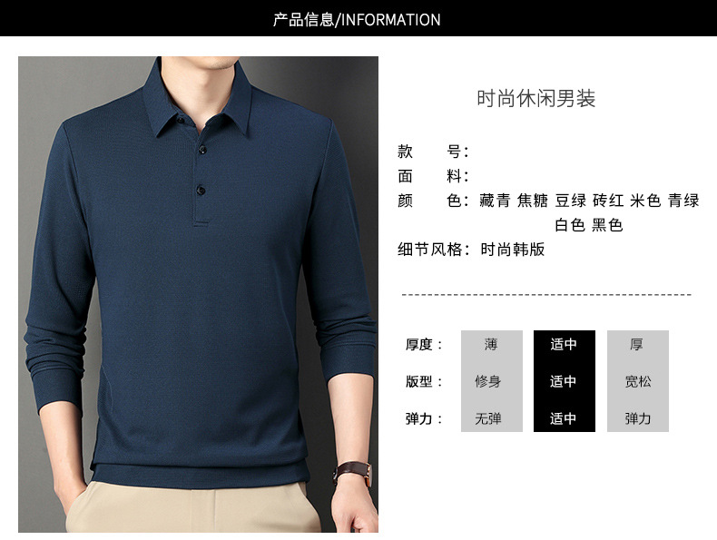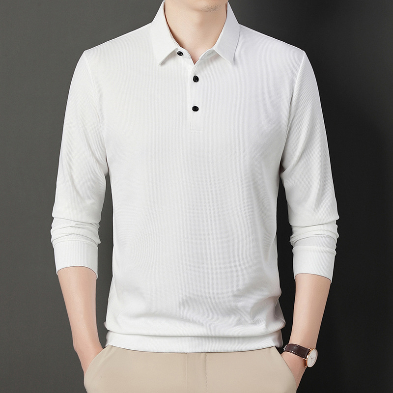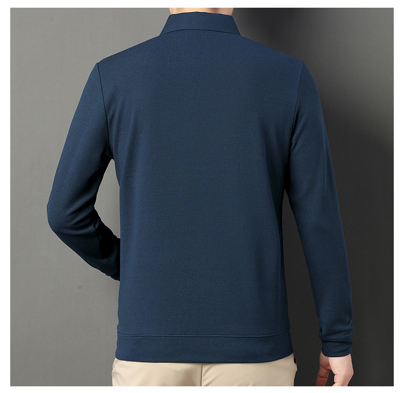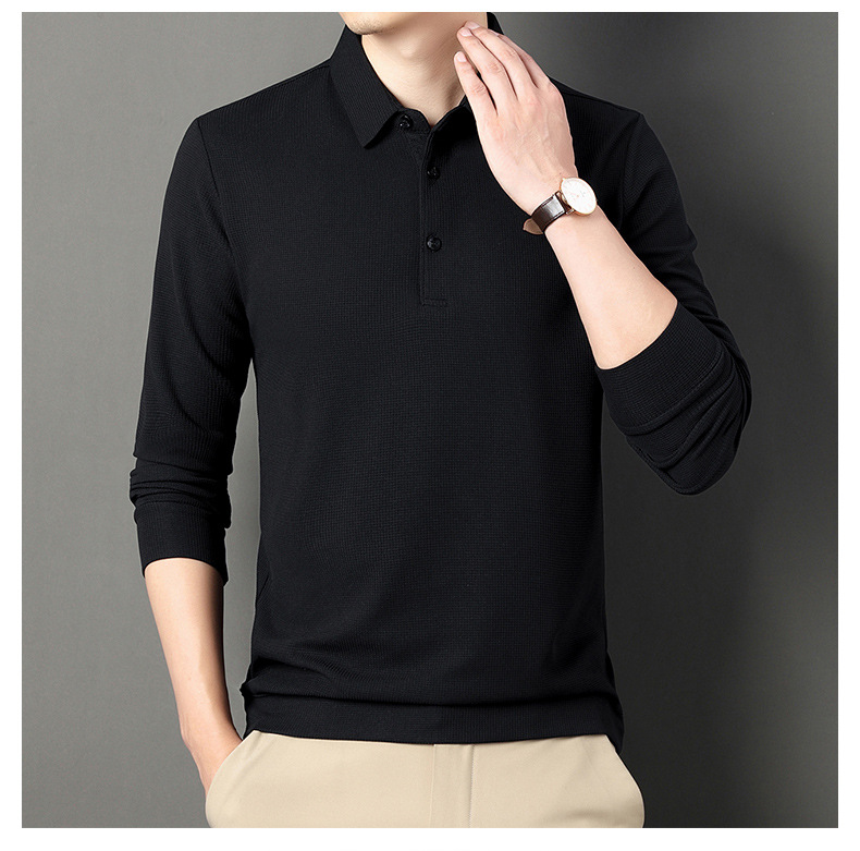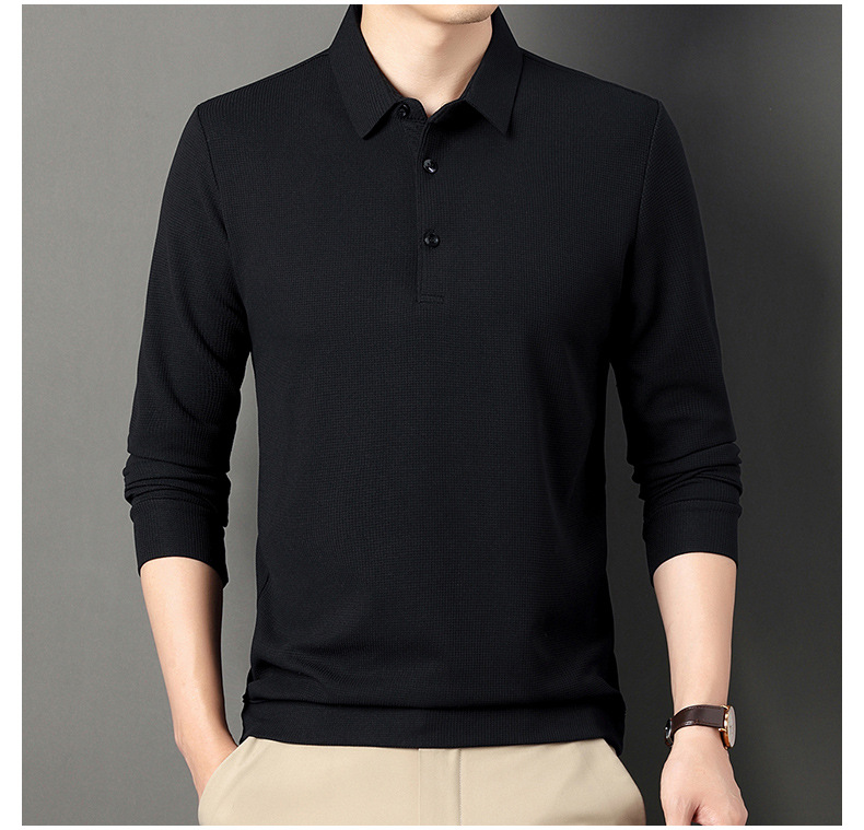 男士长袖t恤2025春季新款纯色翻领华夫格polo衫中青年休闲体恤衫