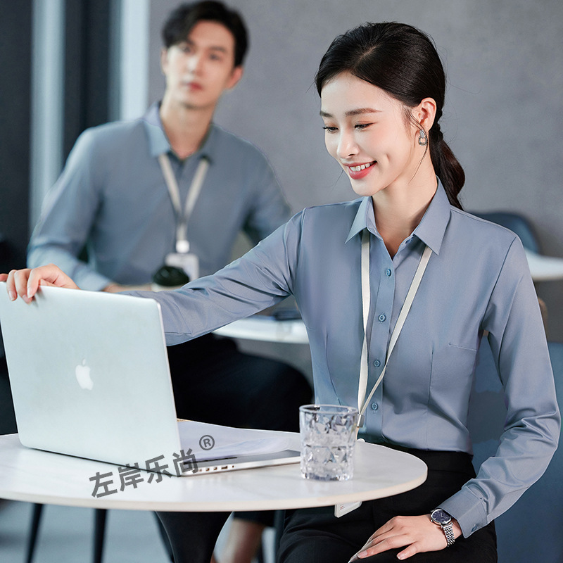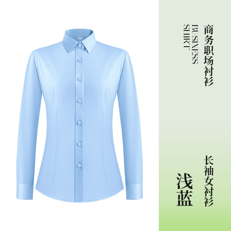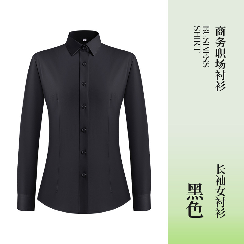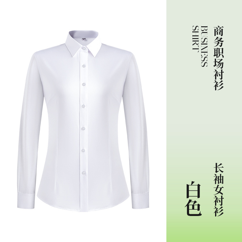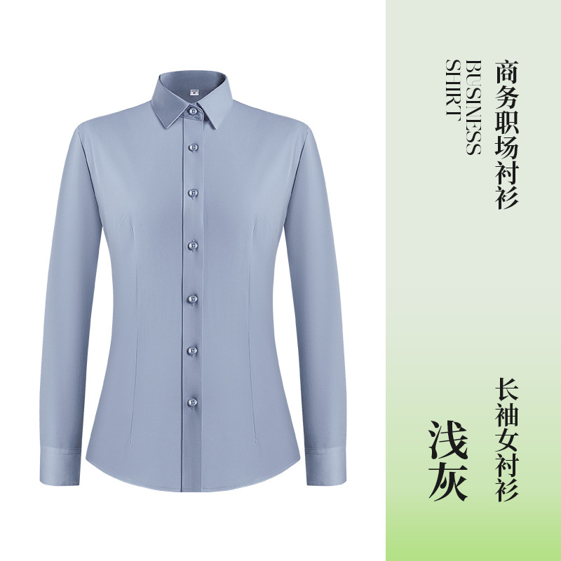 弹力白色女士长袖衬衫商务男女同款职业灰色黑色浅蓝墨绿免衬衣女