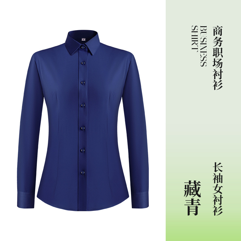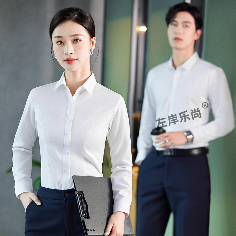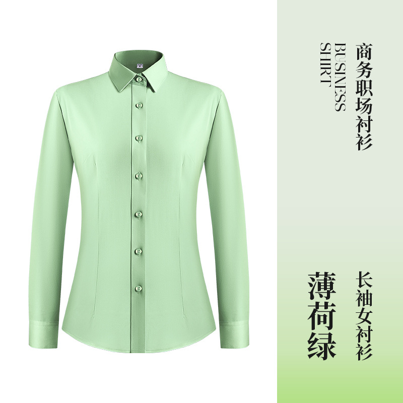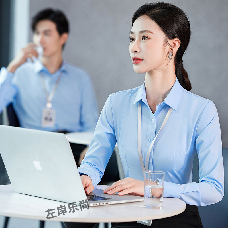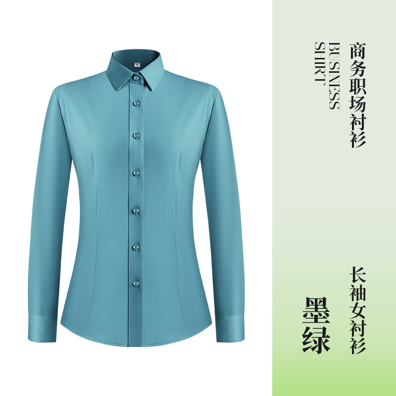 弹力白色女士长袖衬衫商务男女同款职业灰色黑色浅蓝墨绿免衬衣女