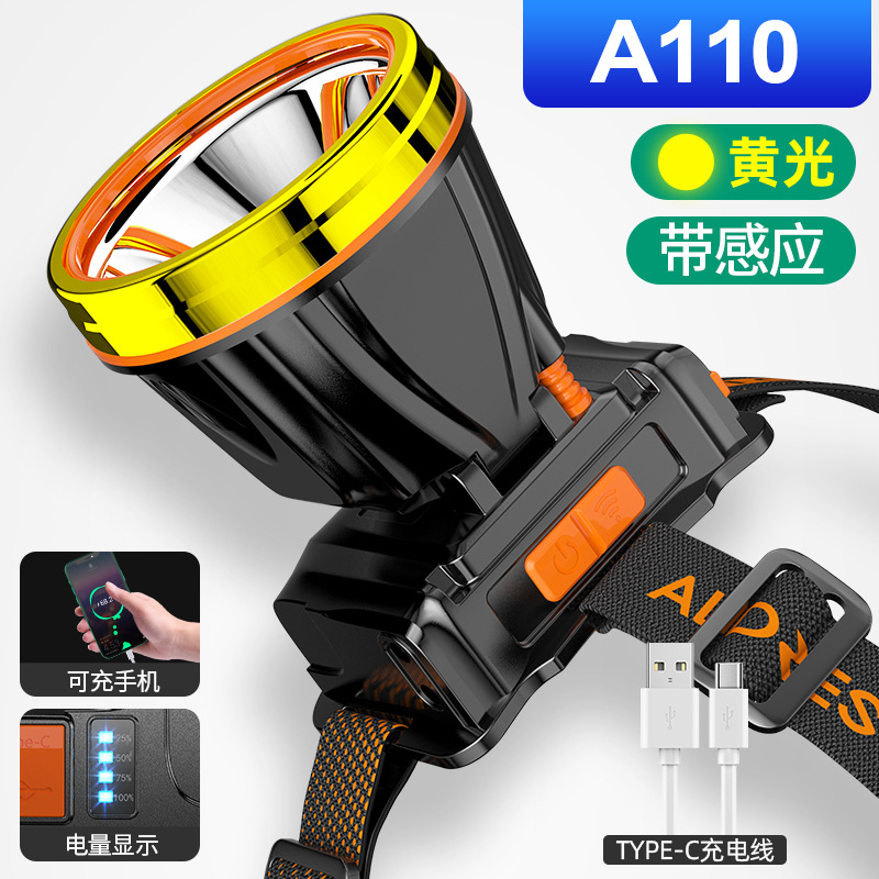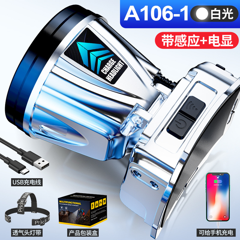 跨境远射USB充电长续航强光头灯户外露营锂电池头戴式远射矿头灯