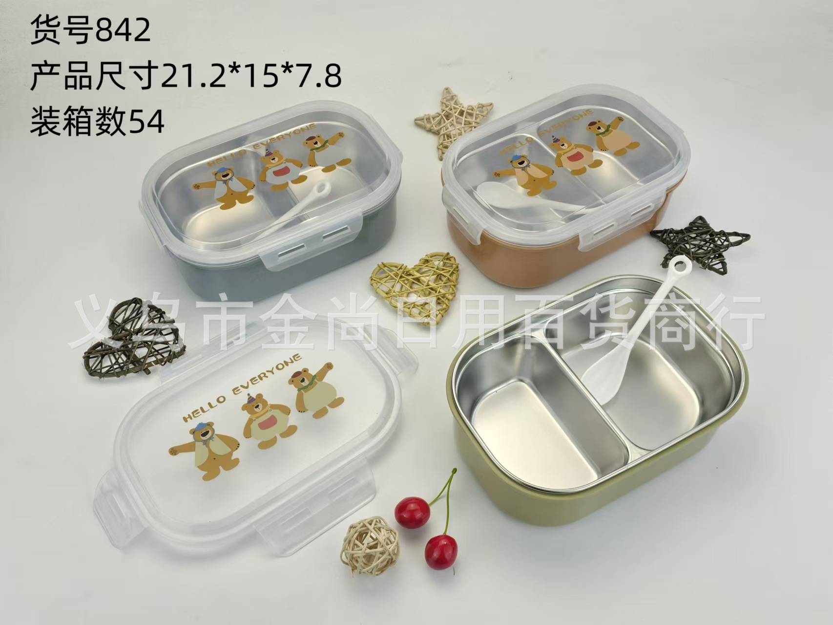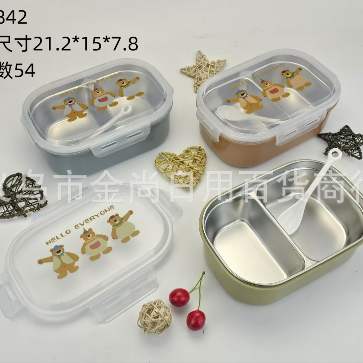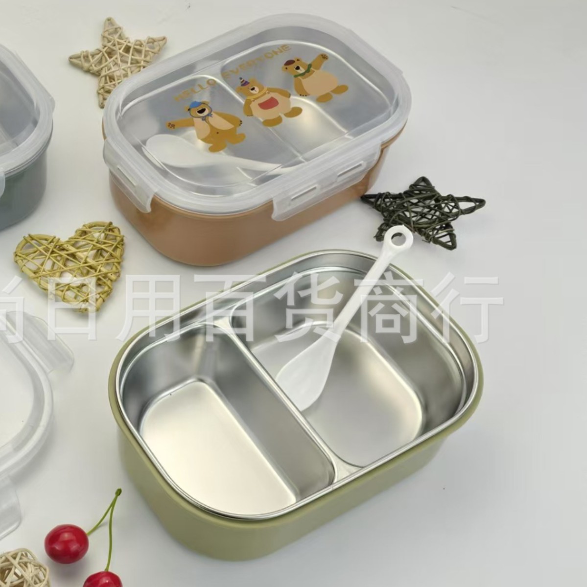 保温饭盒不锈钢分隔便当盒日式双层保鲜盒长方形学生午餐盒快餐杯